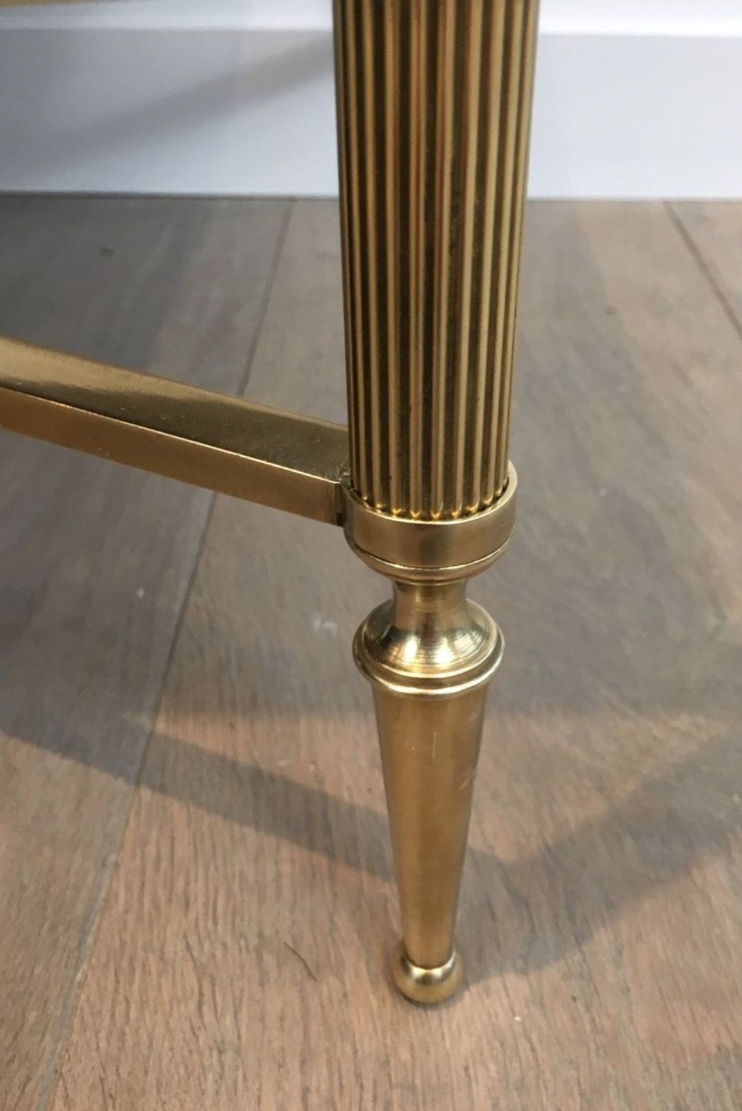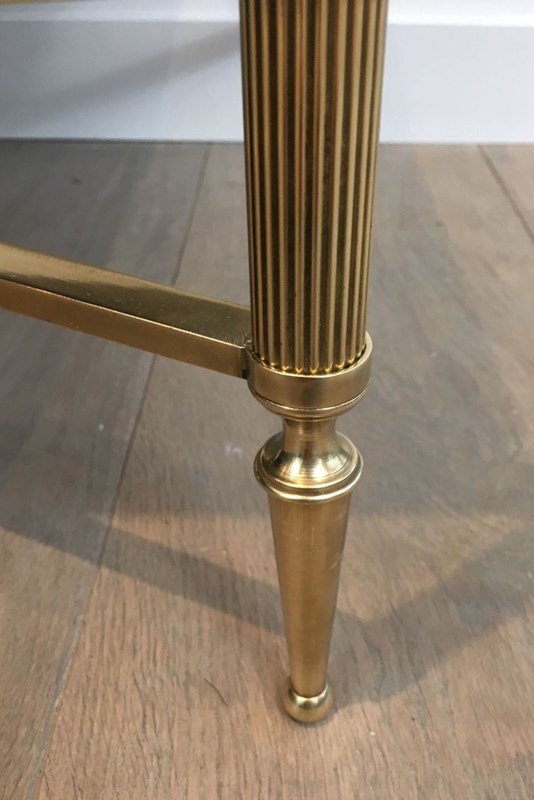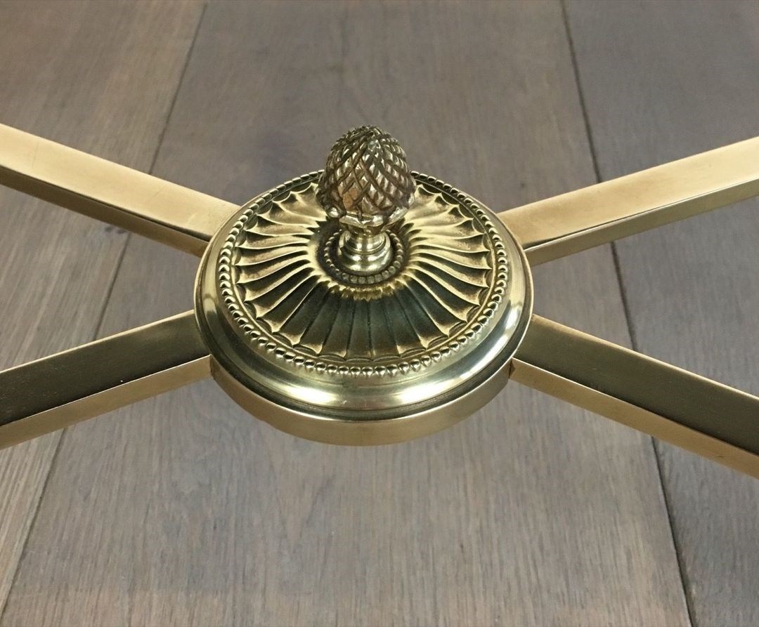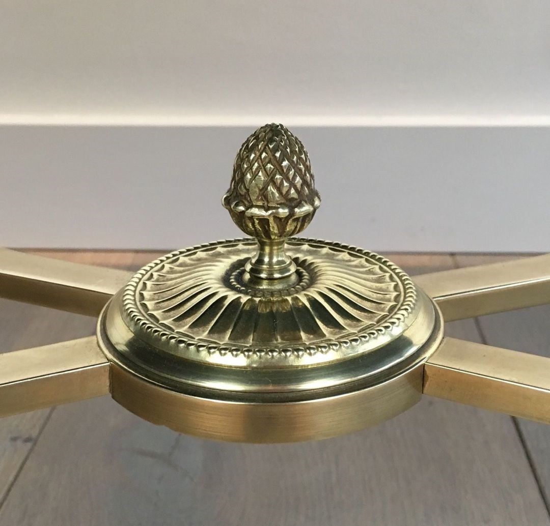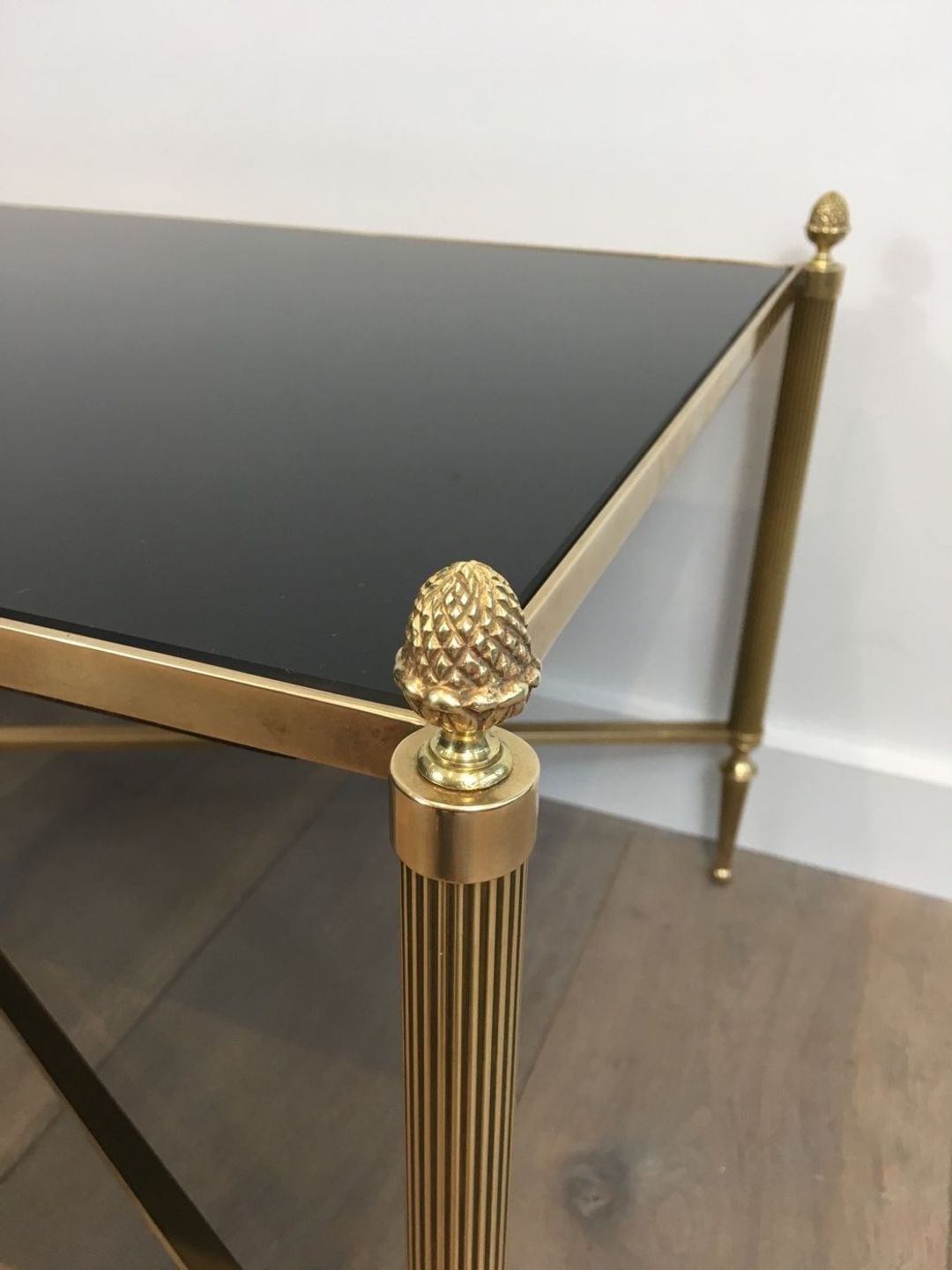 Neoclassical Style Brass Coffee Table With Black Lacquered Glass Top