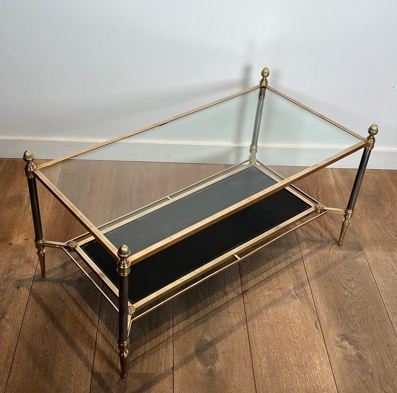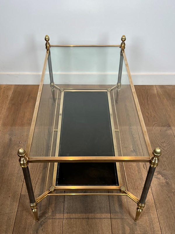 Neoclassical Style Brass Coffee Table With Clear Glass