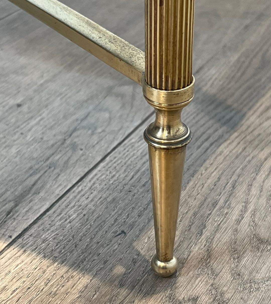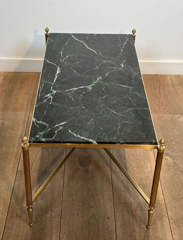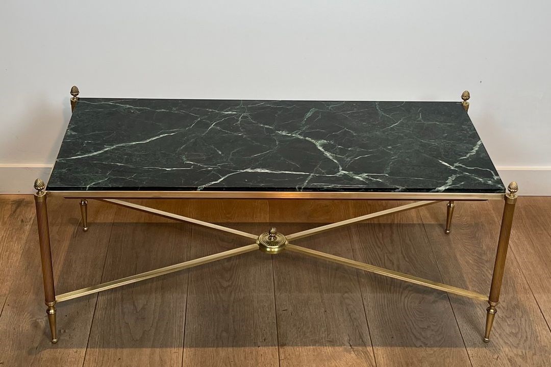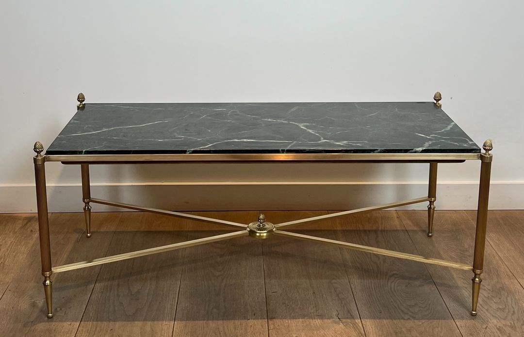 Neoclassical style brass coffee table with green marble top. French work by Maison Jansen. Circa 1940