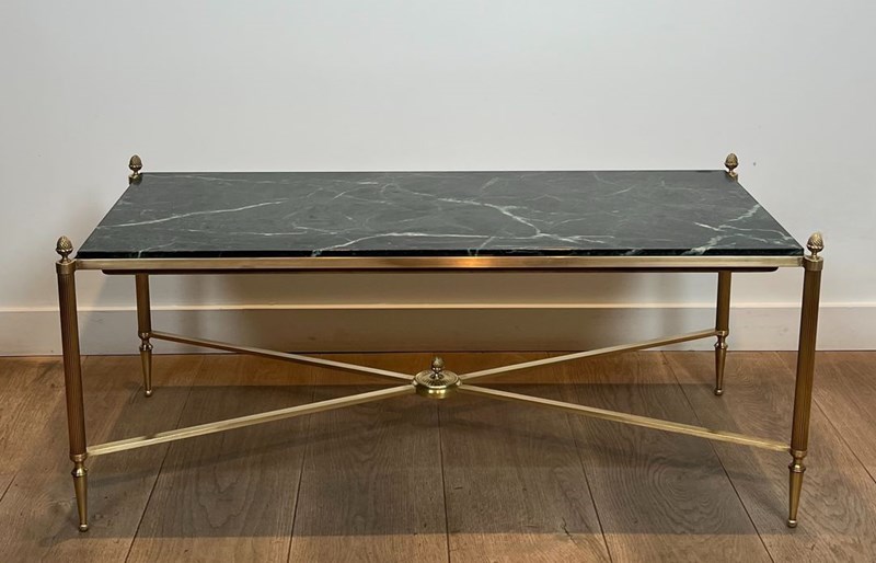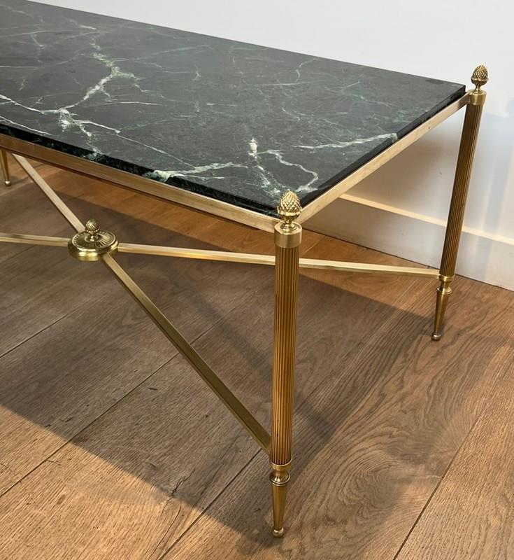 Neoclassical Style Brass Coffee Table With Green Marble Top