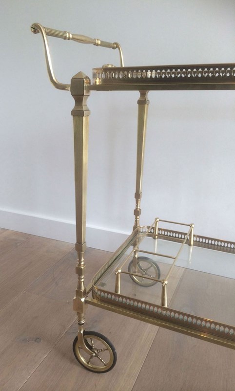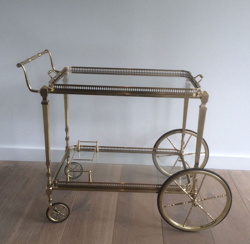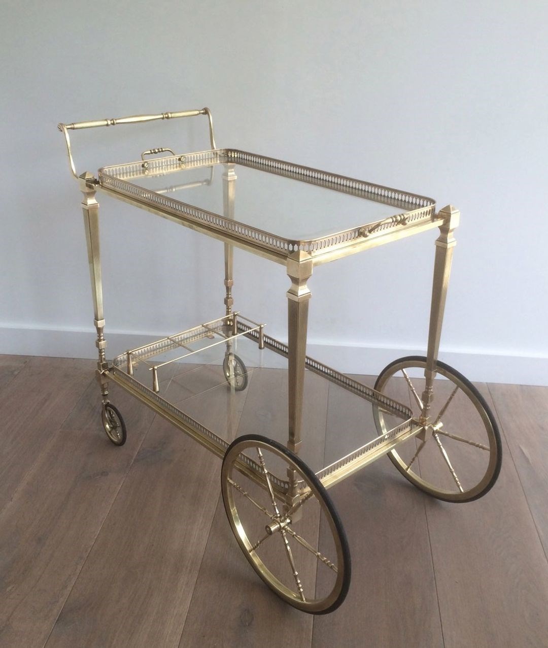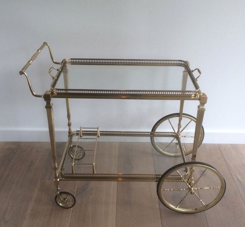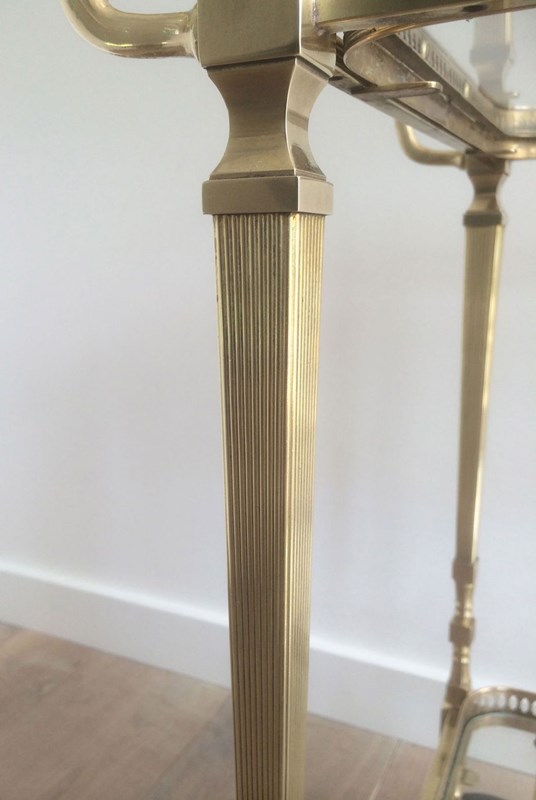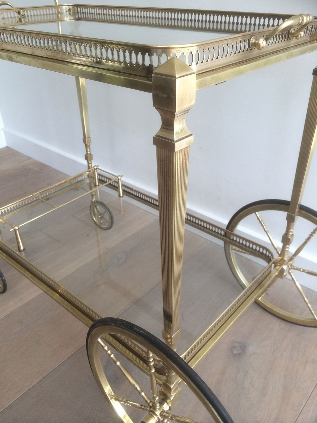 Neoclassical Style Brass Drinks Trolley With Removable Trays