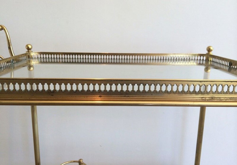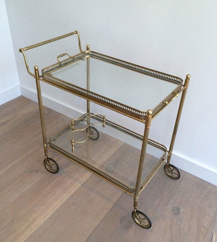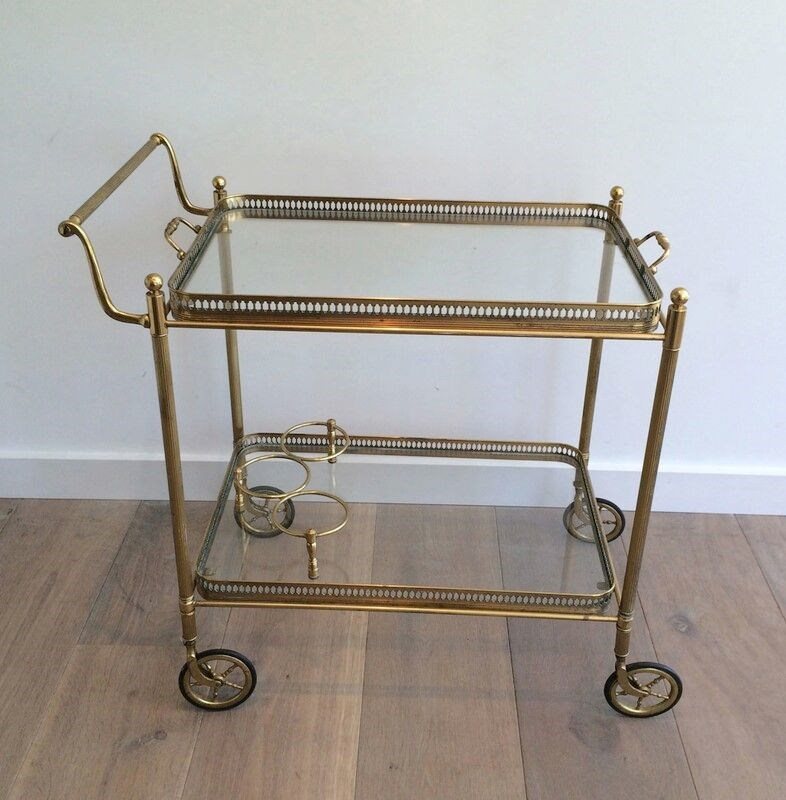 Neoclassical Style Brass Drinks Trolley With Removable Trays.