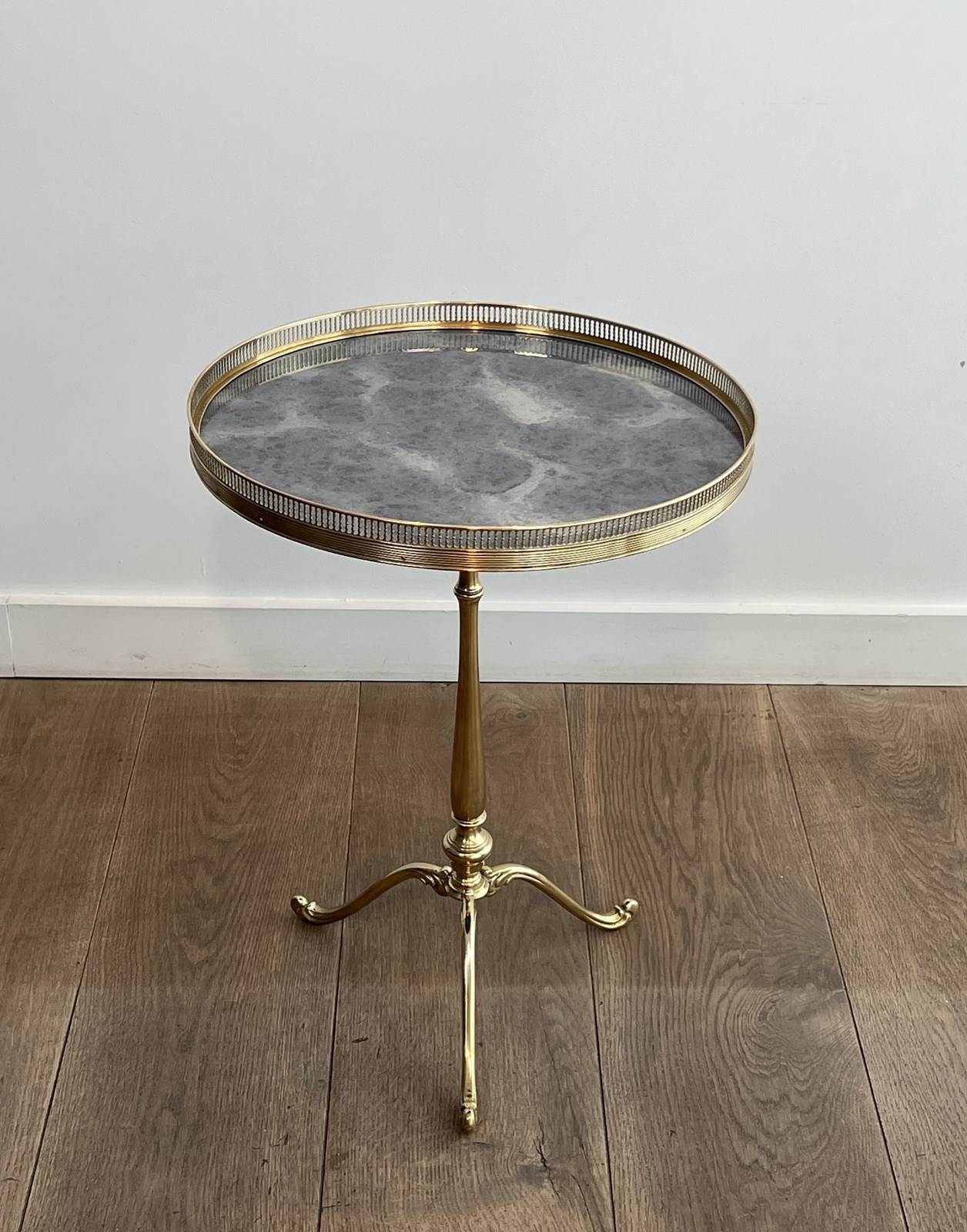 Neoclassical Style Brass Gueridon With Antiques Mirror Top Attributed To Maison