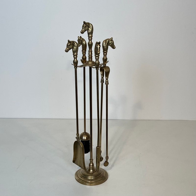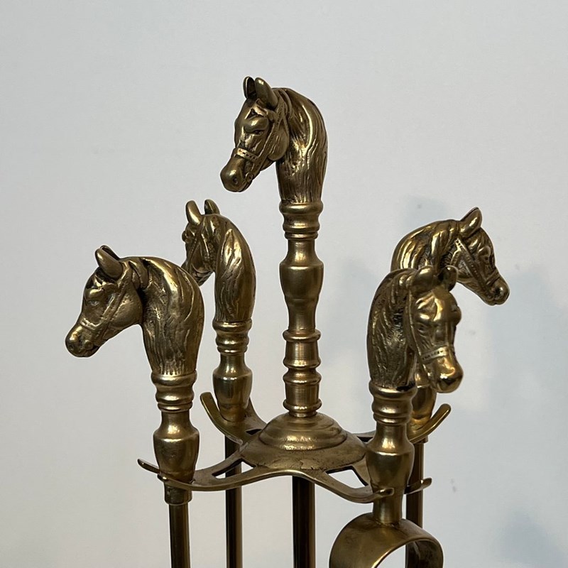Neoclassical Style Brass Horse Heads Fireplace Tools