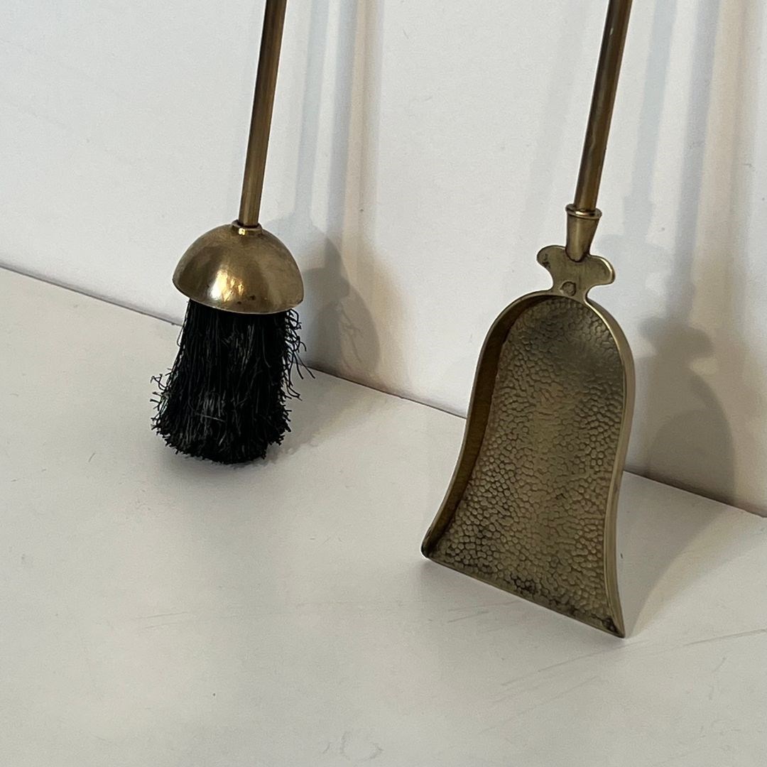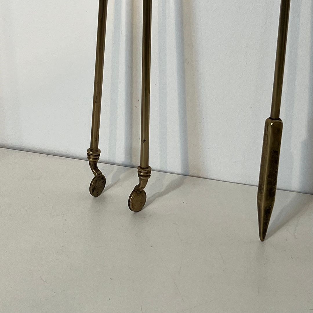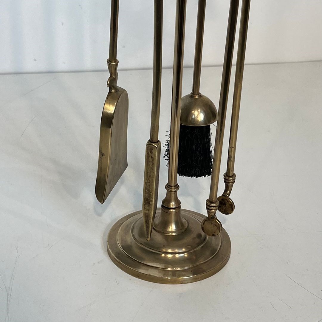 Neoclassical style brass horse heads fireplace tools. French. Circa 1950