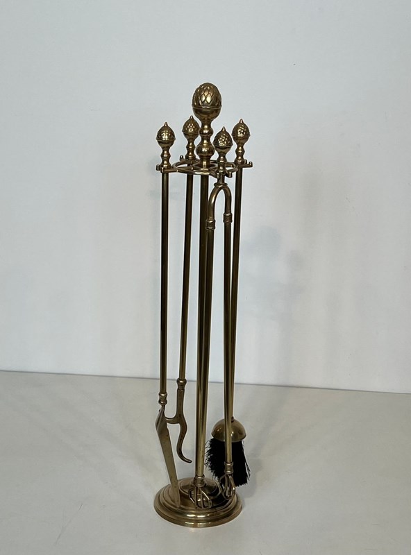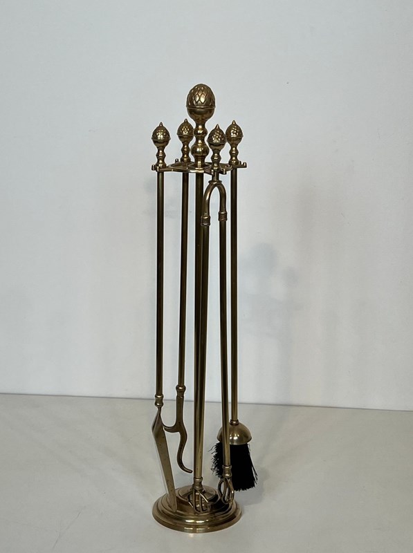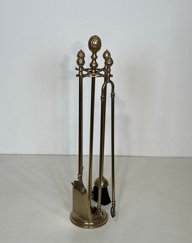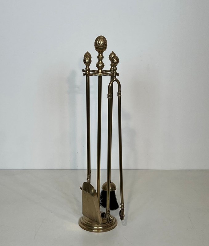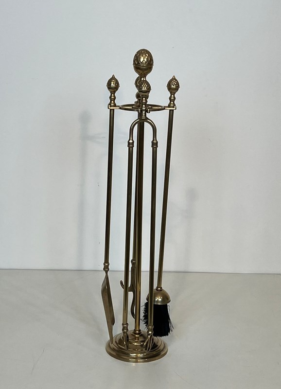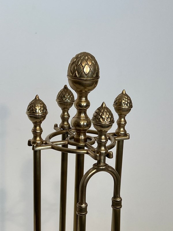 Neoclassical Style Brass Pineapple Fireplace Tools