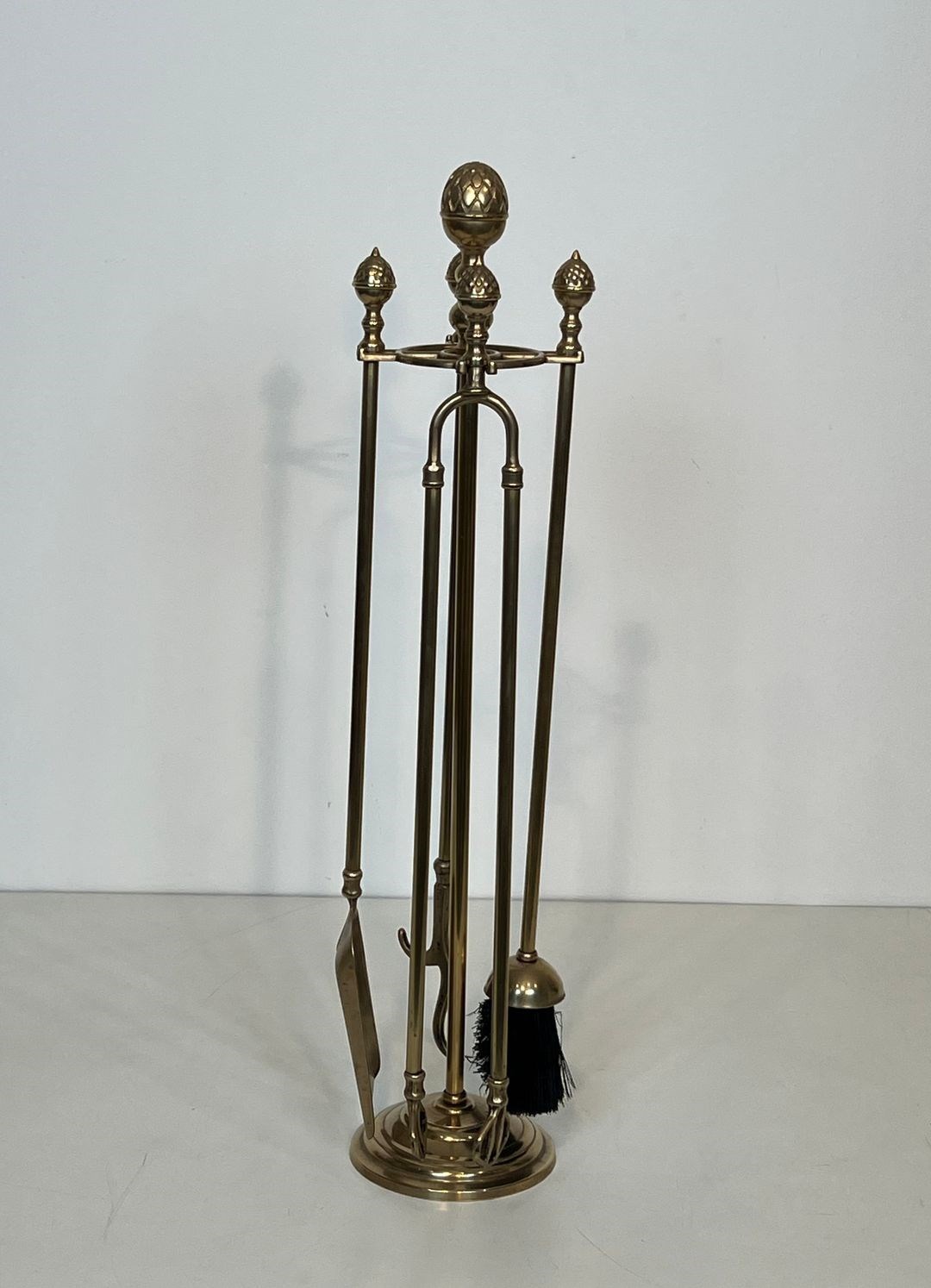 Neoclassical style brass pineapple fireplace tools. French work in the style of Maison Baguès. Circa 1970