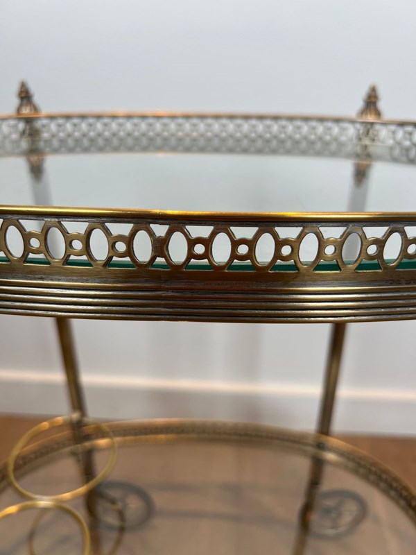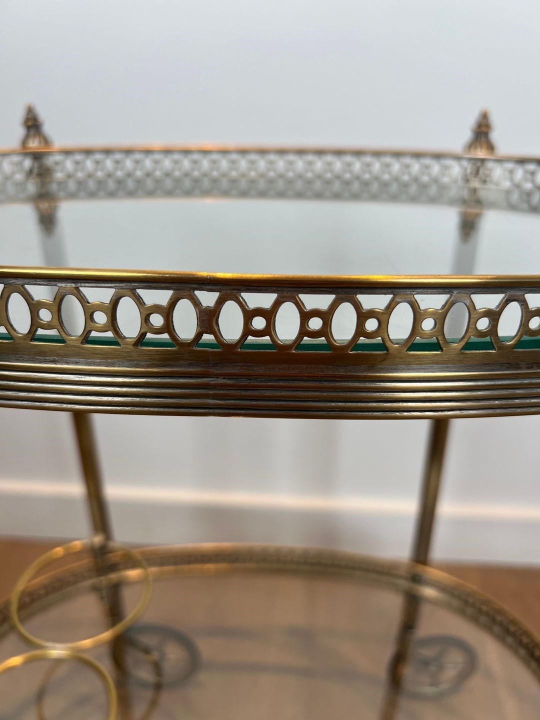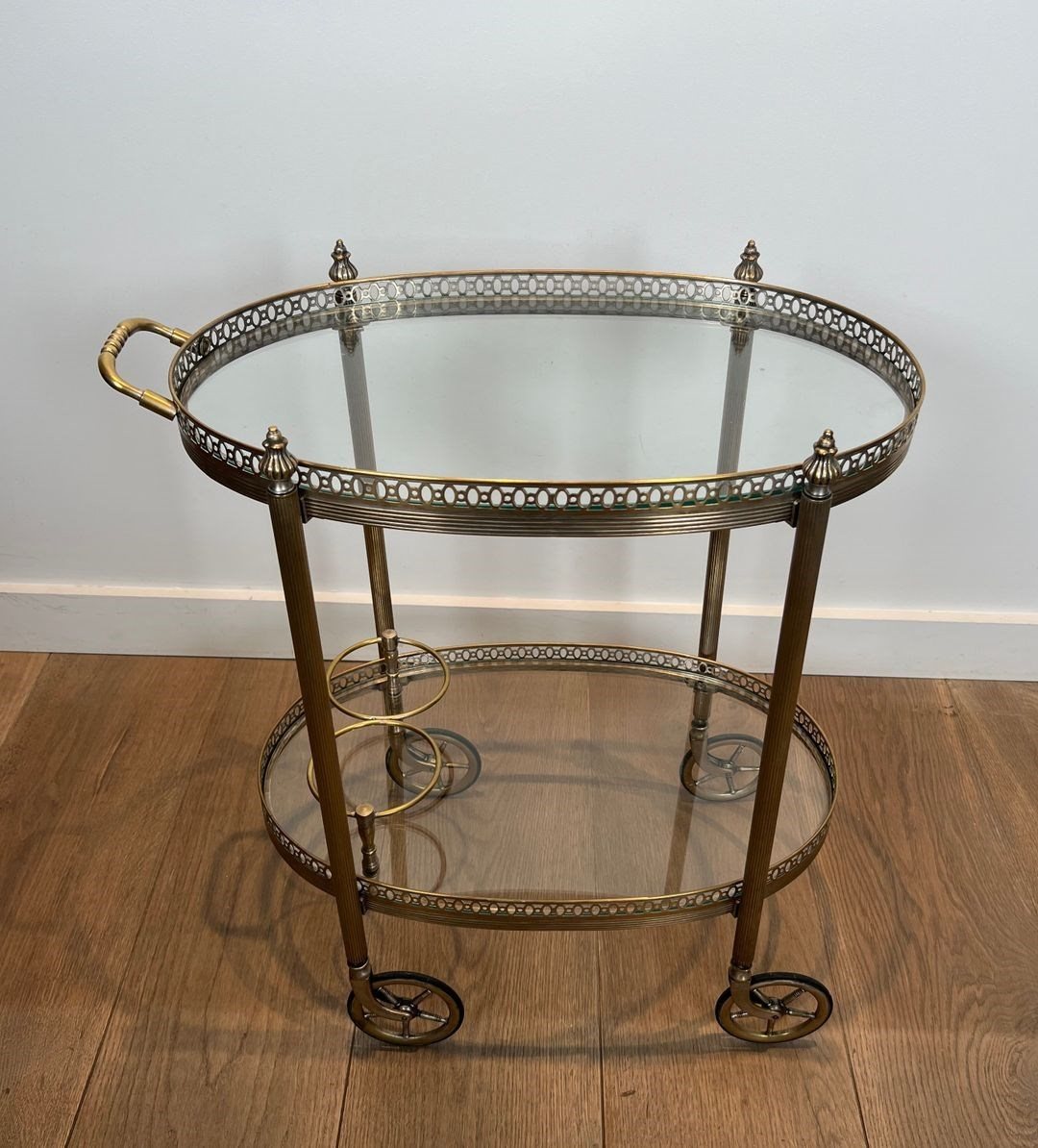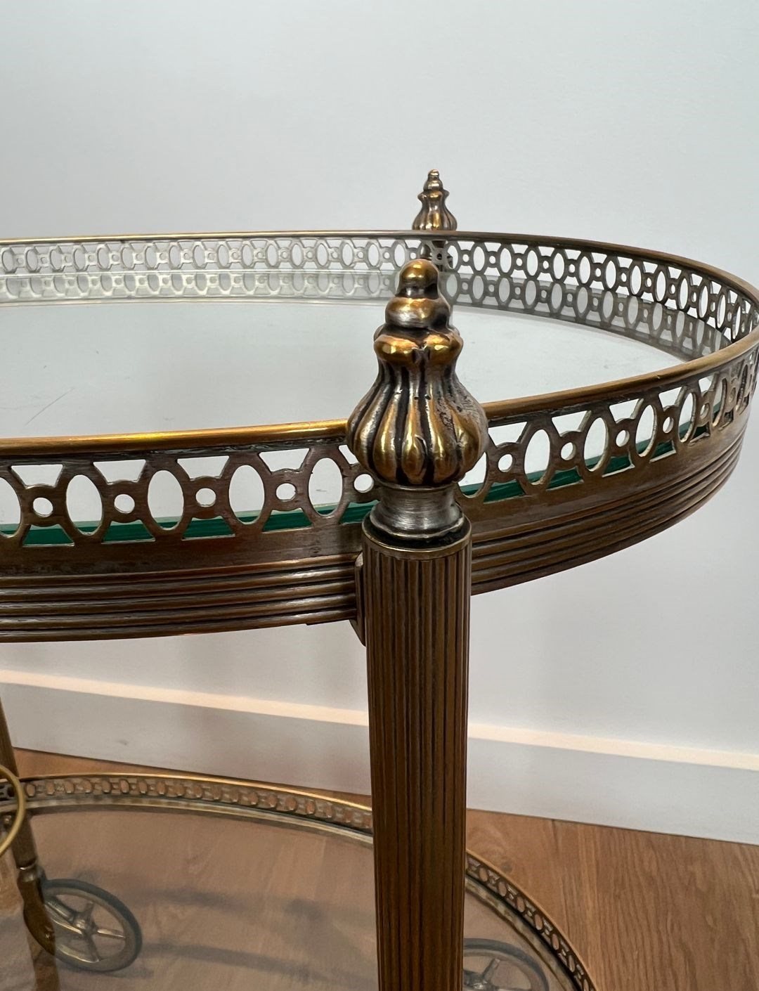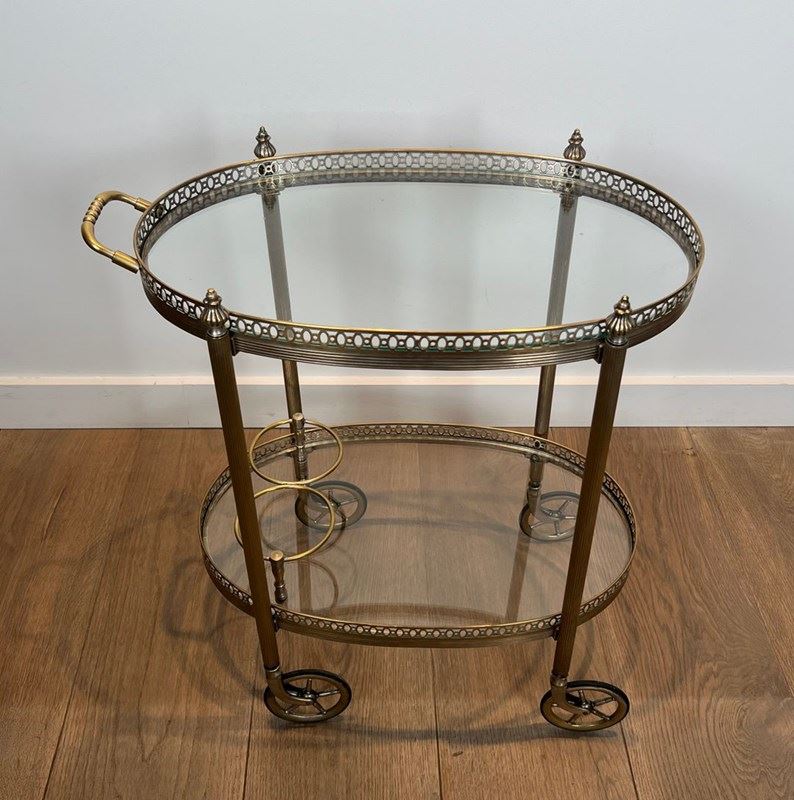 Neoclassical Style Oval Silvered Brass Drinks Trolley With Two Trays