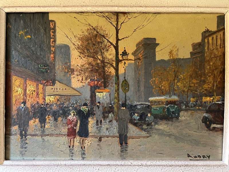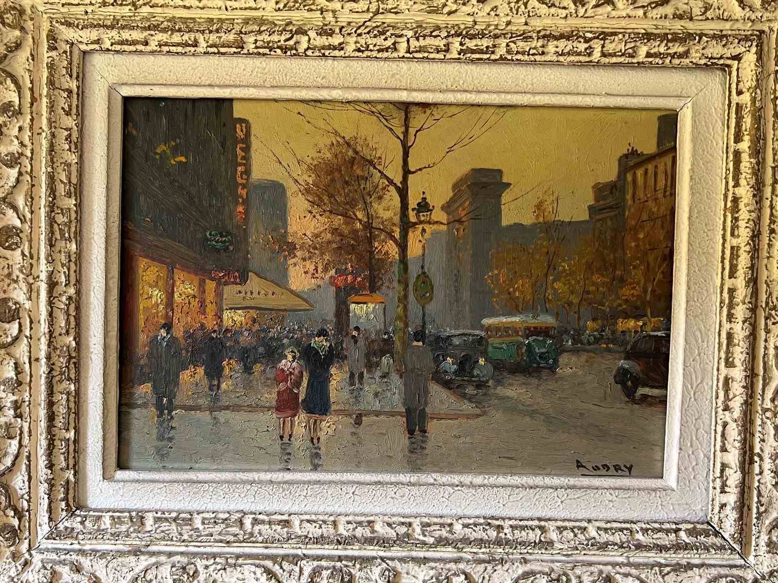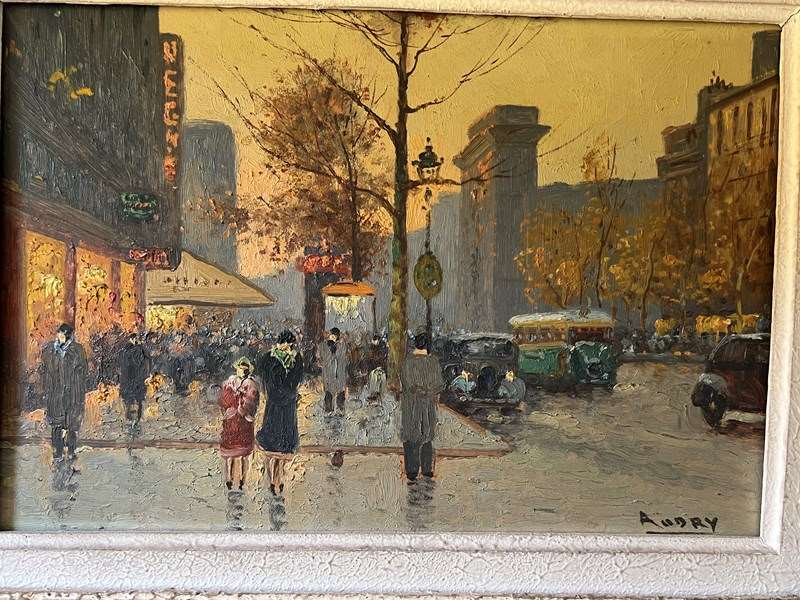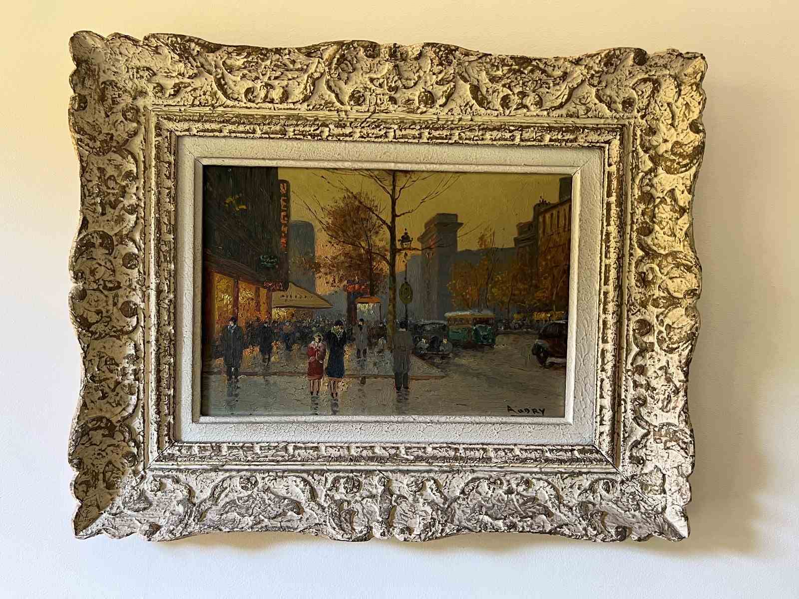 Oil on canvas painting depicting a view of Paris in a Montparnasse frame. French work signed Audry. Circa 1930