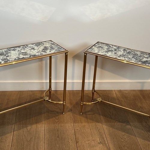 Oval brass drinks trolley with removable top tray and bottles holder. French work by Maison Jansen. Circa 1940
