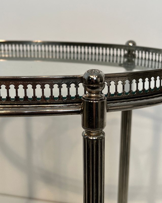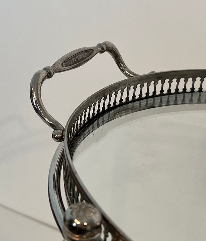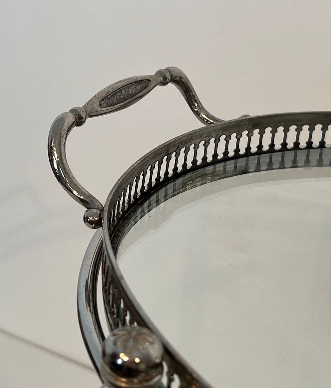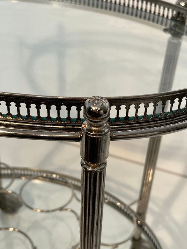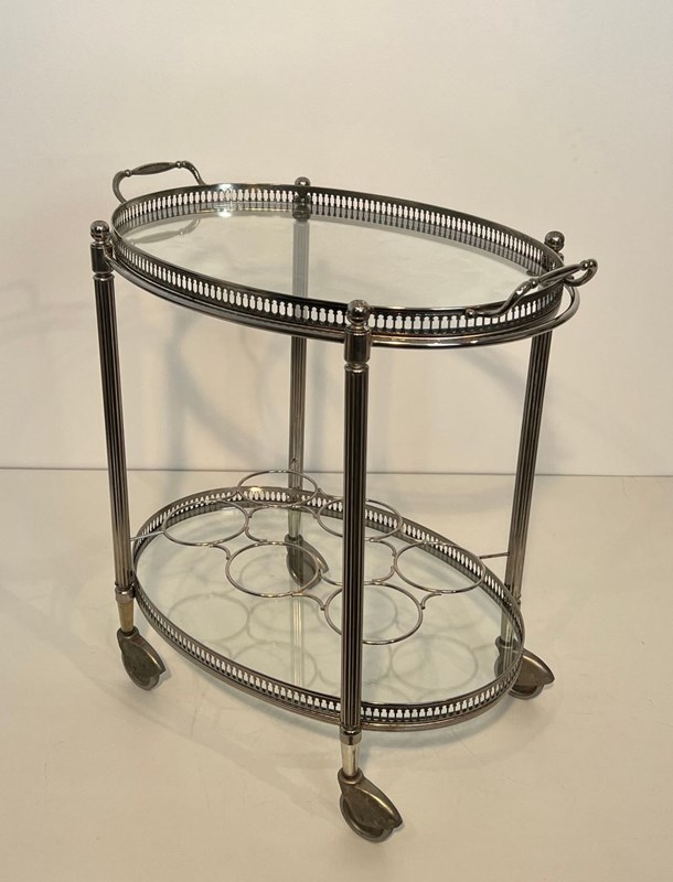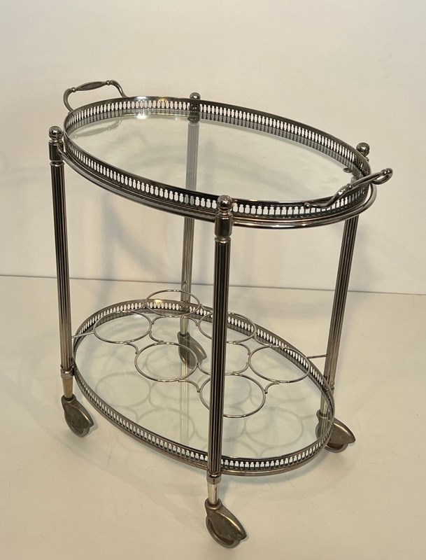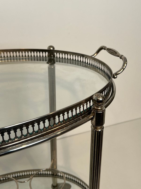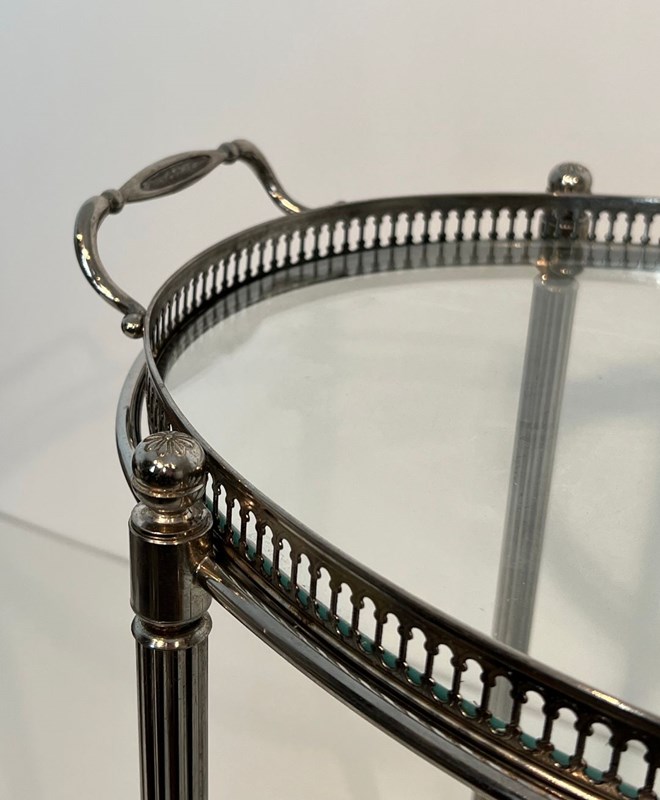 Oval Neoclassical Style Silvered Brass Drinks Trolley