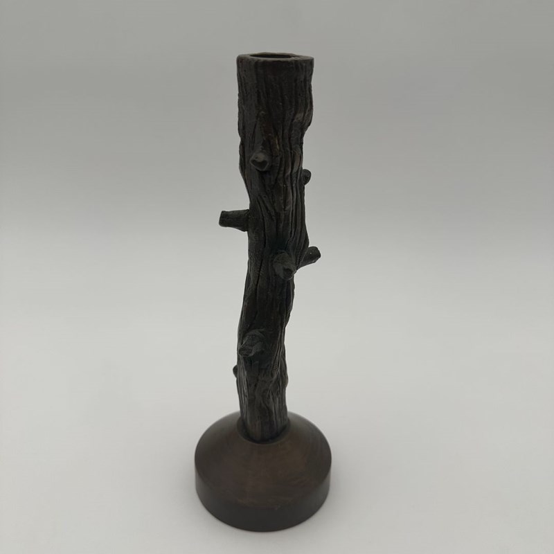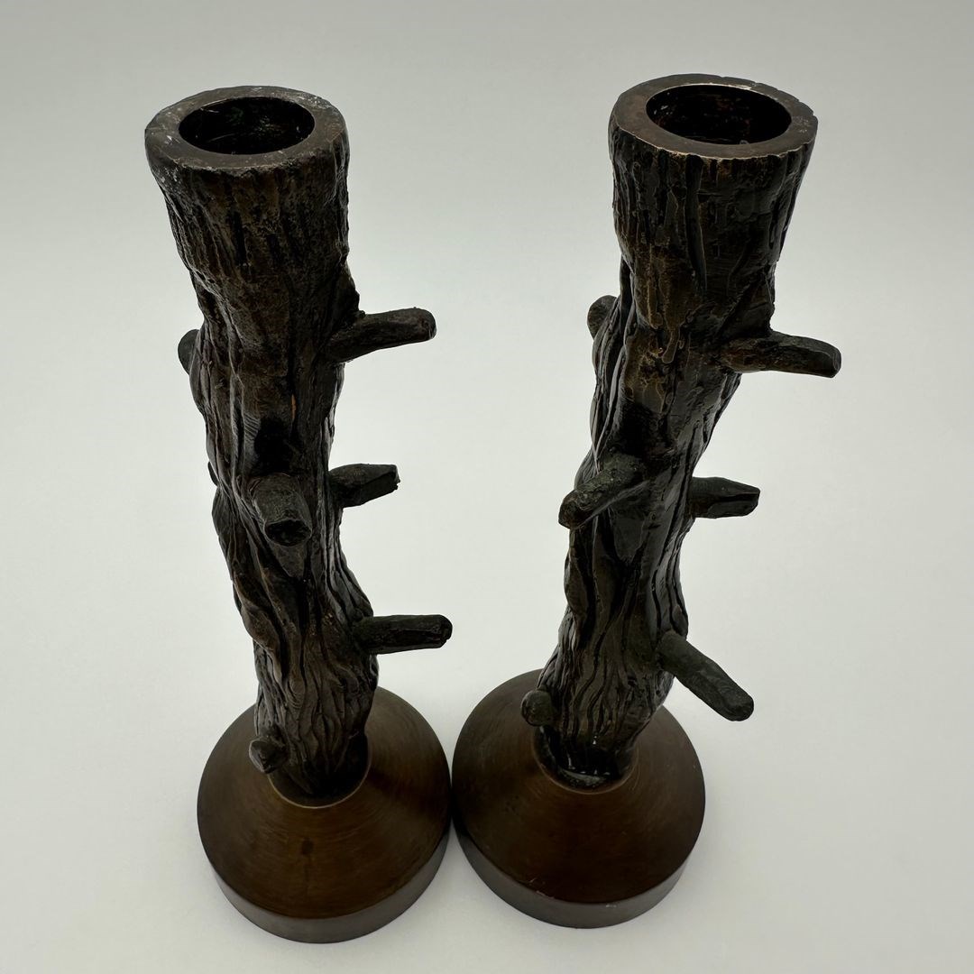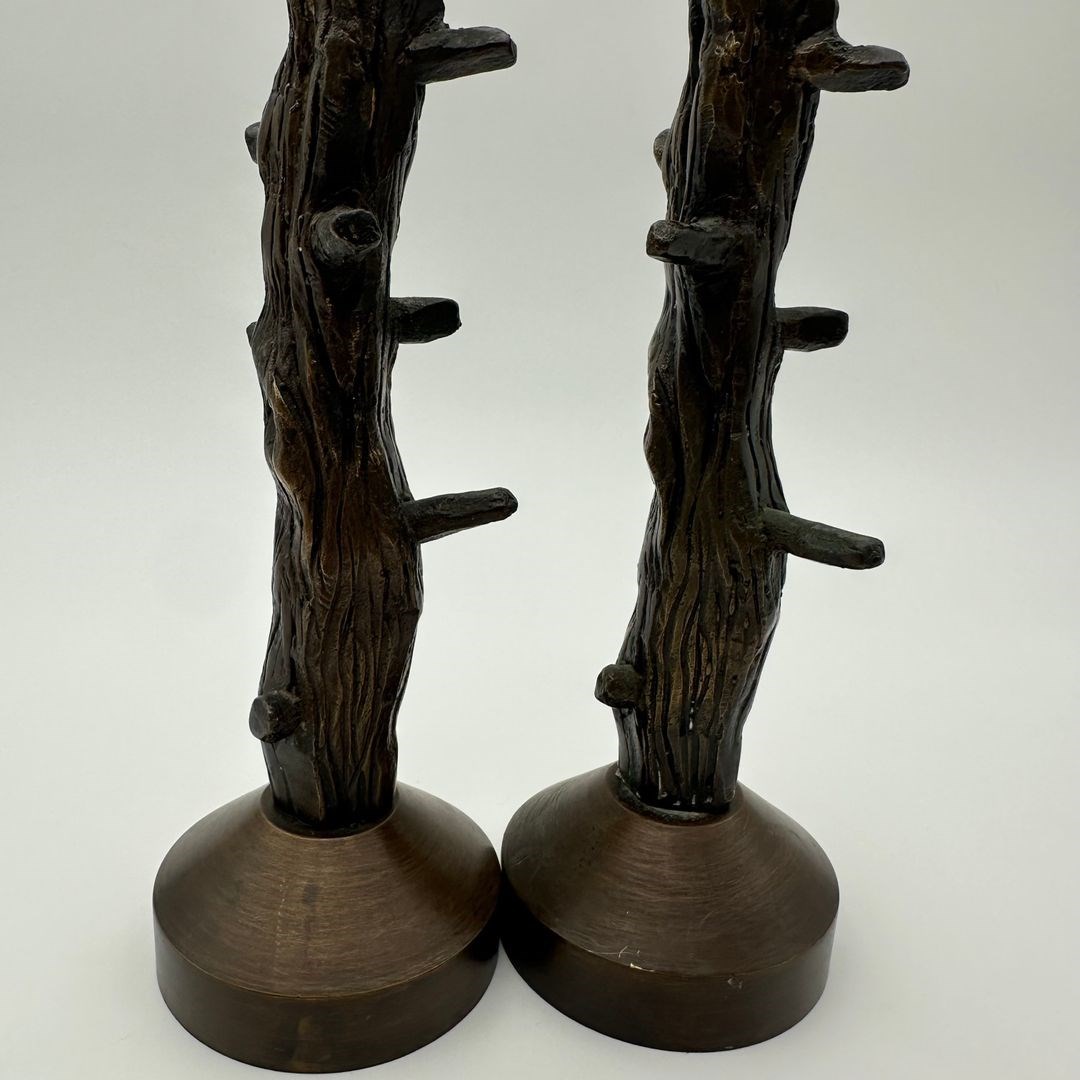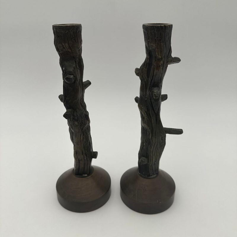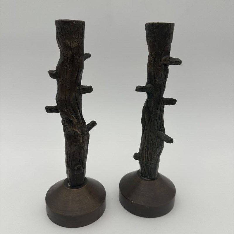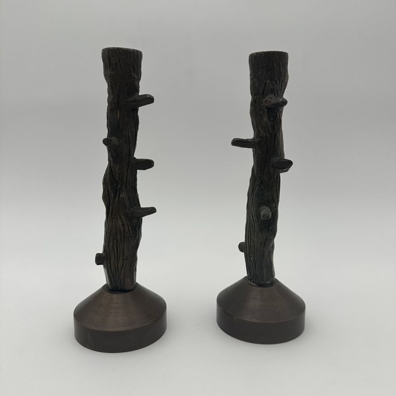 Pair Of Patinated Bronze Candlesticks Sculpted As Tree Branches In An Elegant Fa