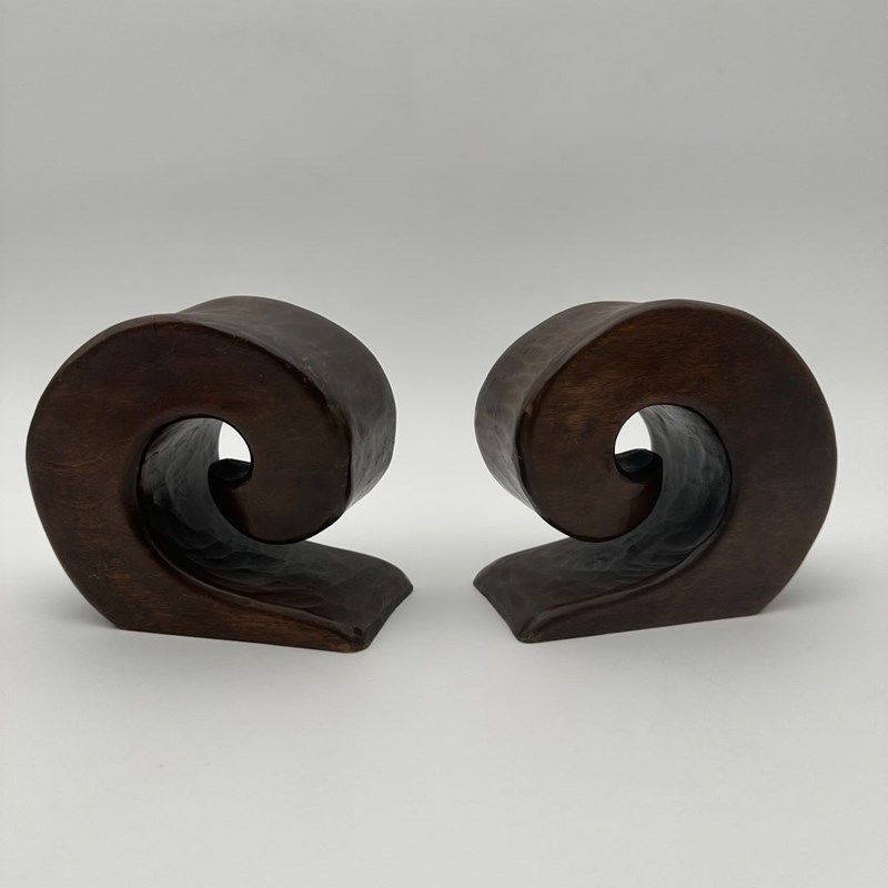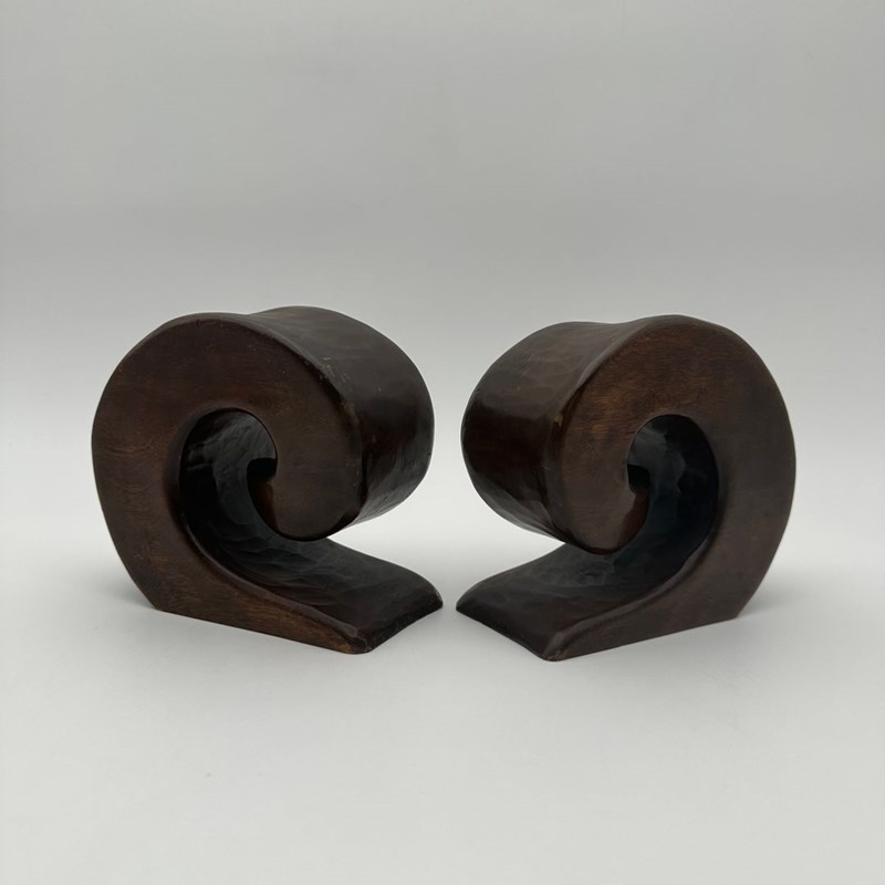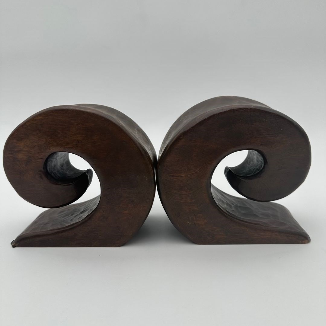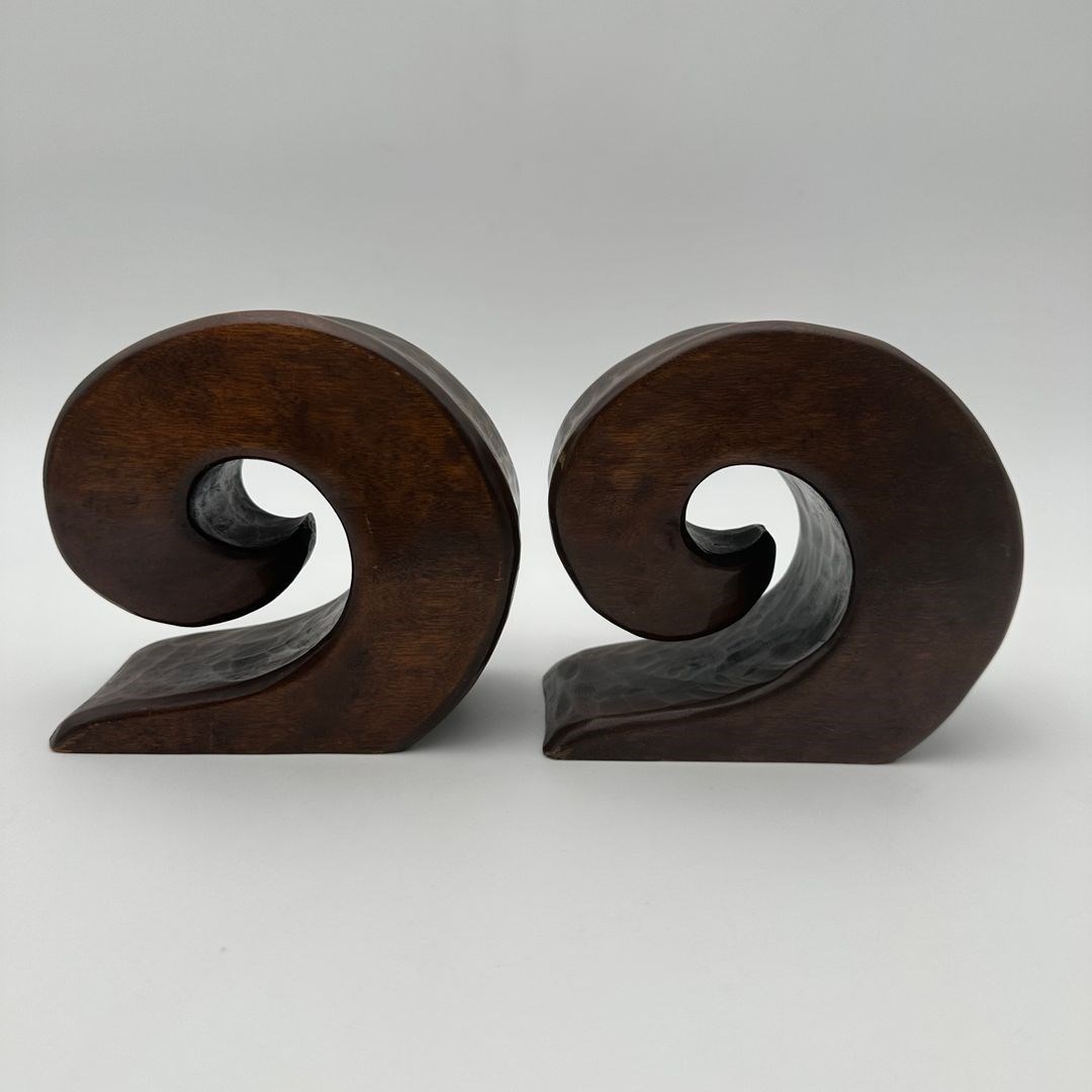 Pair Of Solid Walnut Bookends Made In The Style Of Alexandre Noll