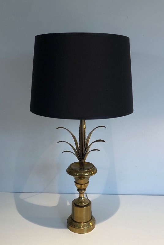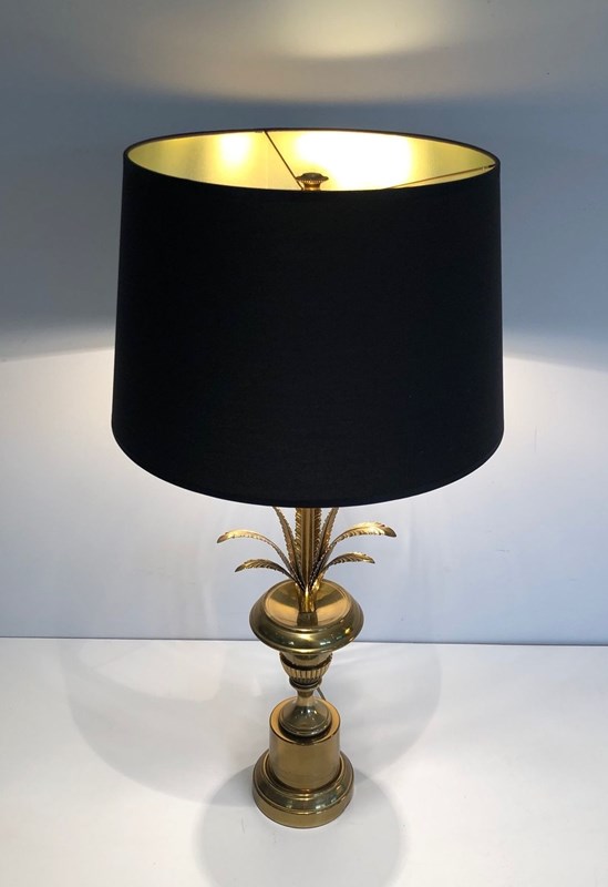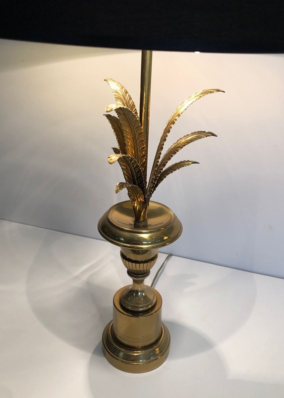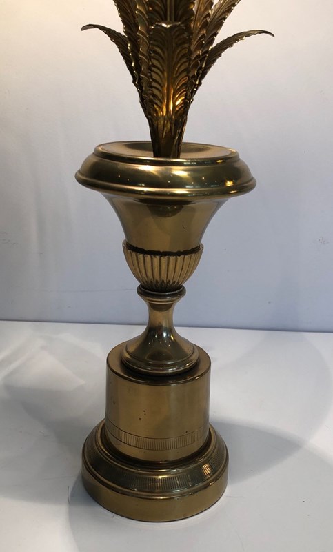 Palm Tree Neoclassical Style Brass Table Lamp In The Style Of Maison Charles