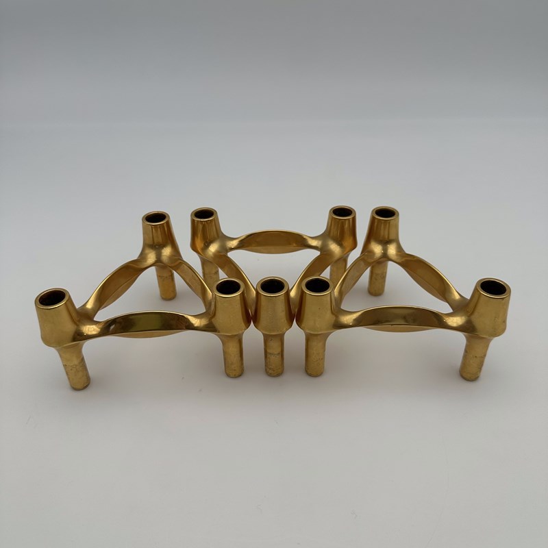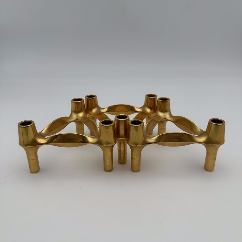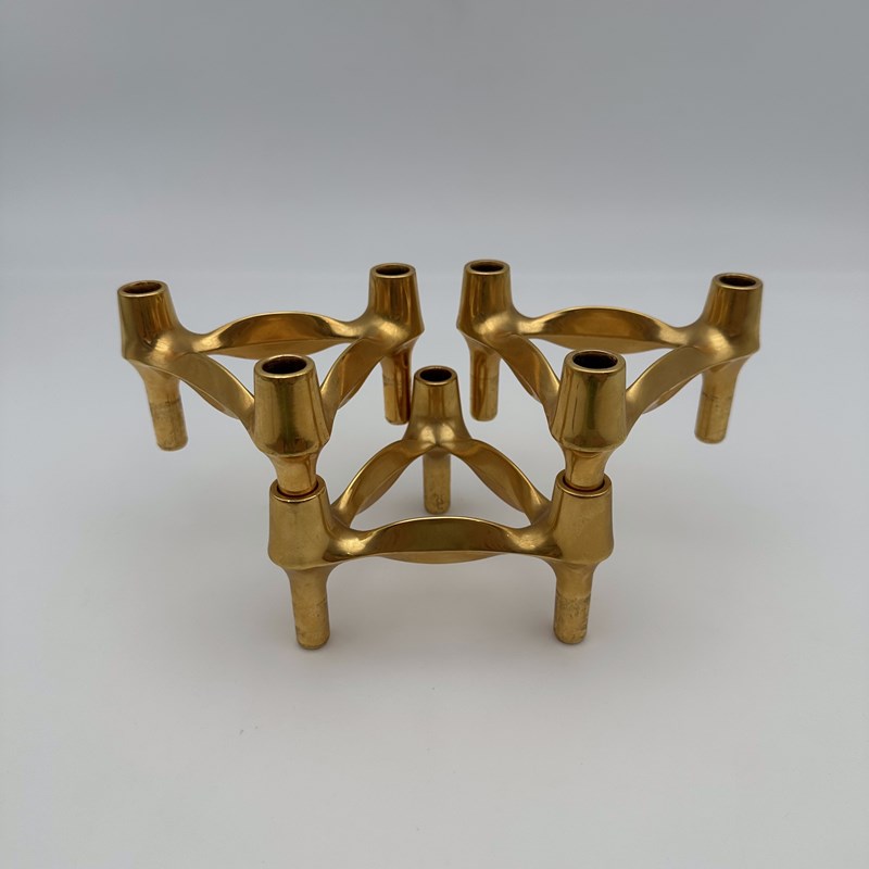 Rare Set Of 3 Gold-Tone BMF Quist "Variomaster" Modular Candle Holders, 1970S