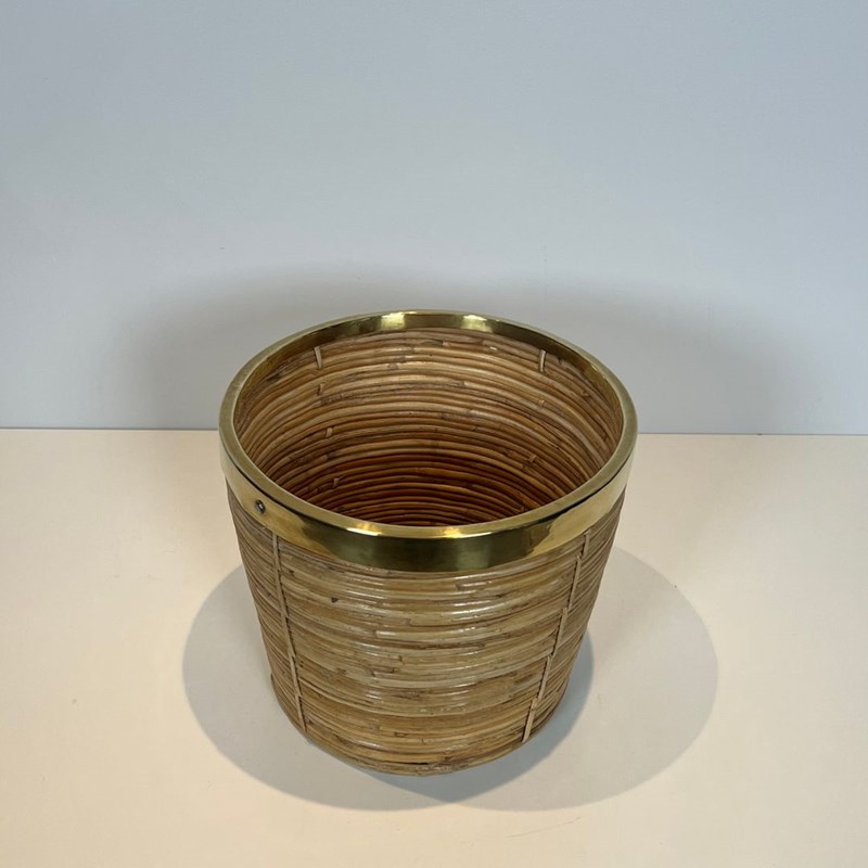 Rattan And Brass Wastebasket In The Style Of Gabriela Crespi