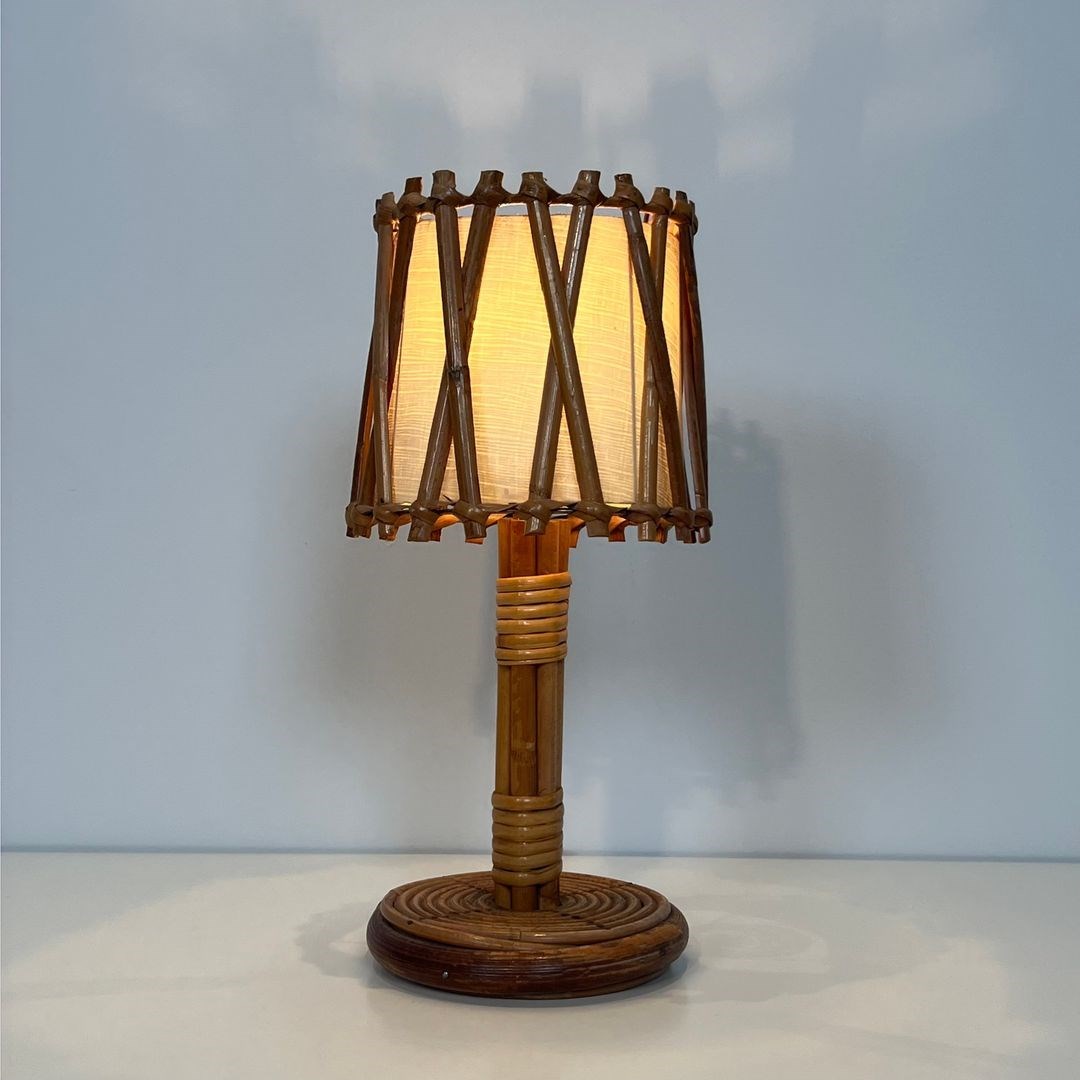 Rattan table lamp. French work by Louis Sognot. Circa 1950