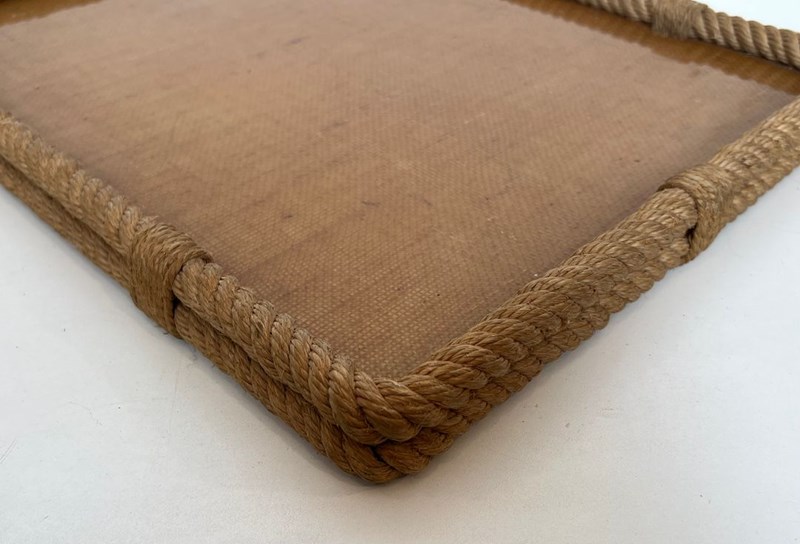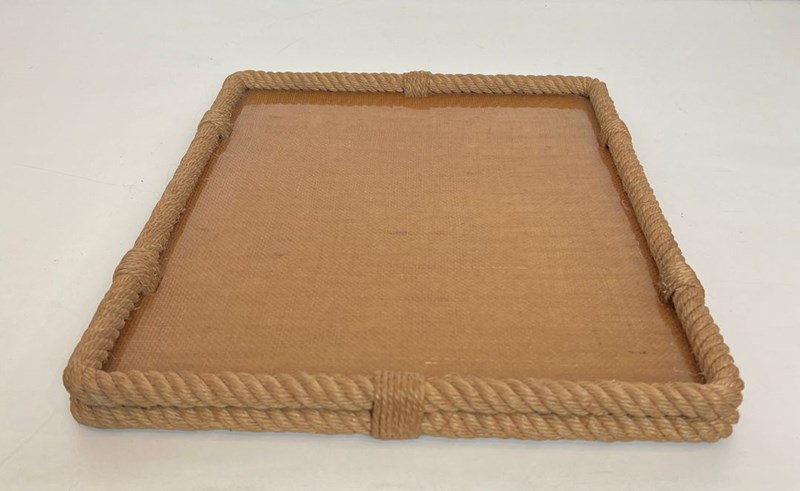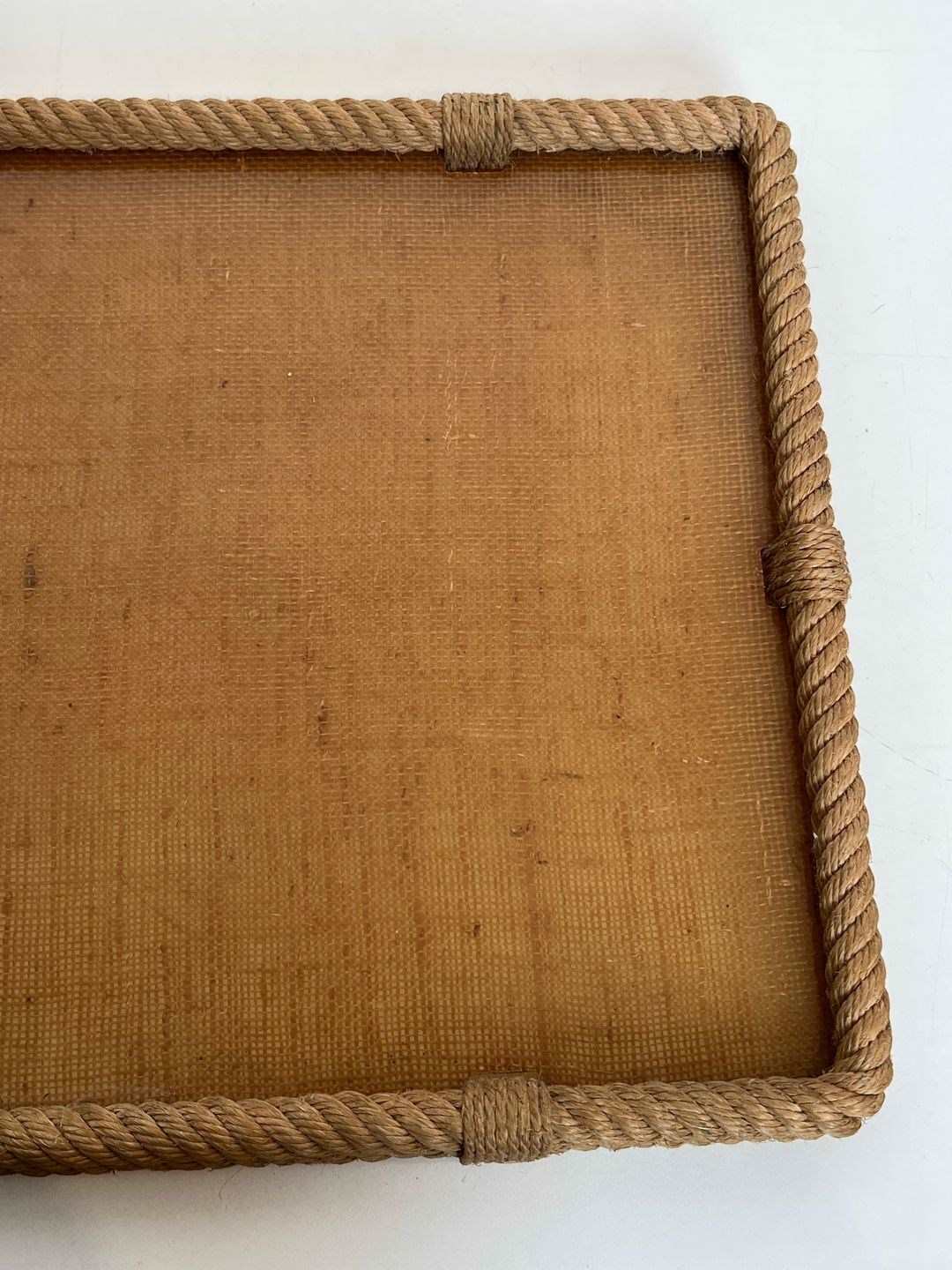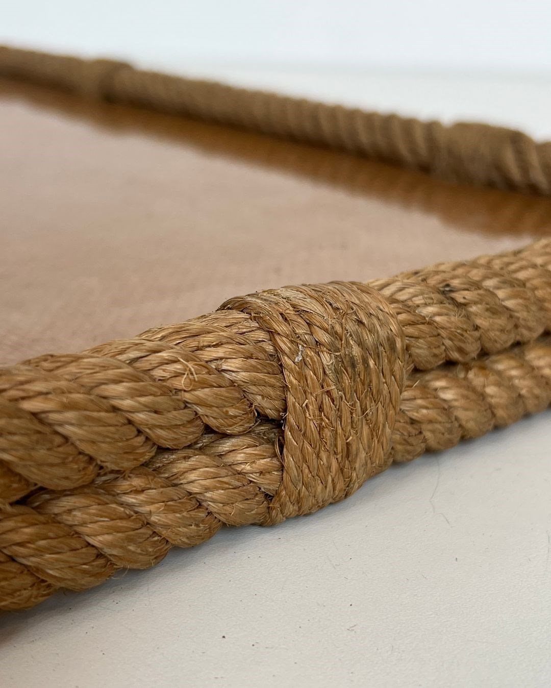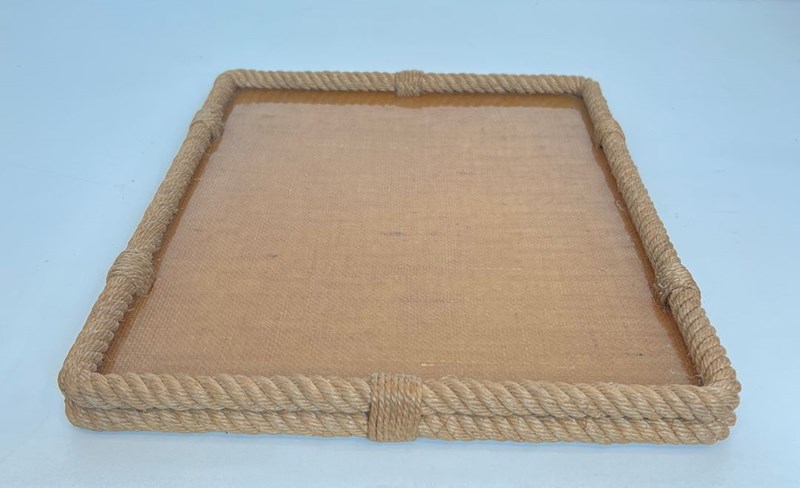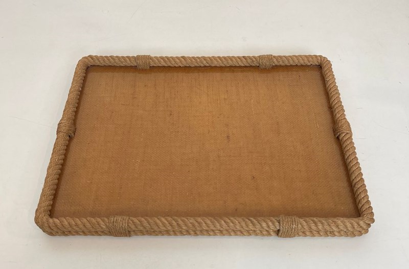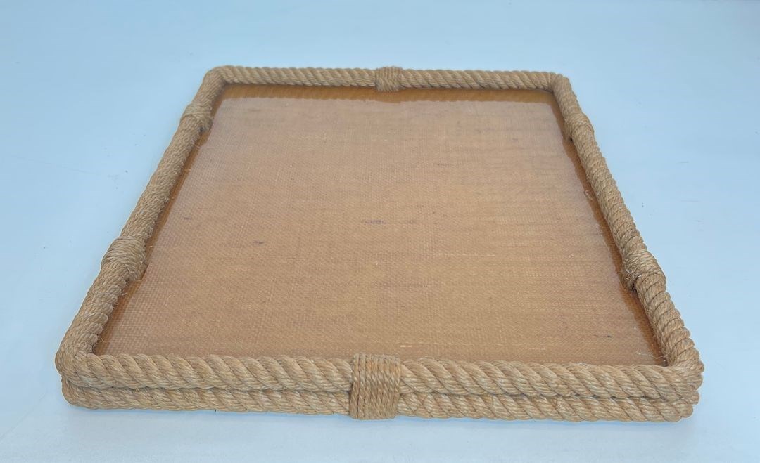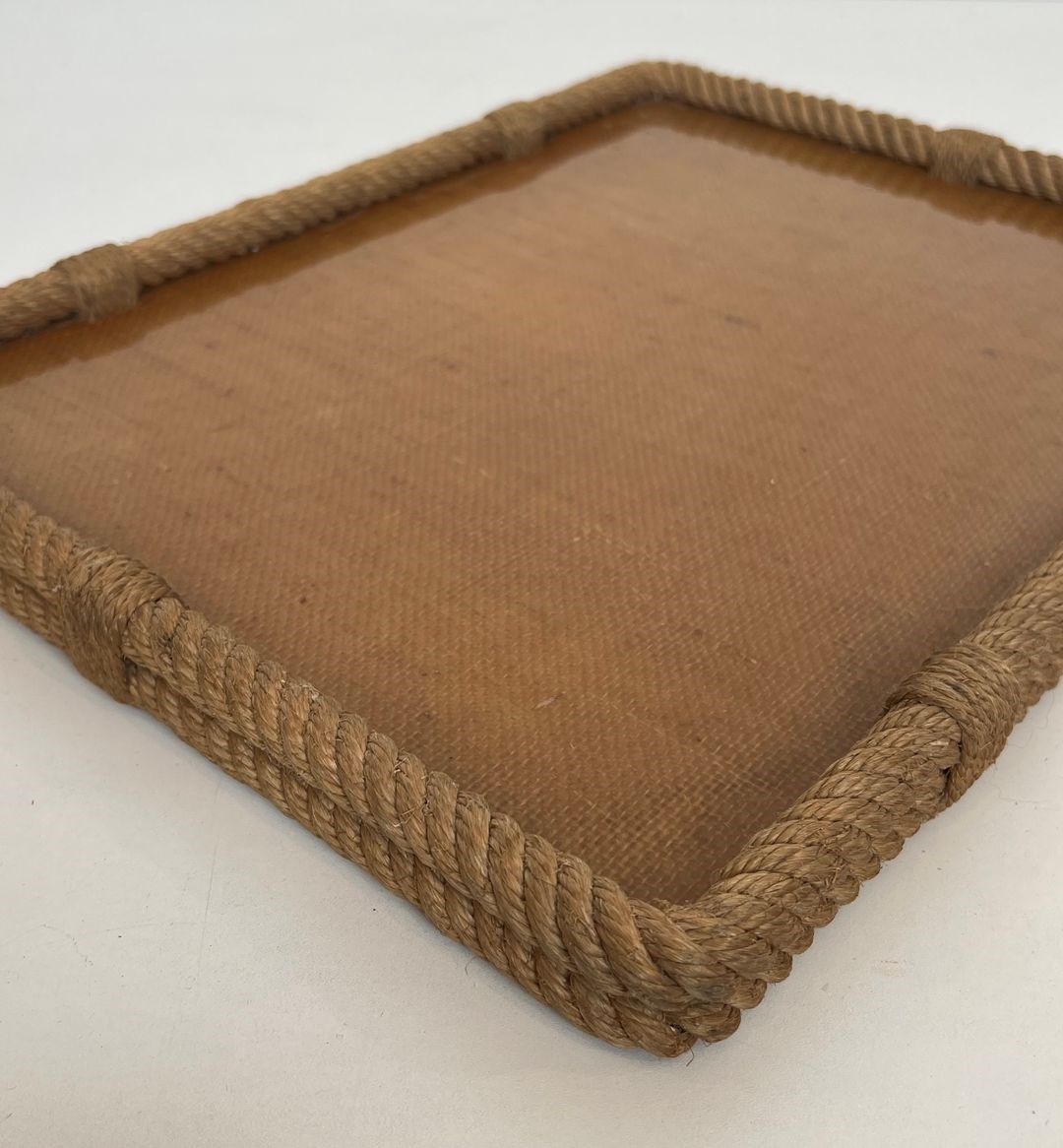 Rope and lucite tray. French work by Adrien Audoux and Frida Minet (Audoux-Minet). Circa 1970