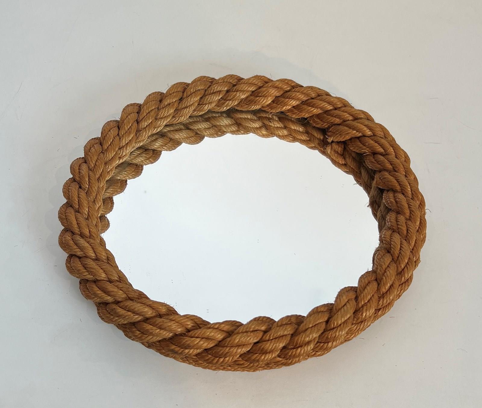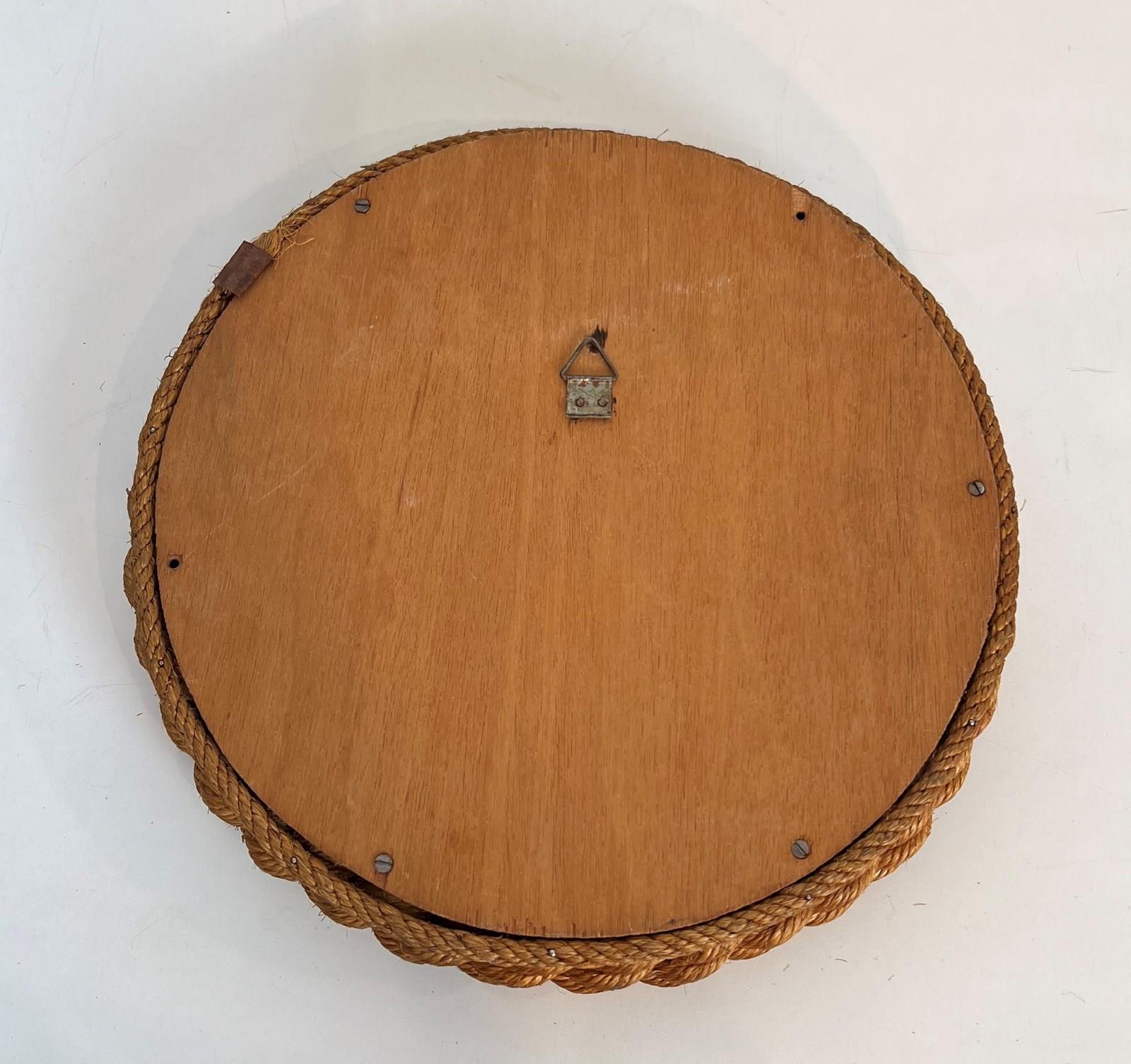 Round rope mirror. French work by Adrien Audoux and Frida Minet (Audoux-Minet). Circa 1970