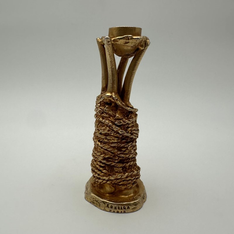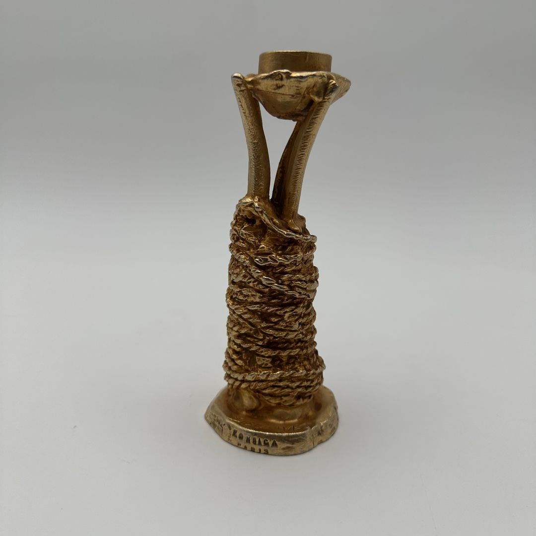 Sculptural Gilt Aluminum Candlestick Designed By Pierre Casenove For Fondica, Si