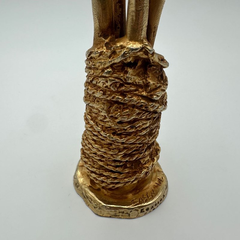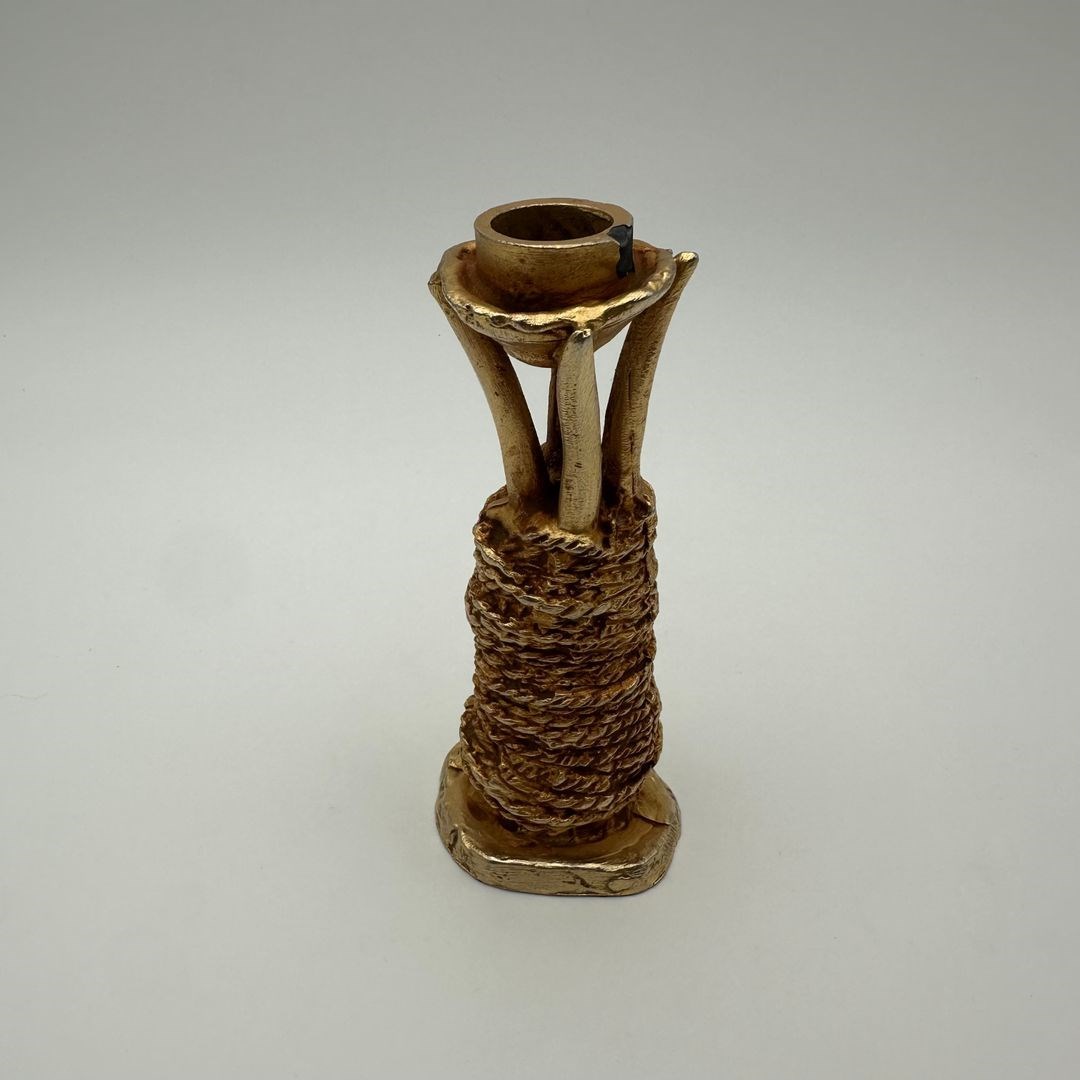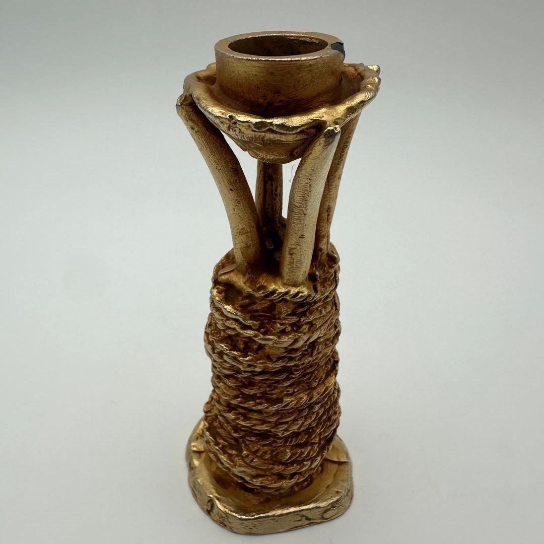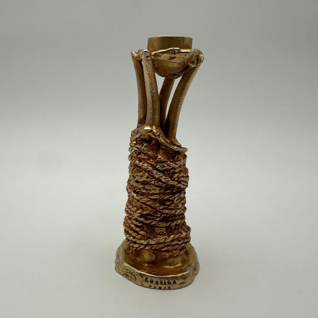 Sculptural gilt aluminum candlestick designed by Pierre Casenove for Fondica, signed. Conceived as a true piece of sculpture, it stands out for its organic forms and raw texture, characteristic of Casenove’s distinctive work.