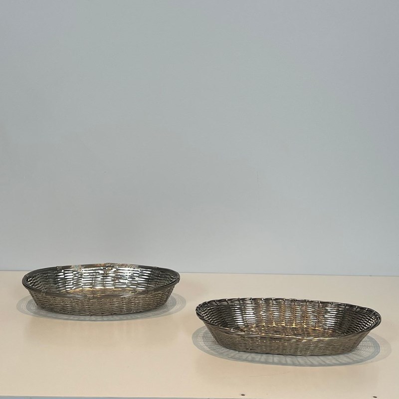 Set Of Two Baskets / Vide-Poches Made Of Silver-Plated Metal Wire