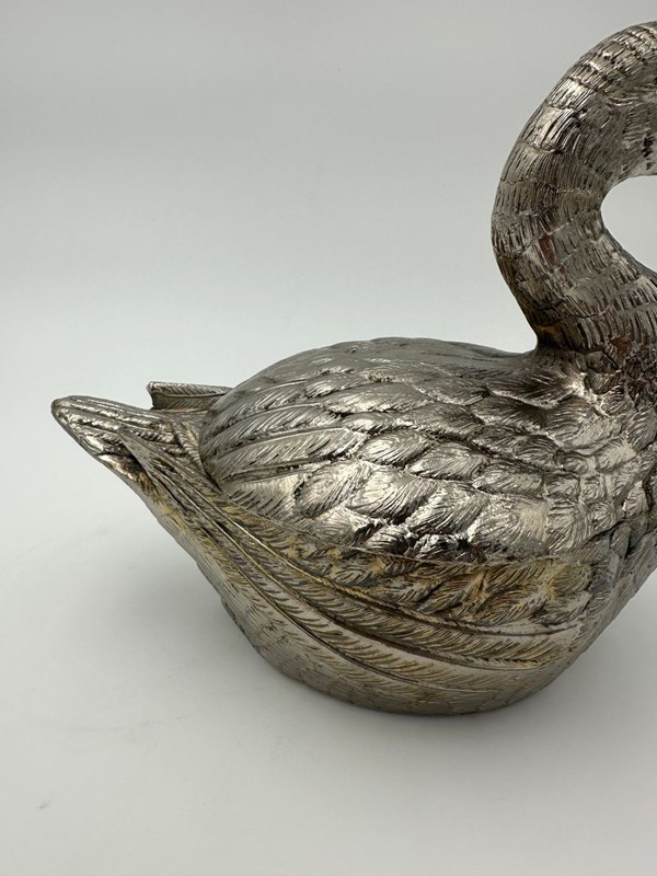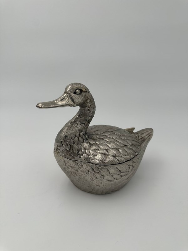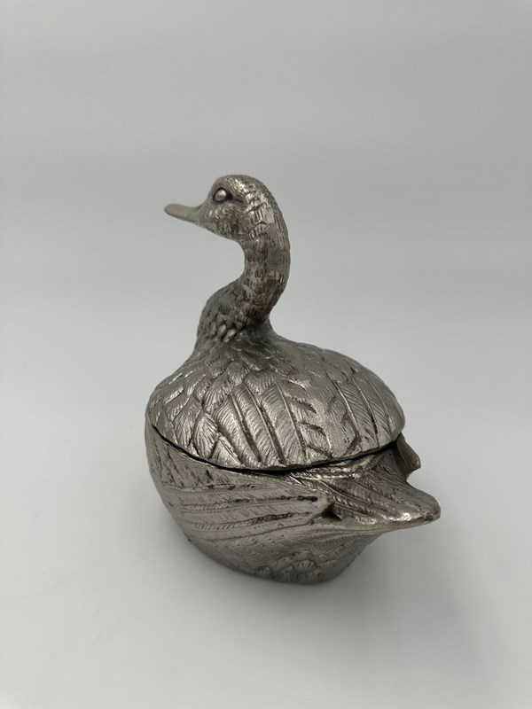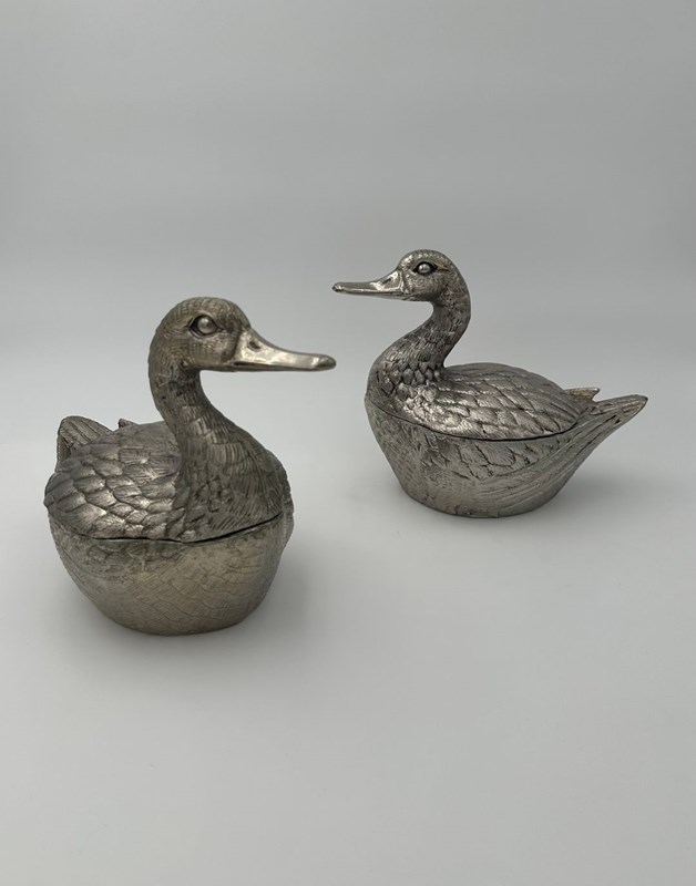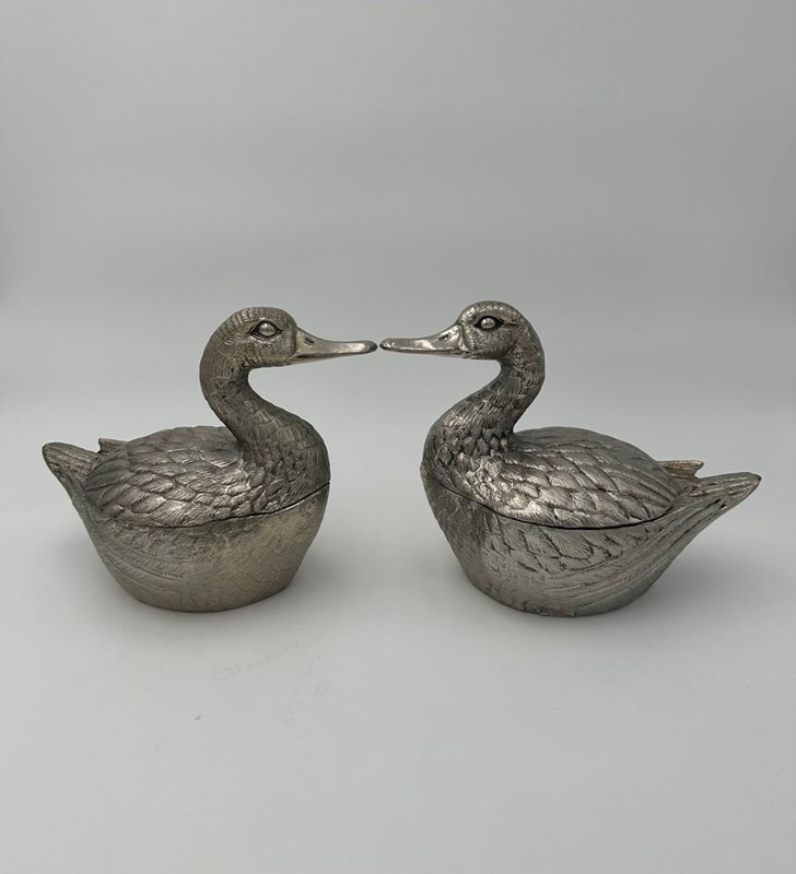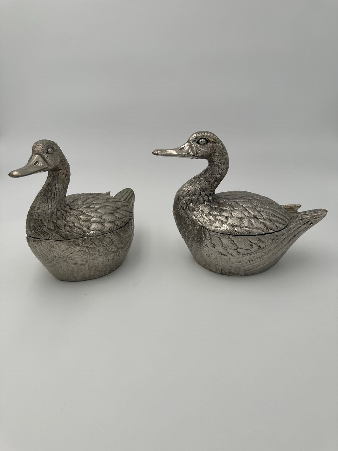Set Of Two Silvered Metal Ice Bucket Representing A Duck