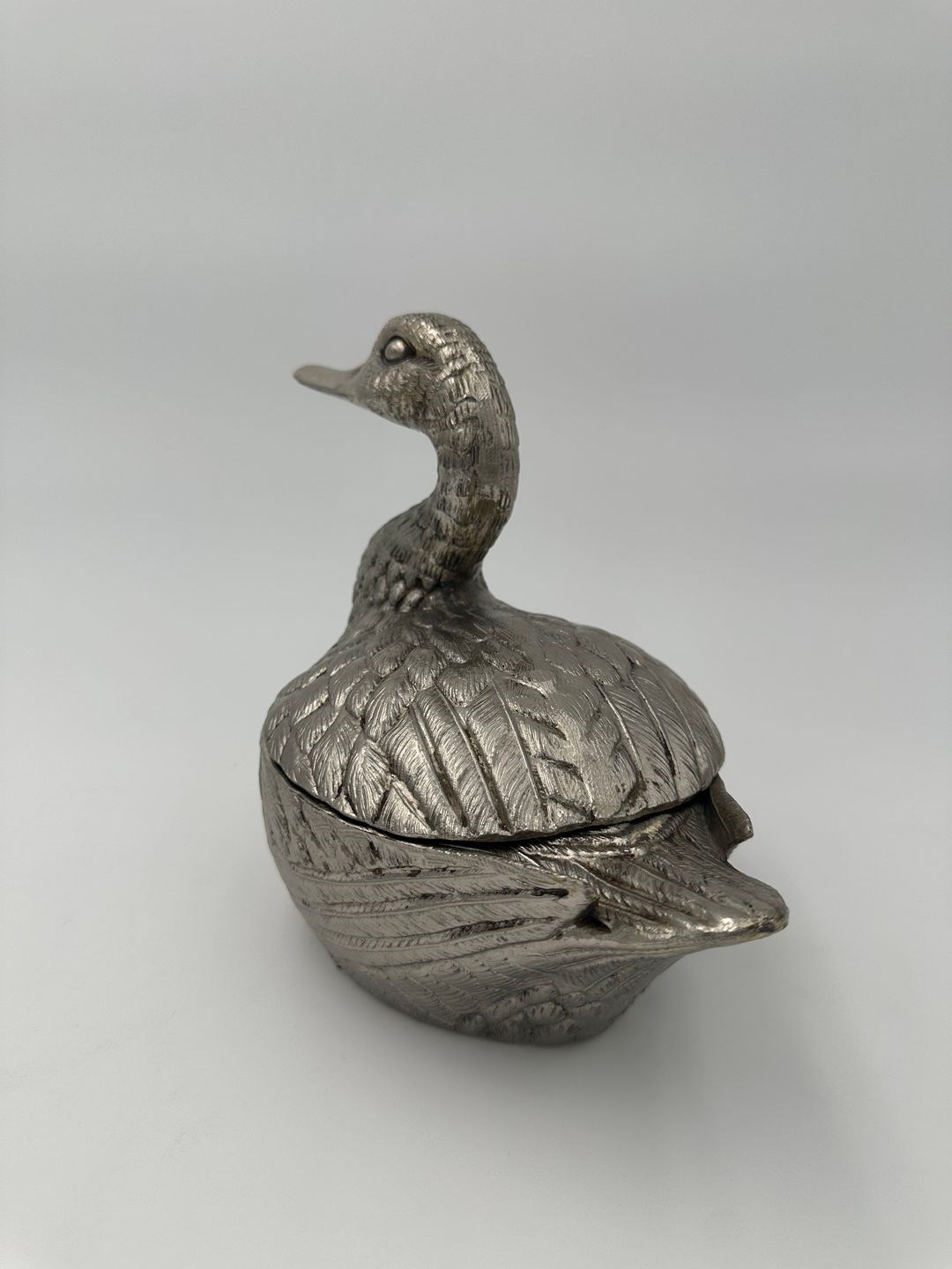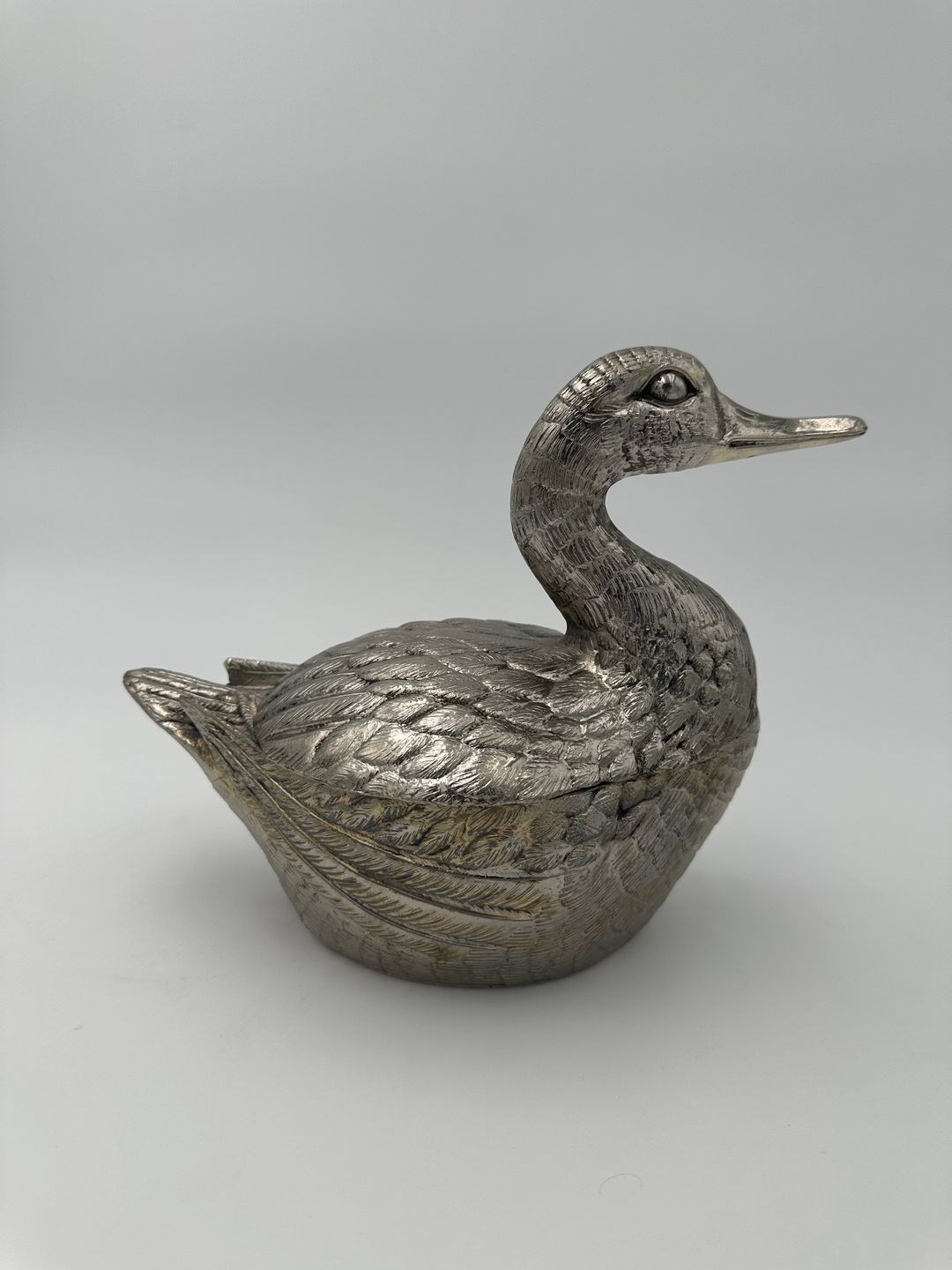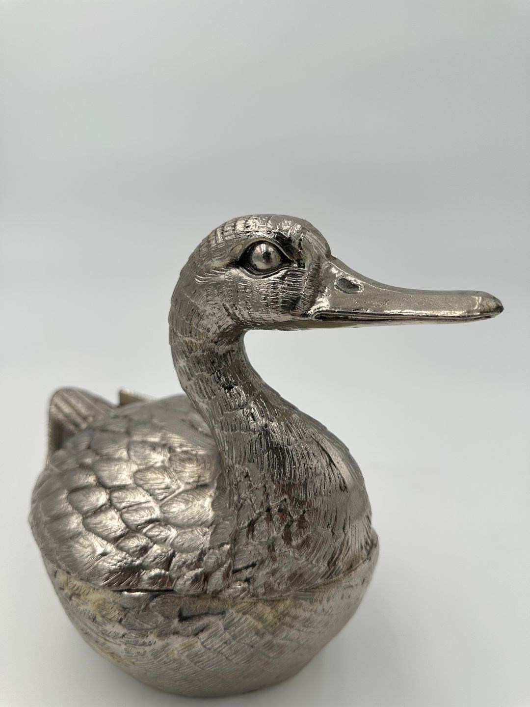 Set of two silvered metal ice bucket representing a duck. Italian work by Mauro Manetti. Circa 1970