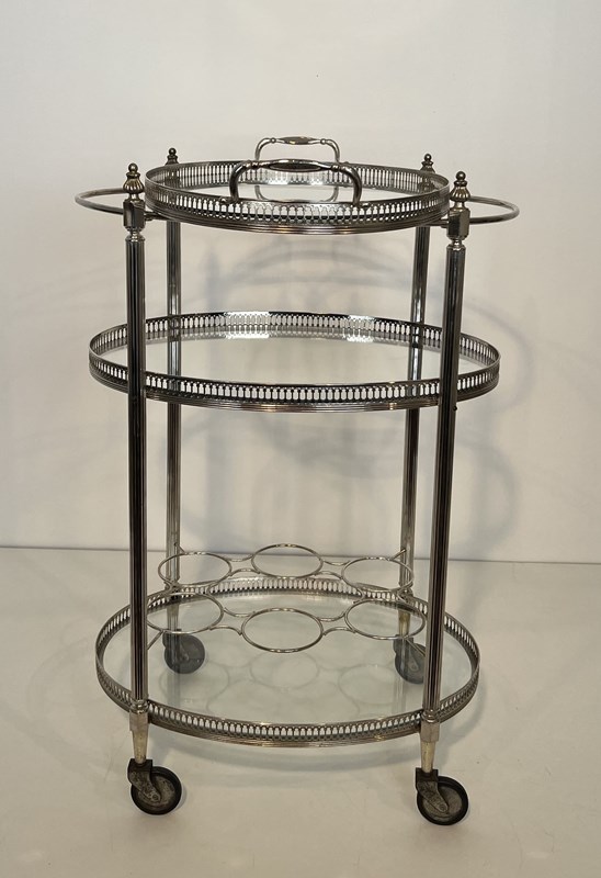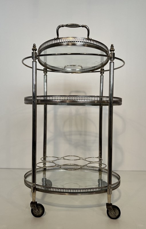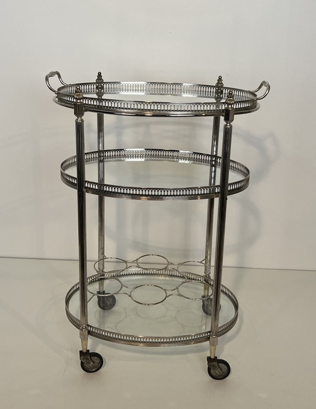 Silver-Plated Three-Tier Oval Bar Cart, Attributed To Maison Jansen, 1940S