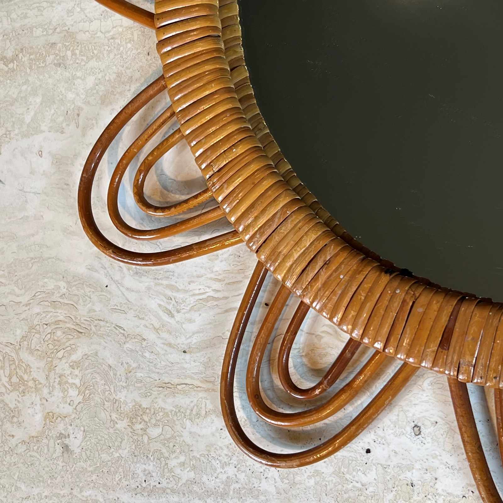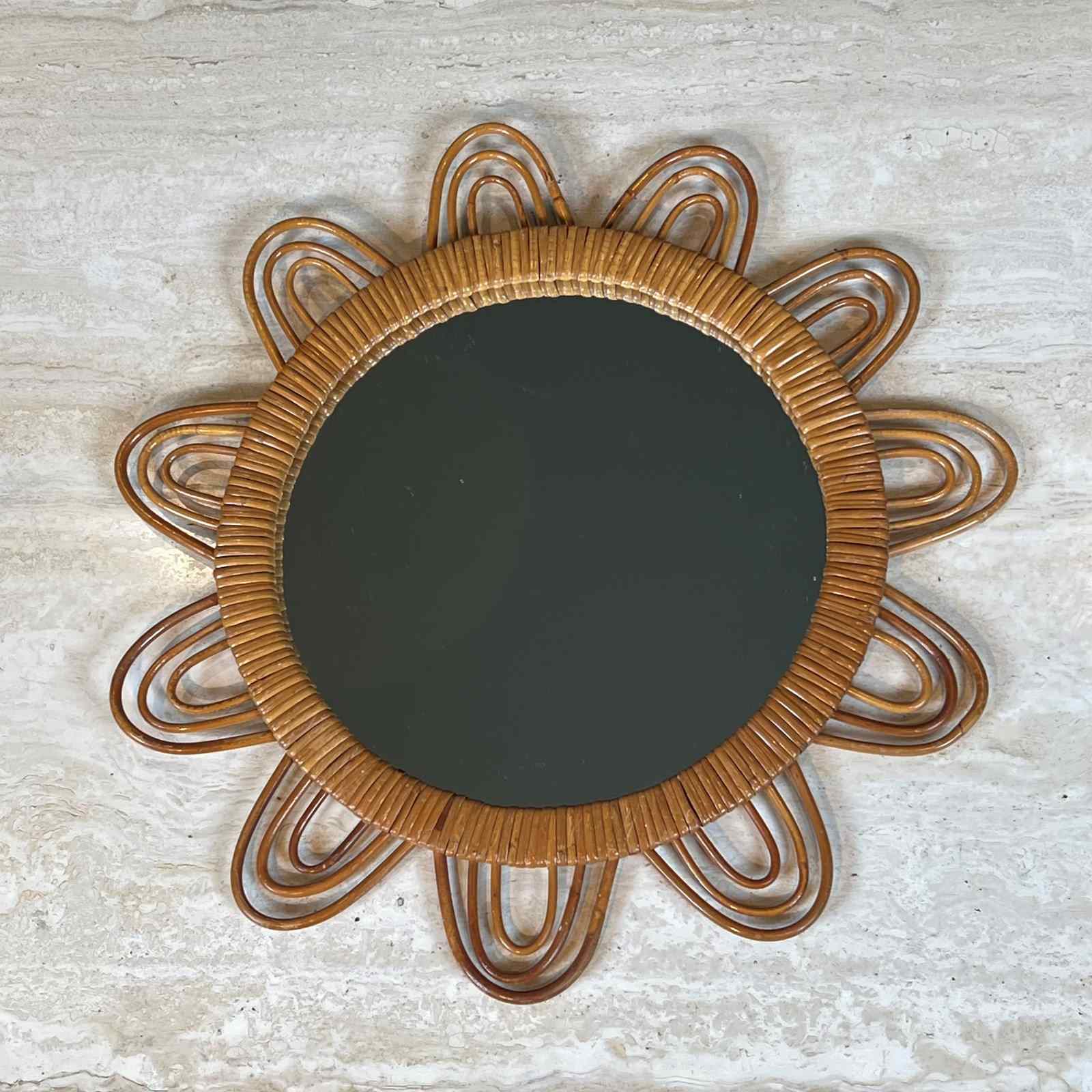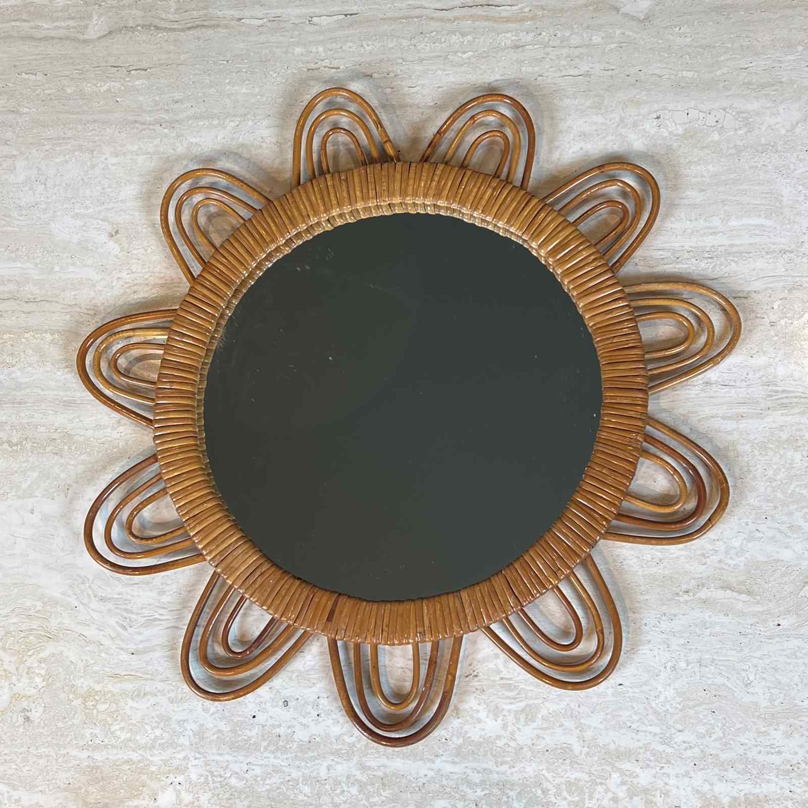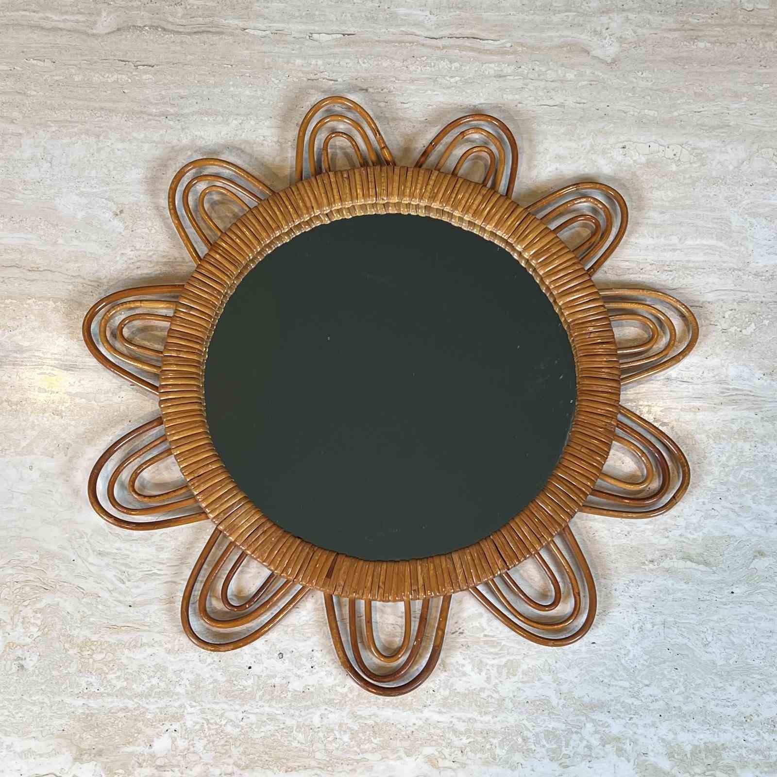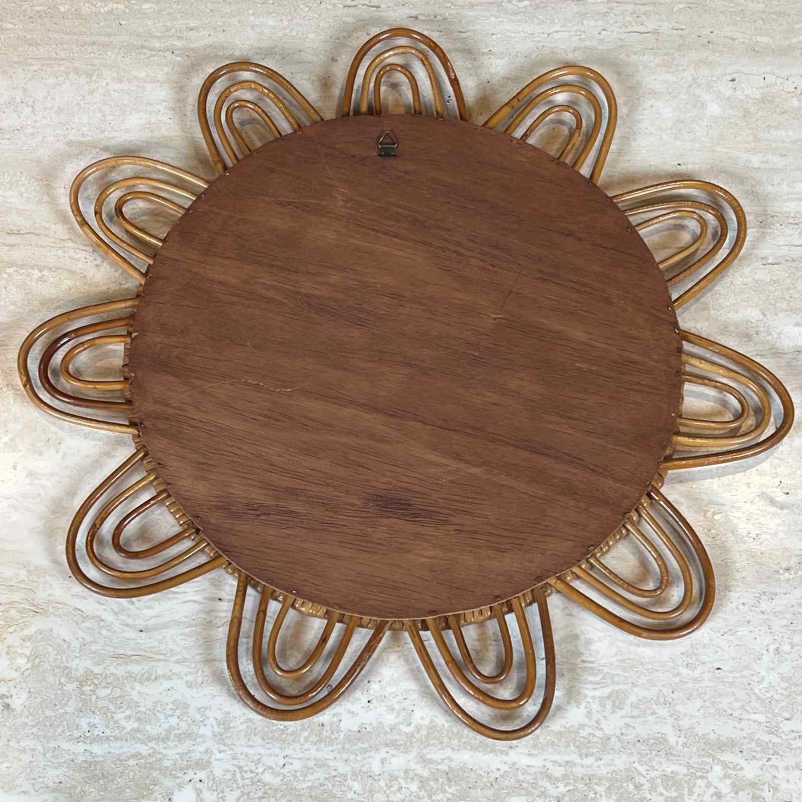 Sun rattan mirror. French. Circa 1970