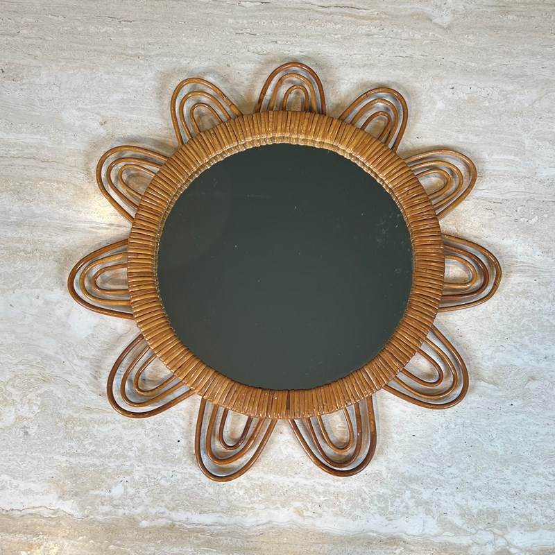 Sun Rattan Mirror. French. Circa 1970