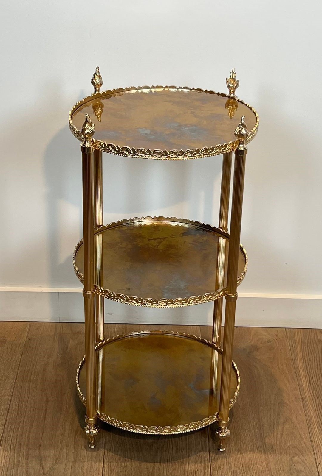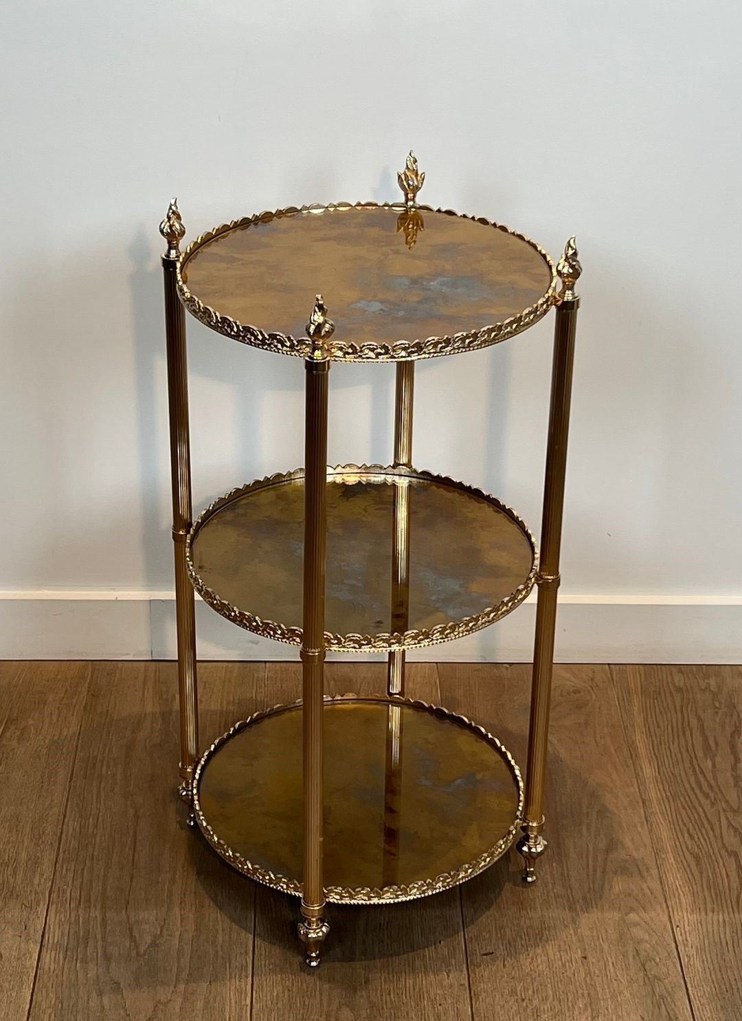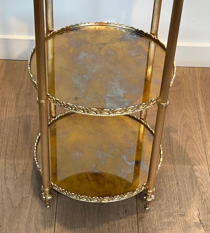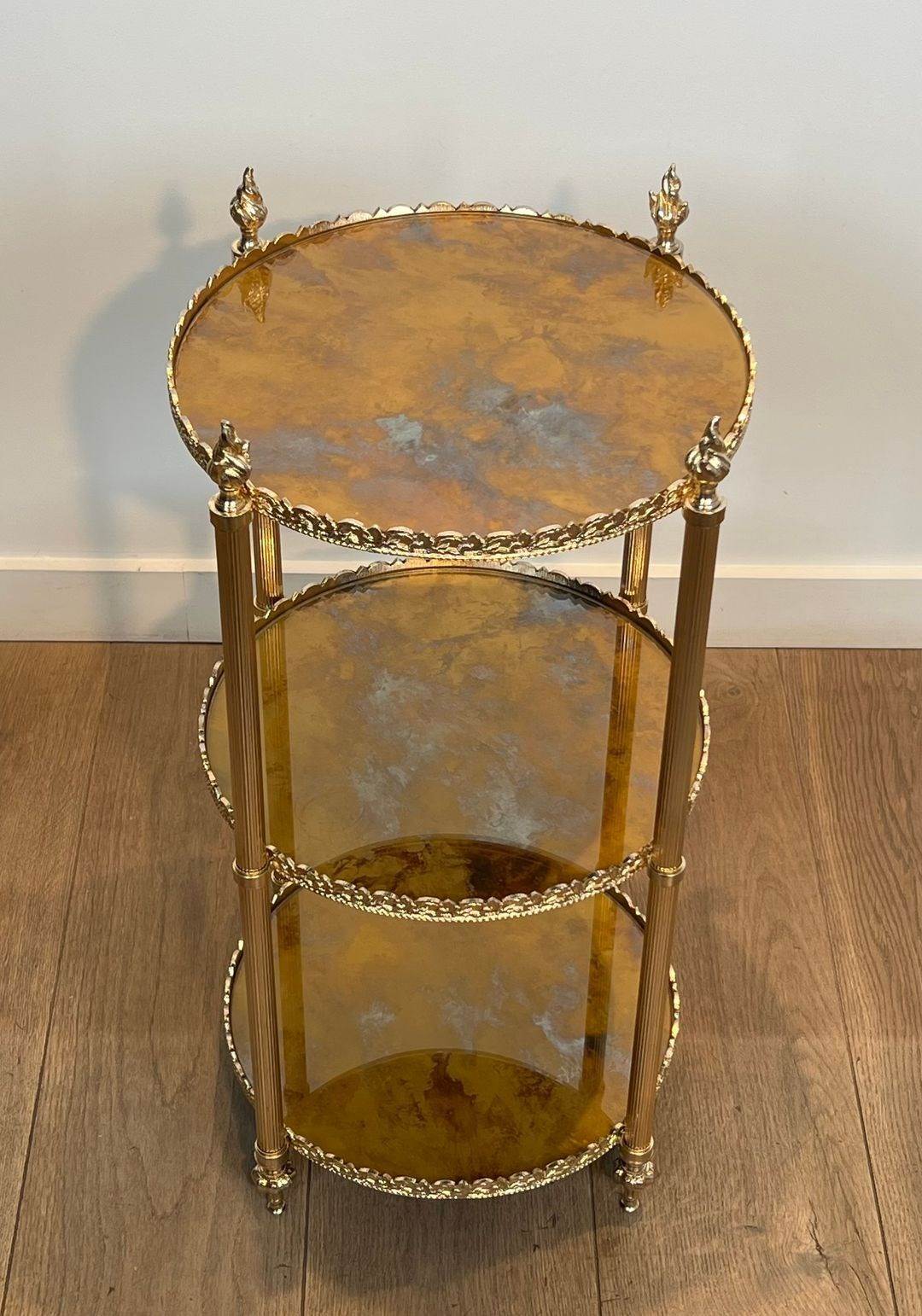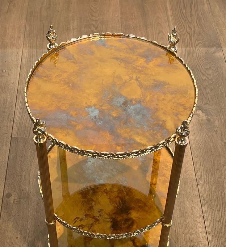 Three Tiers Round Gueridon With Eglomized Mirror Tops