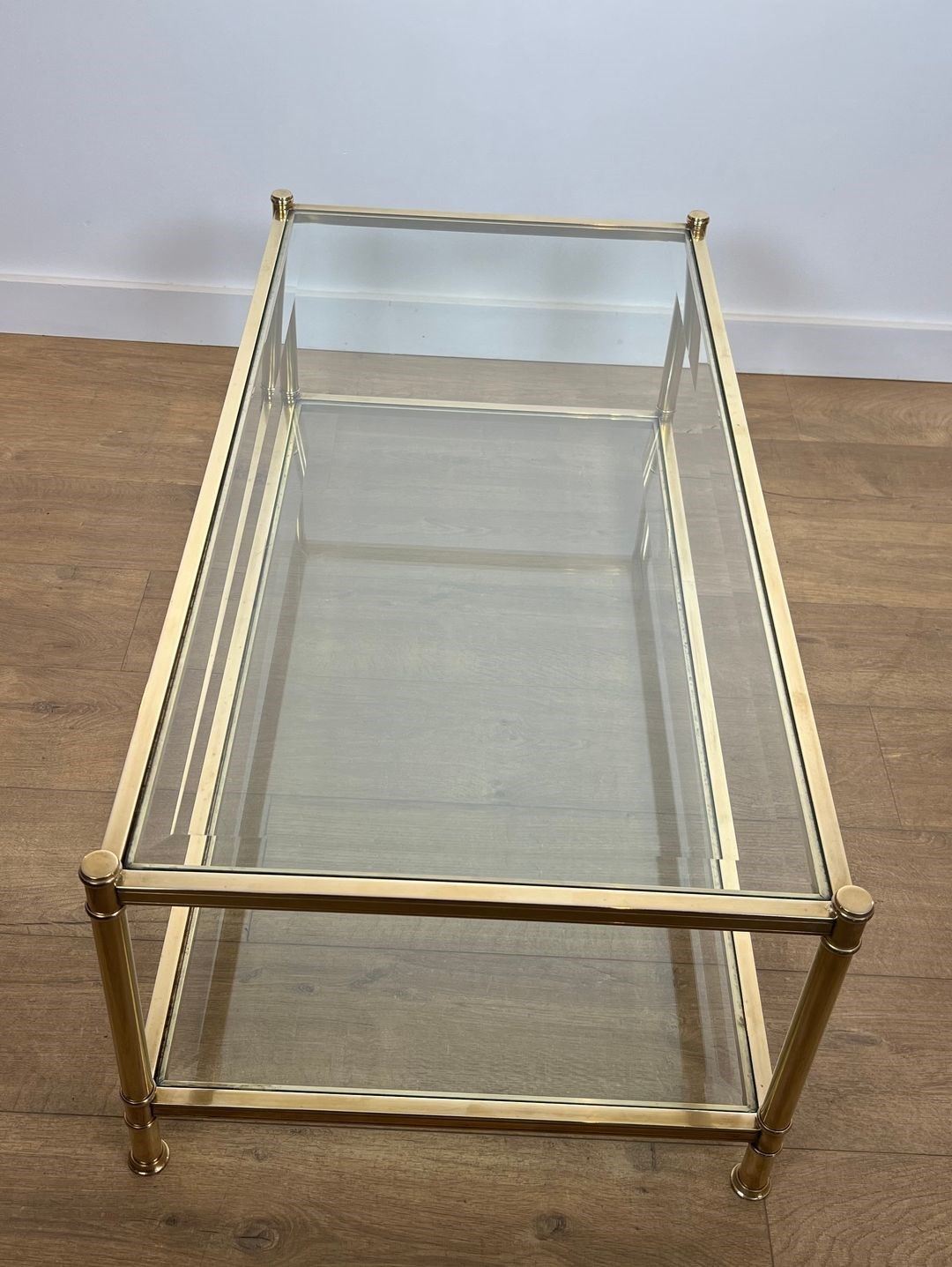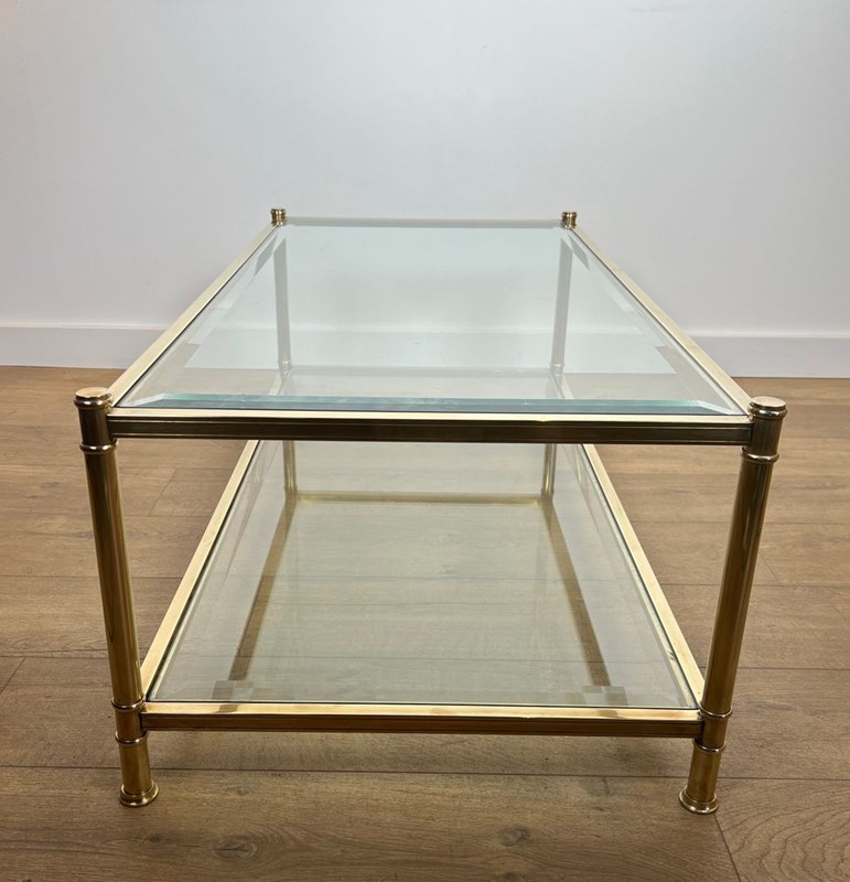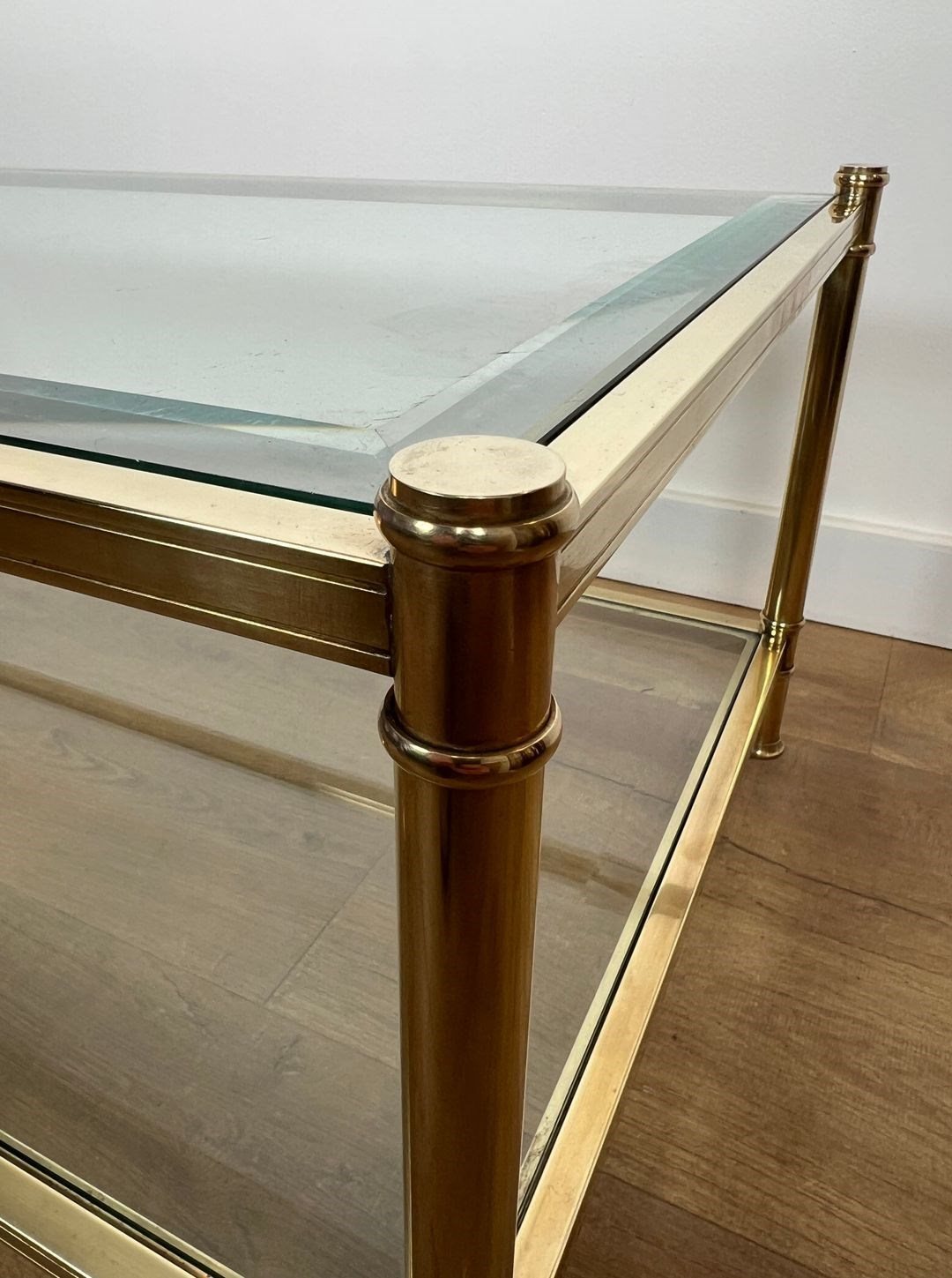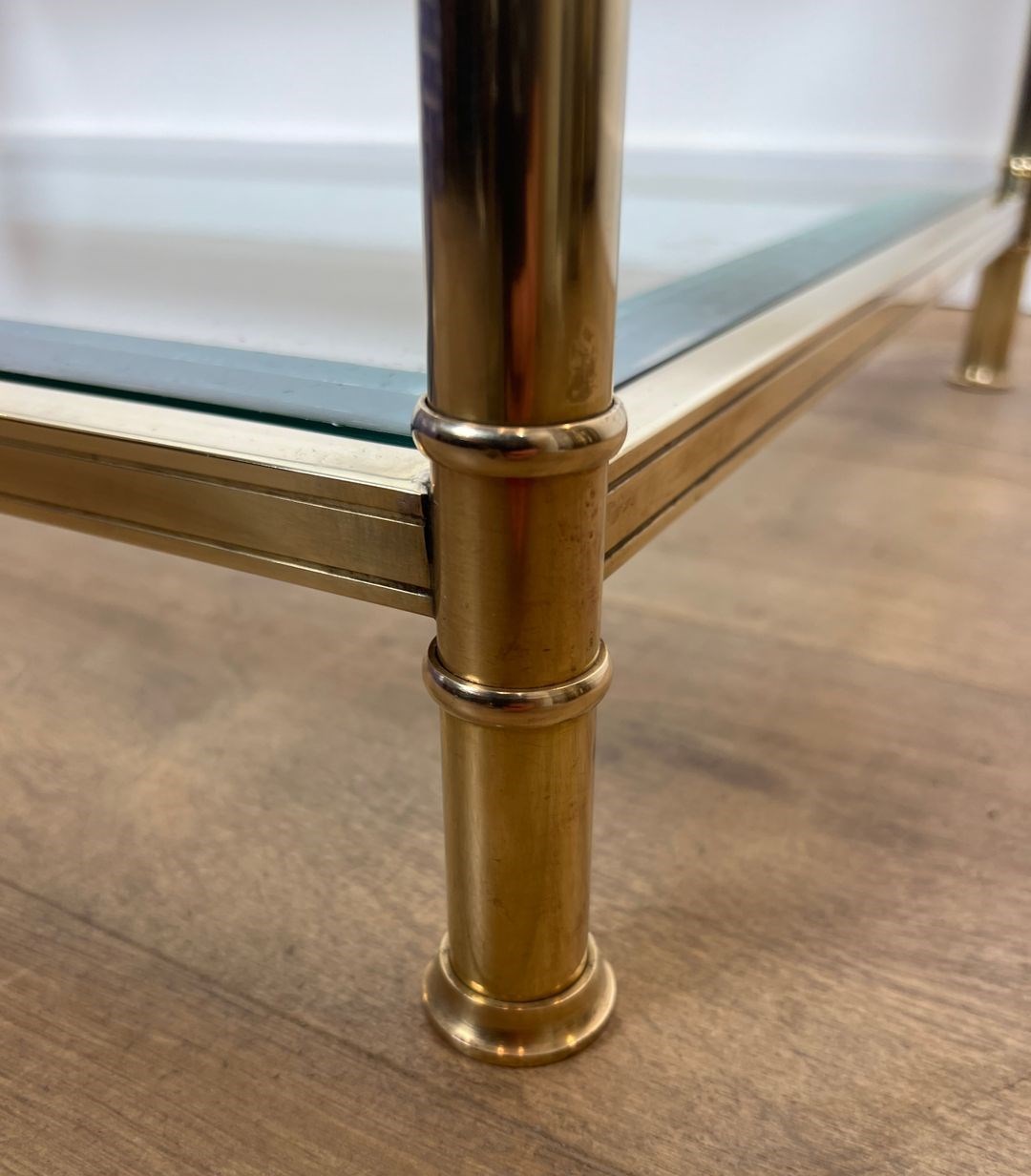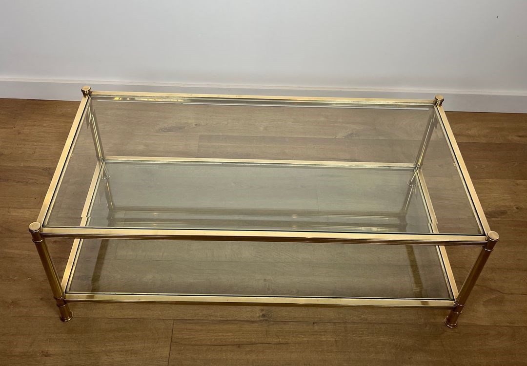 Two tiers brass coffee table. French work by Roche Bobois. Circa 1970