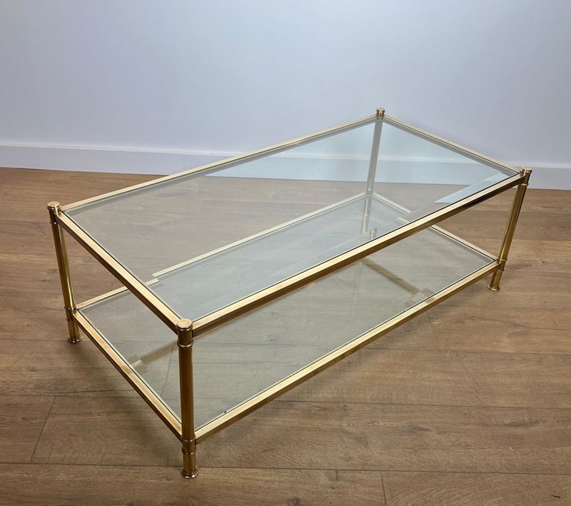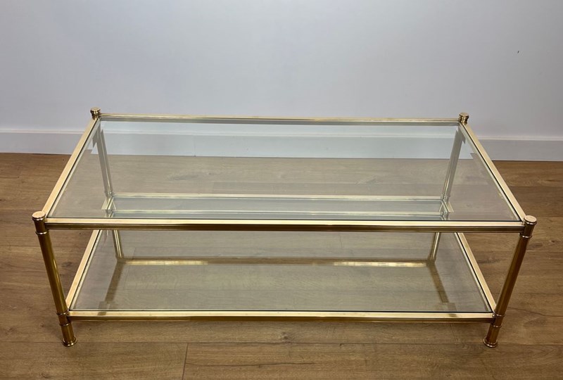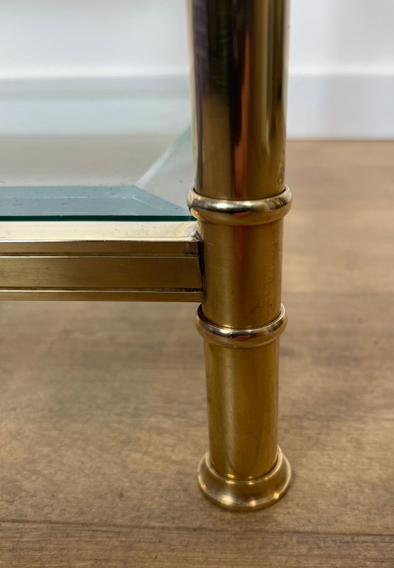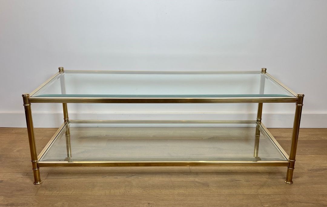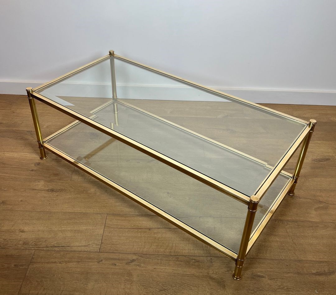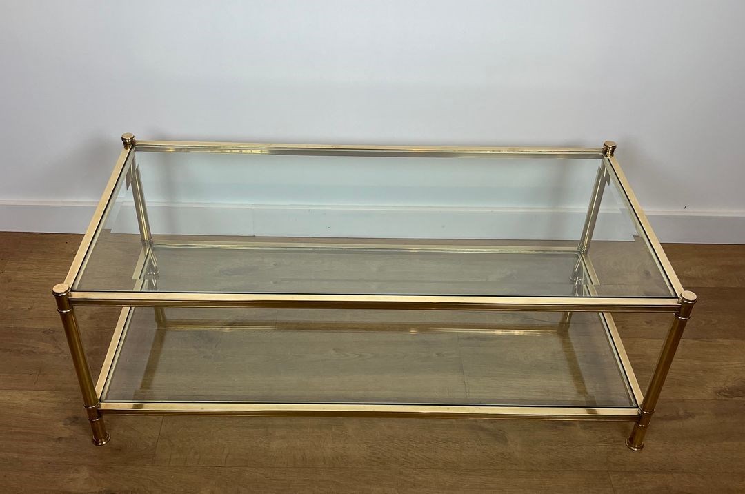 Two tiers brass coffee table. French work by Roche Bobois. Circa 1970