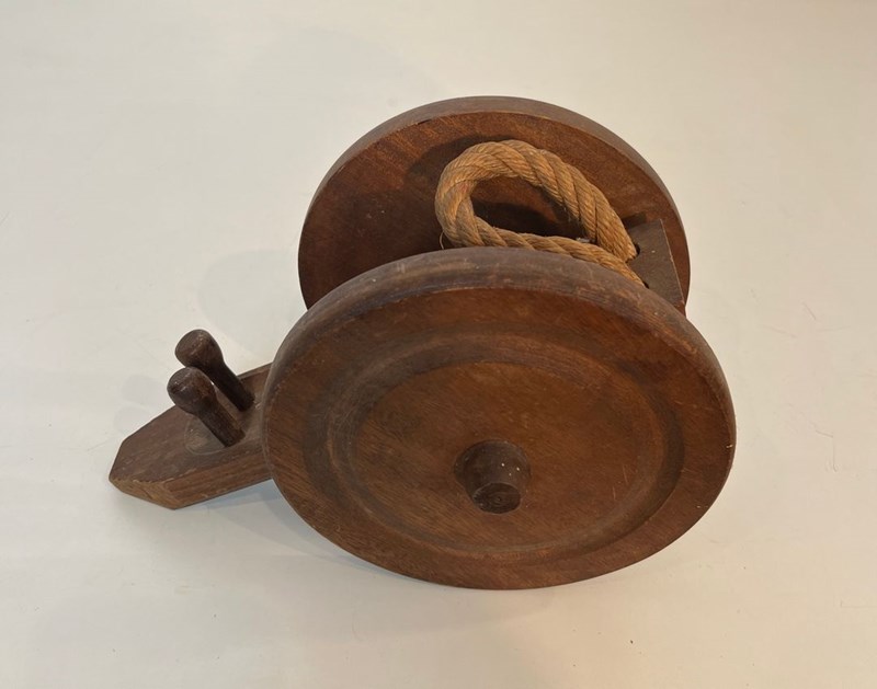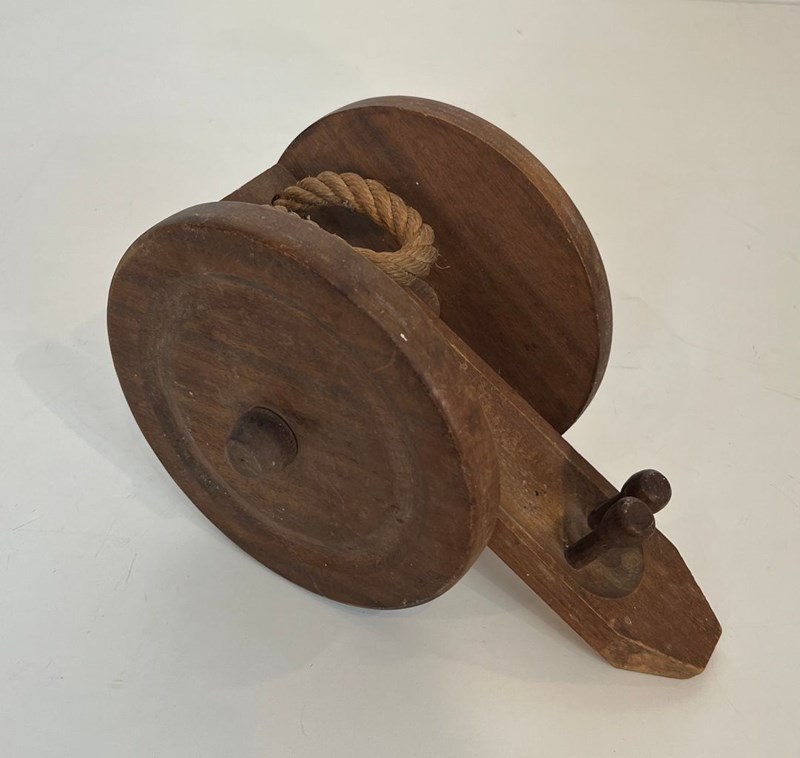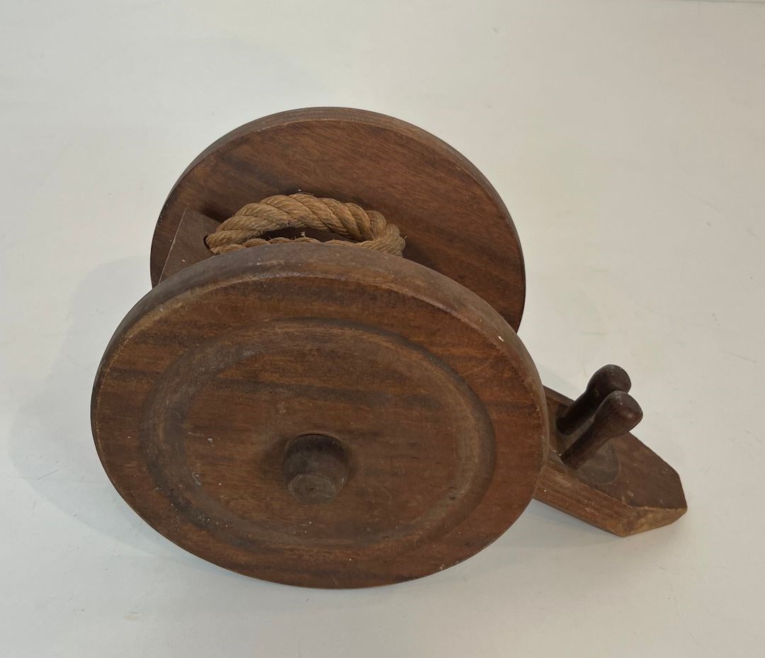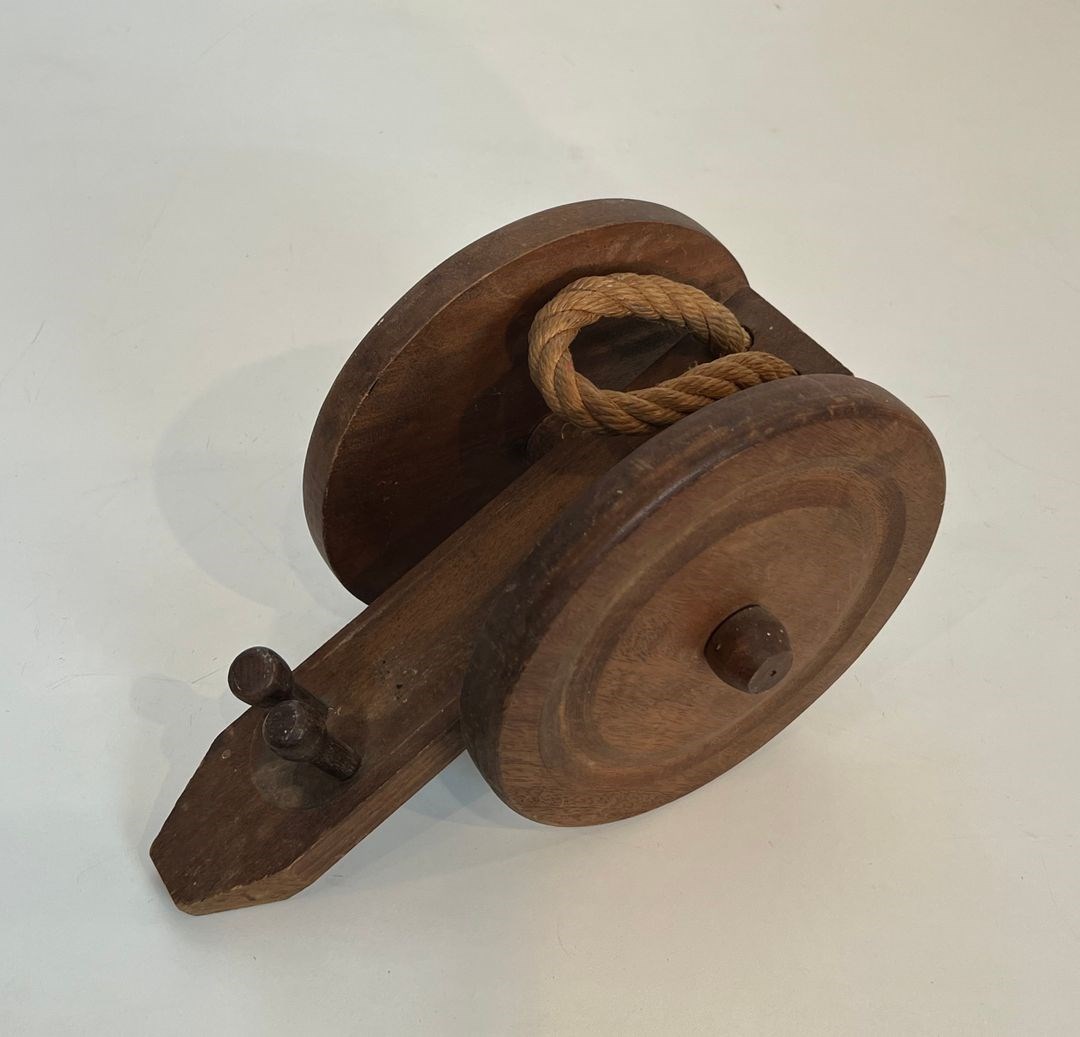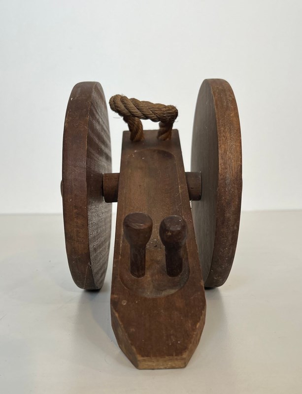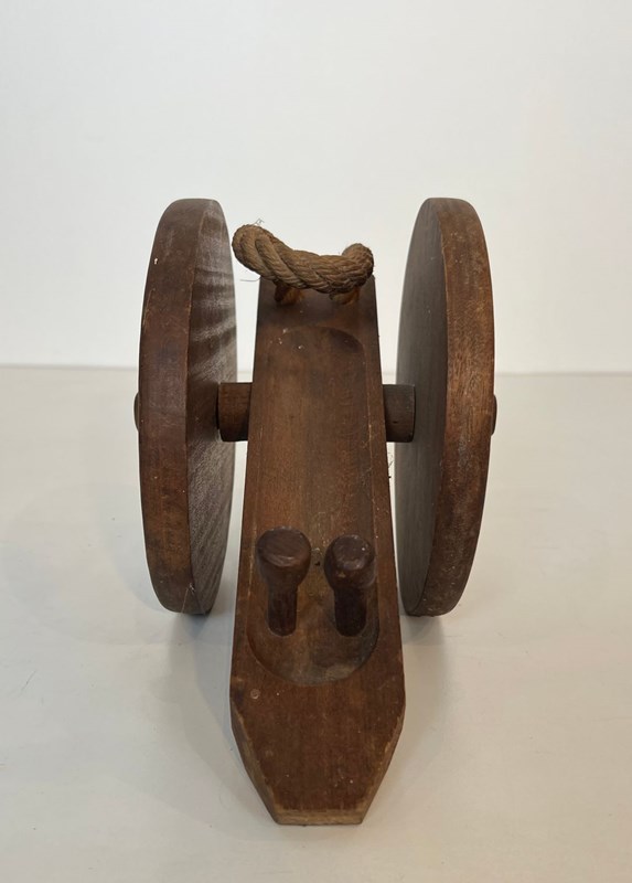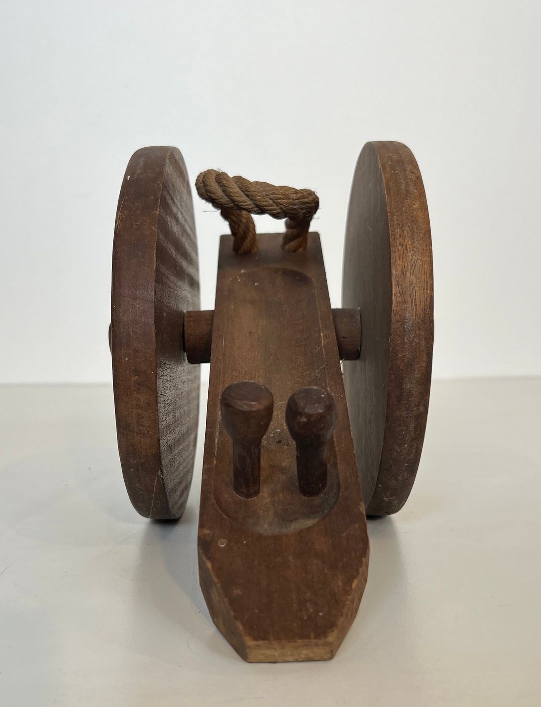 Wood and rope bottle holder representing a cannon. French work by Adrien Audoux and Frida Minet (Audoux-Minet). Circa 1970