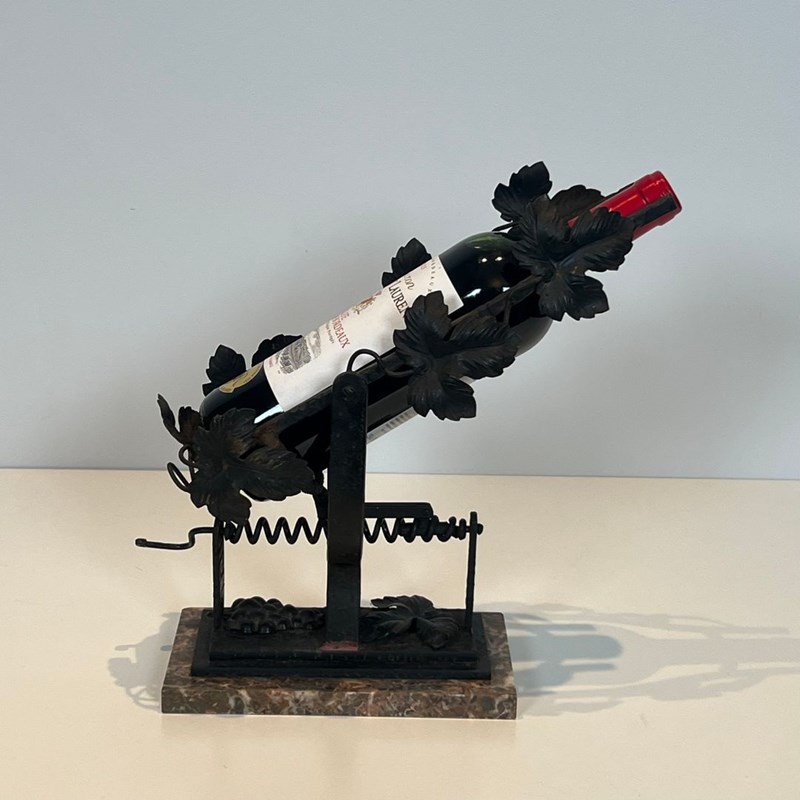 Wrought iron decanter decorated with Vine leaves on a marble base. French work. Circa 1920