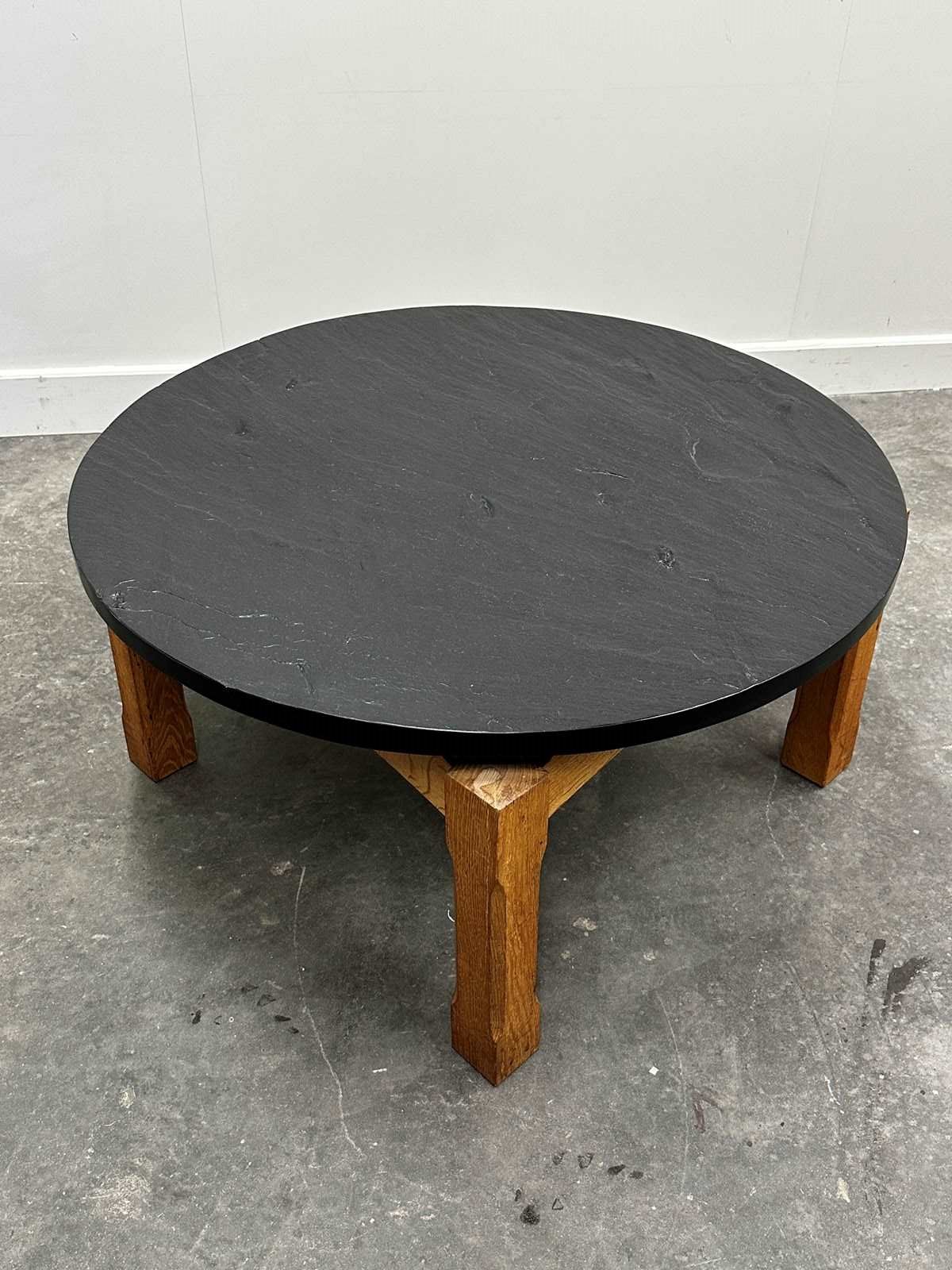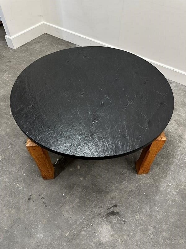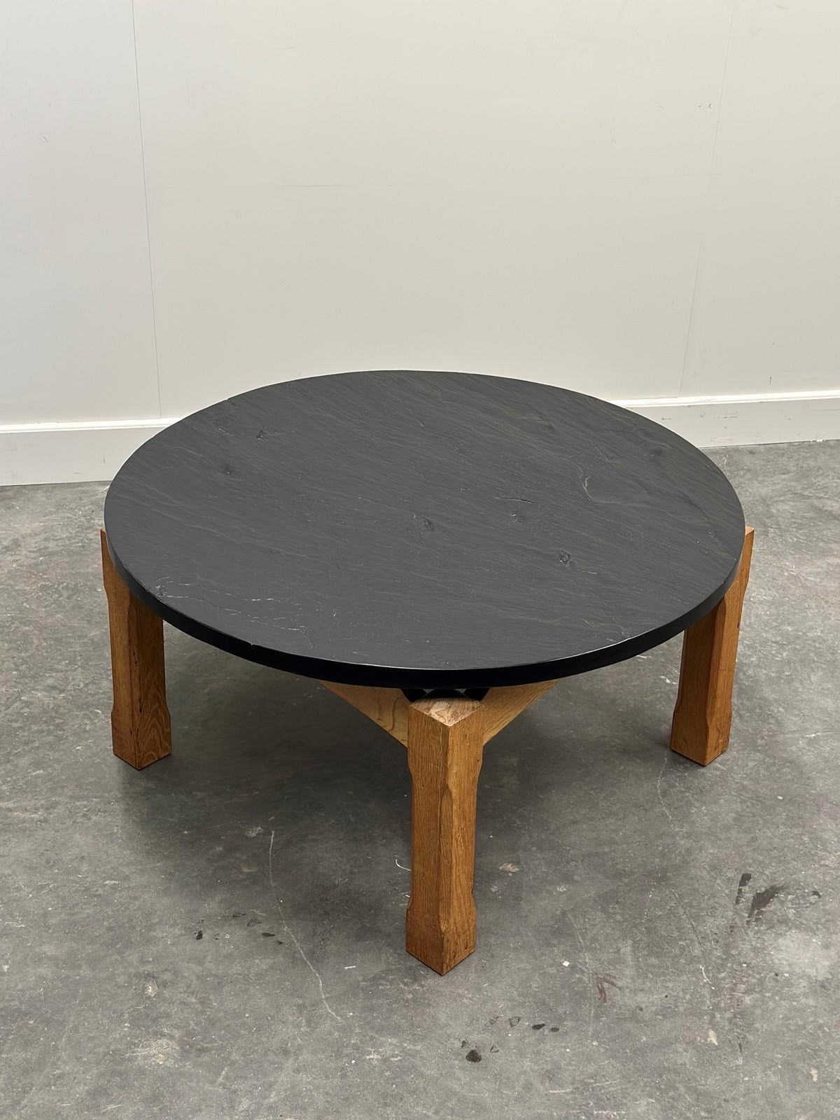 brutalist table, slate coffee table, oak side table, vintage table, 1970s furniture, Belgian design, slate furniture, textured slate, rustic table, stone top table, brutalist decor, wood base table, mid century table