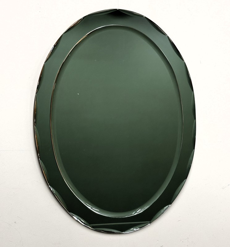 1970S Italian Oval Mirror By Crystal Arte With Faceted Glass Frame