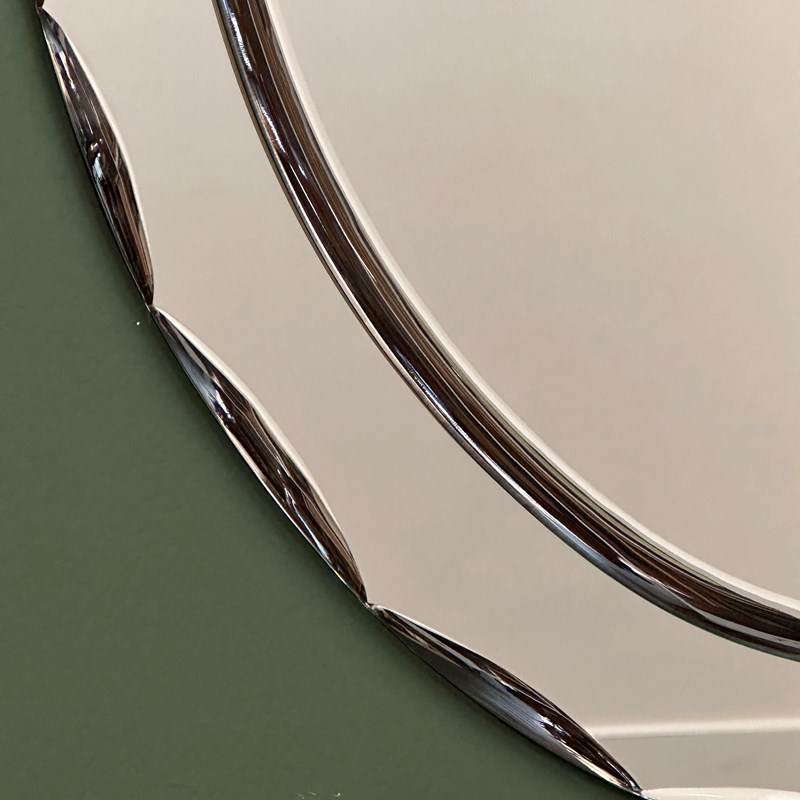 Condition: Very good vintage condition, with light age-related wear consistent with its age; the mirror glass and faceted frame remain crisp and highly reflective.