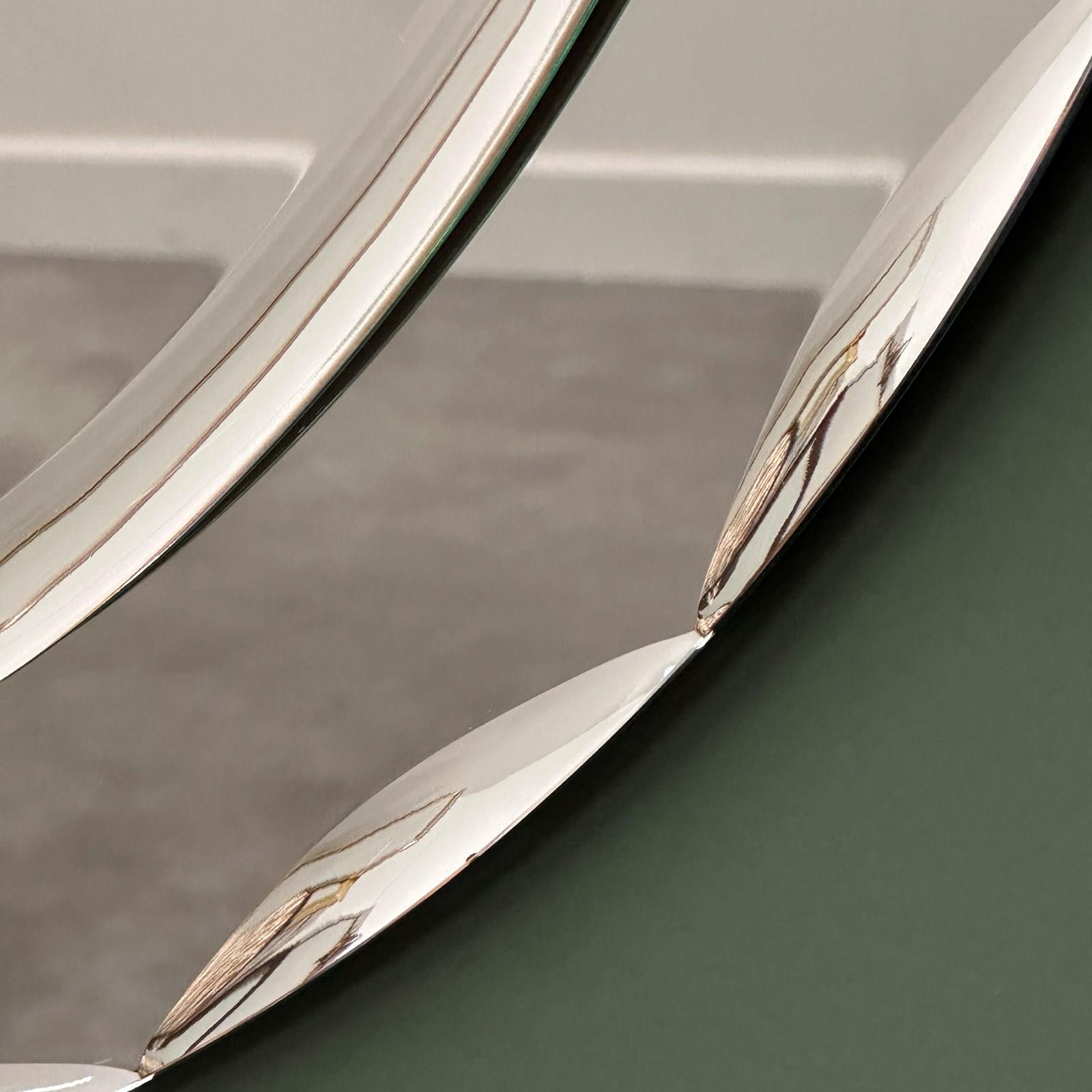 Elegant and sculptural Italian mirror produced in the 1970s by Crystal Arte, featuring a beautifully faceted oval glass frame that subtly catches and reflects the light from every angle. The refined bevelled edges and precise glasswork are typical of high-quality Italian craftsmanship from this period, combining timeless elegance with a discreet mid-century glamour. The oval shape softens interiors while the crystalline finish adds depth and luminosity without overpowering the space.