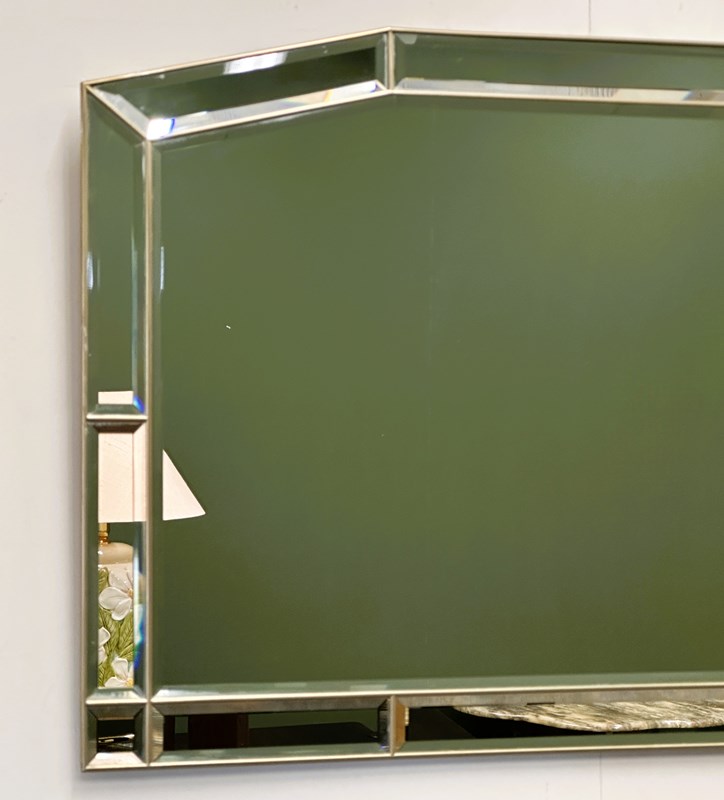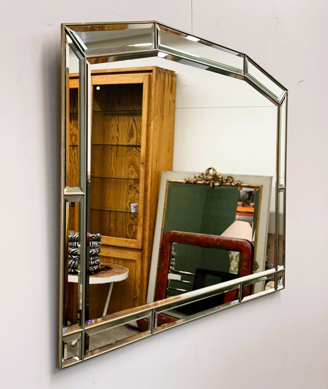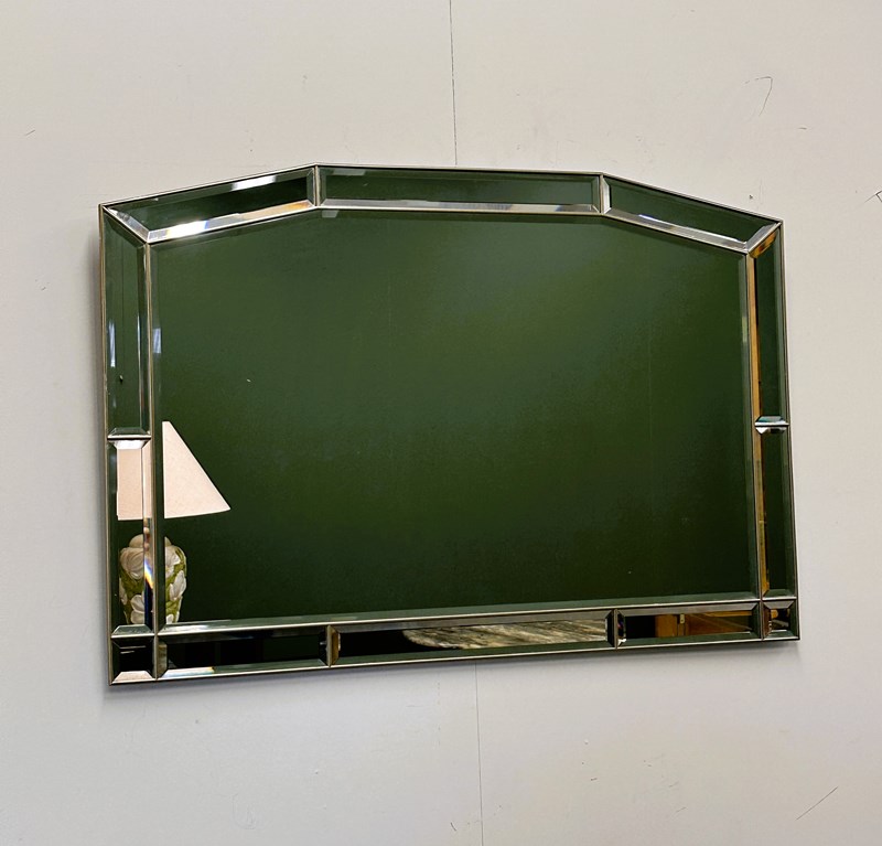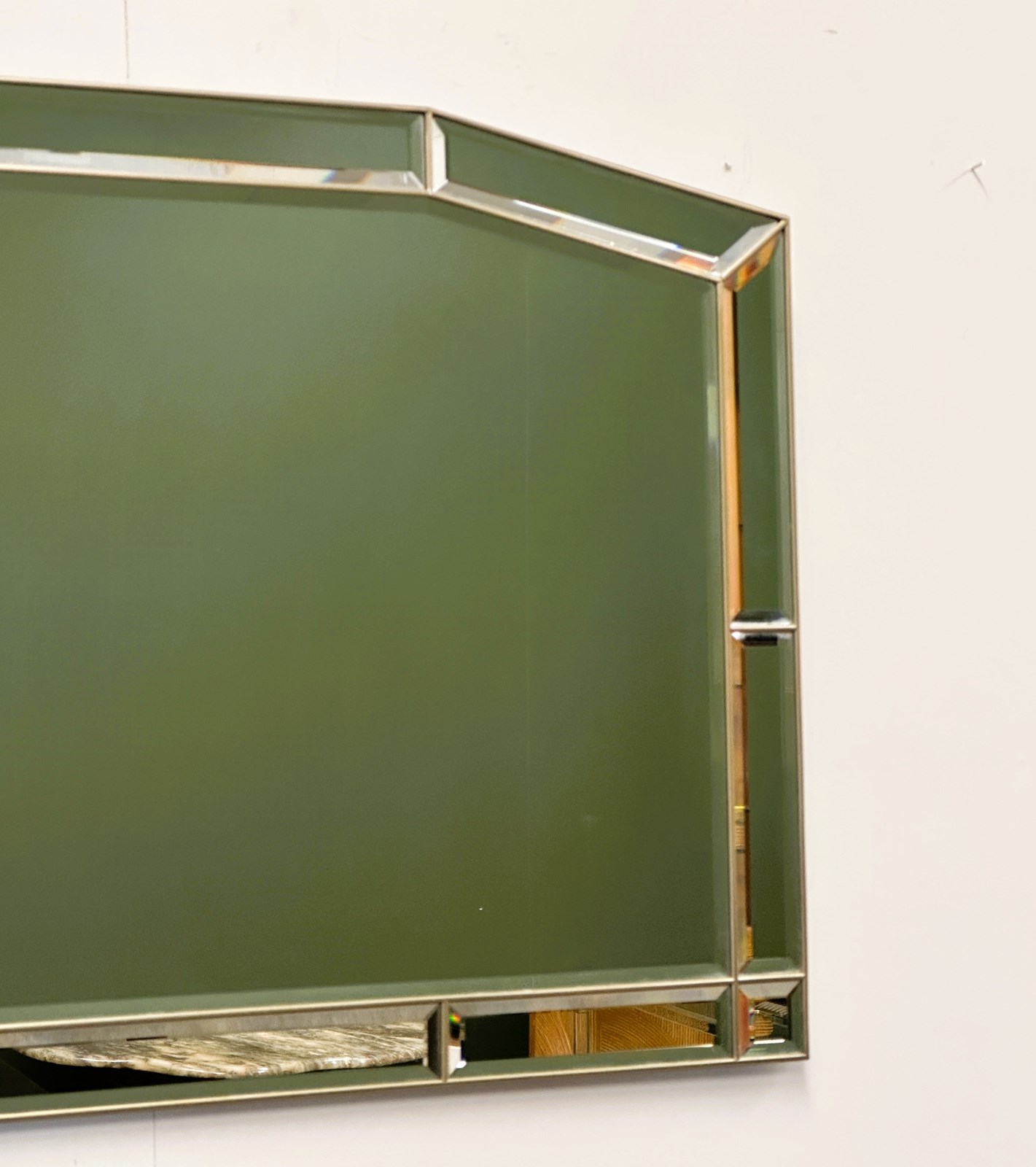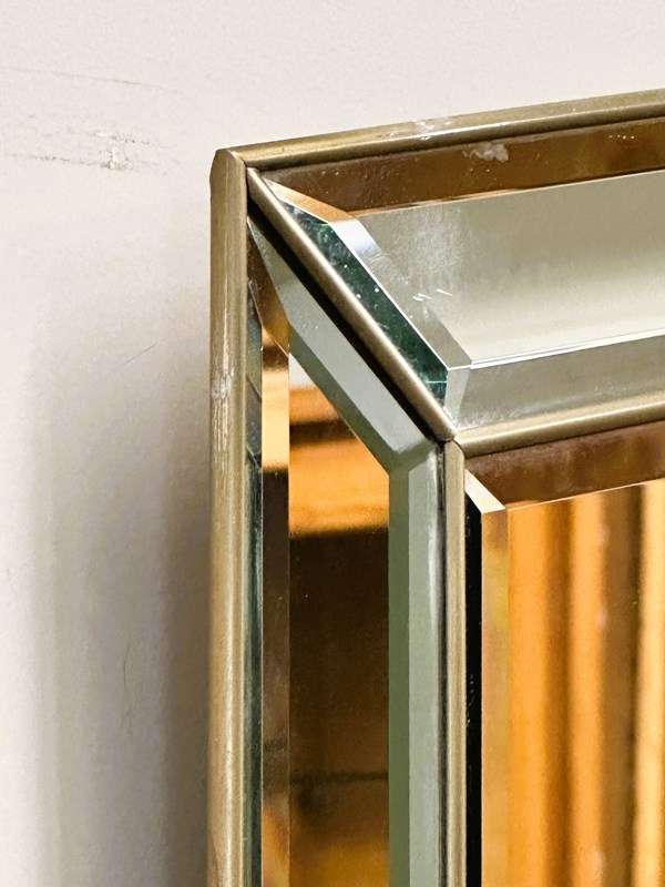 Step into sleek sophistication with this striking vintage wall mirror, dating from the 1980s. Featuring an eye-catching octagonal silhouette, the mirror is edged in polished Brass and mirrored panels, creating a dazzling geometric frame that plays with light and reflections.