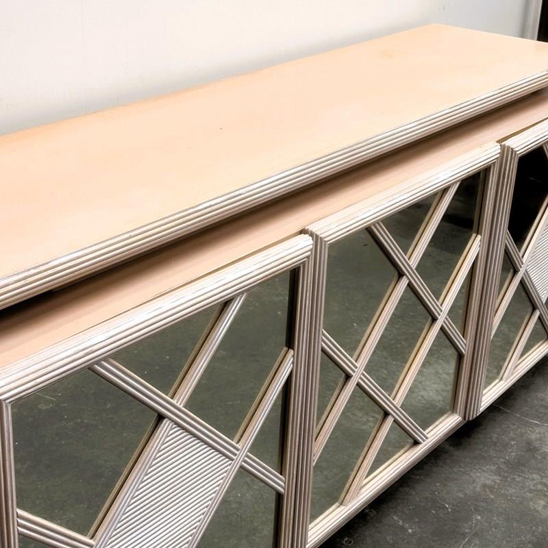 1980S Roche Bobois Soft Pink Mirrored Geometric Sideboard