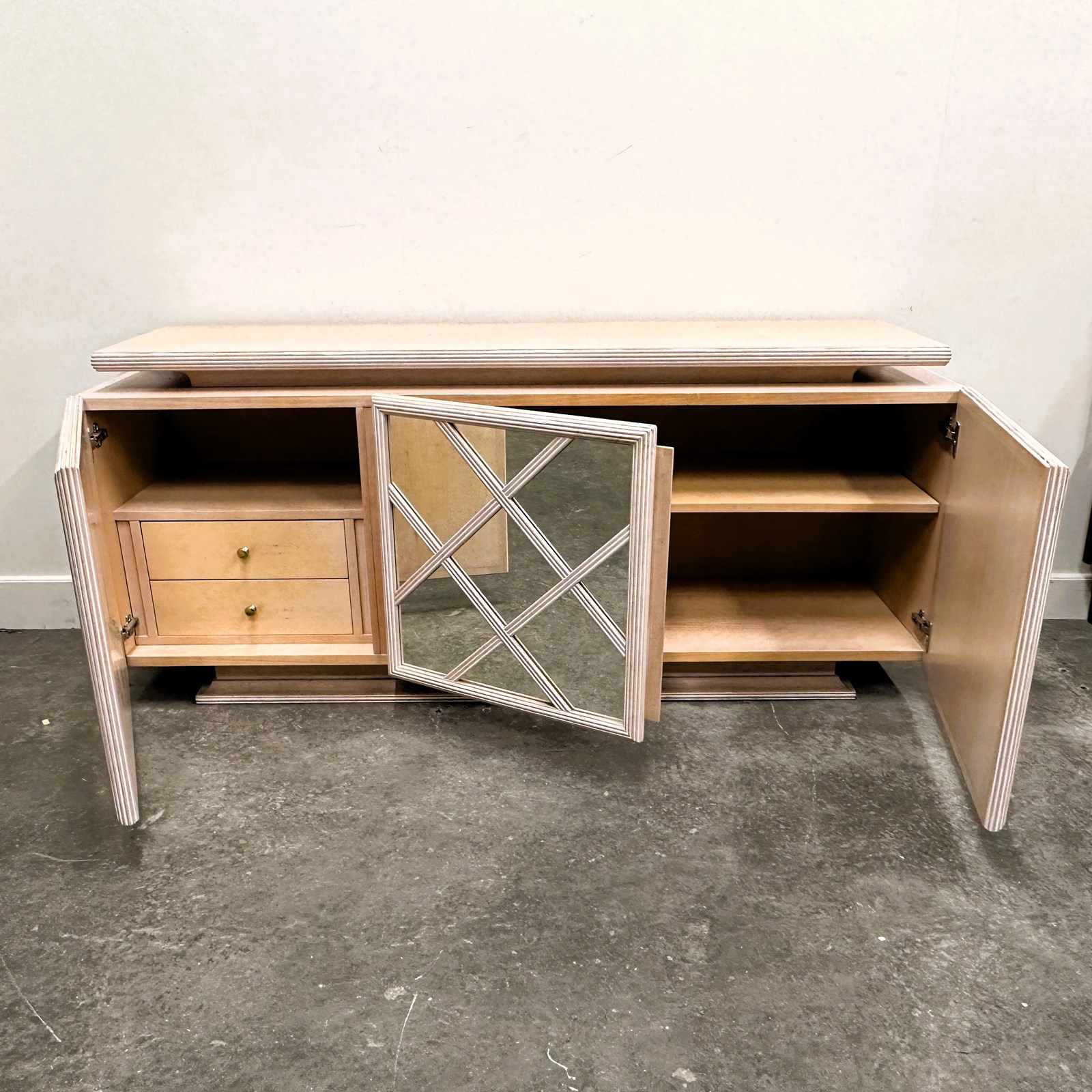 Inside, the sideboard includes adjustable shelving and a drawer section—ideal for dinnerware, glassware or bar storage. A rare and collectible French designer piece that blends femininity, glamour and clean modernist lines.