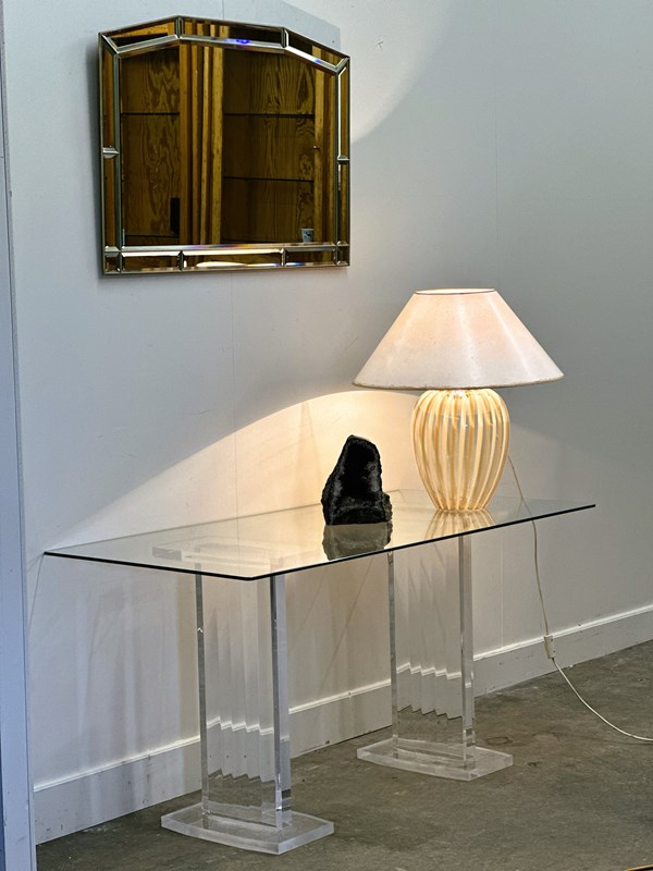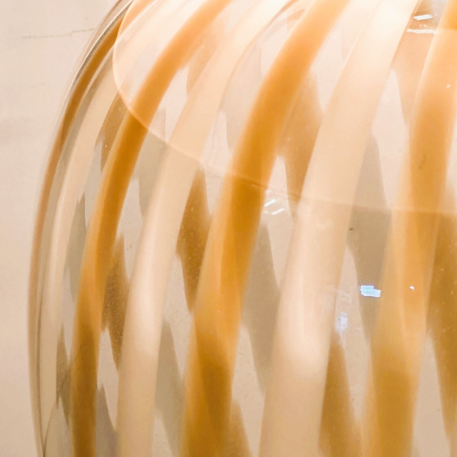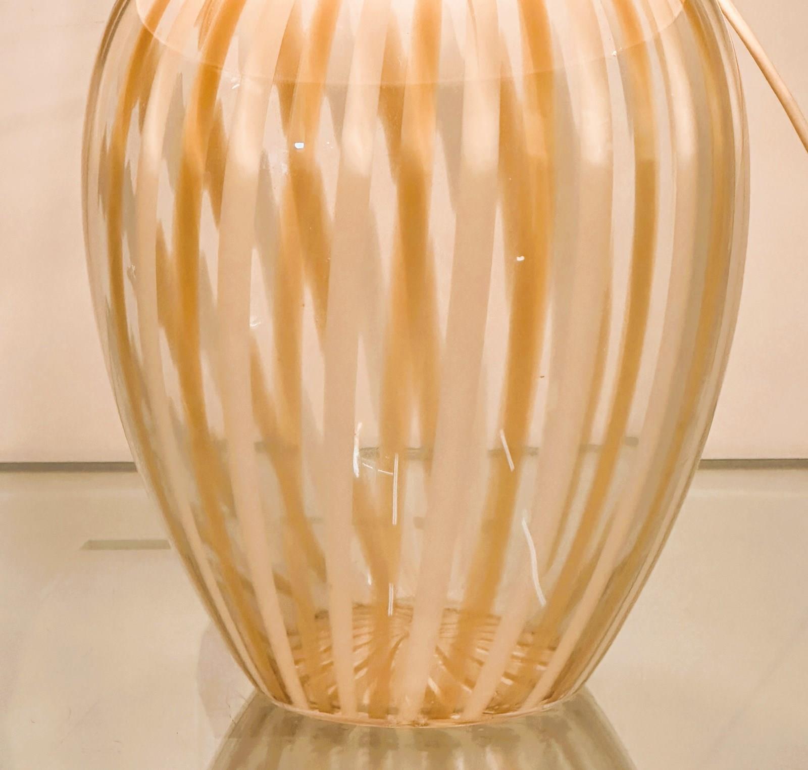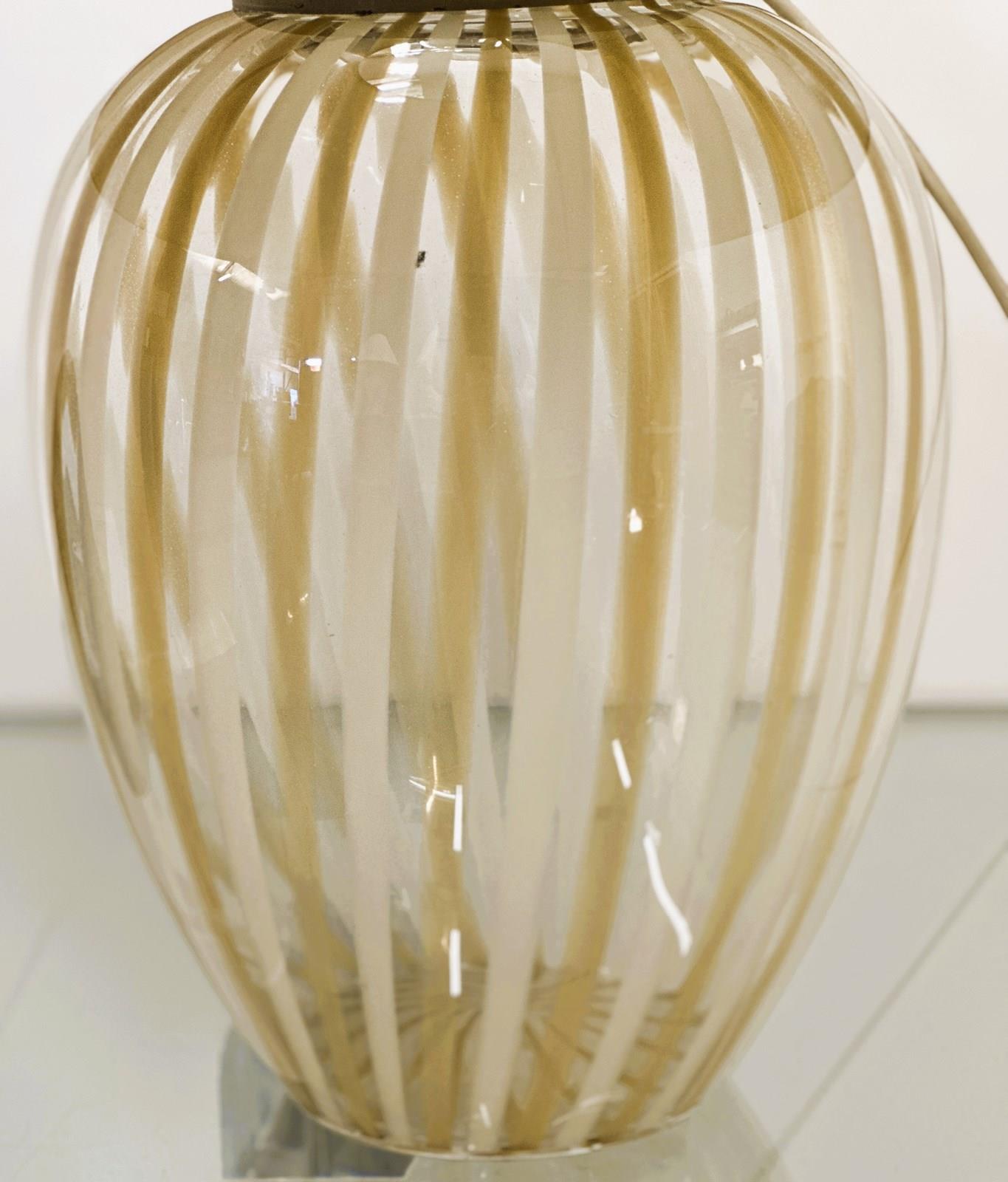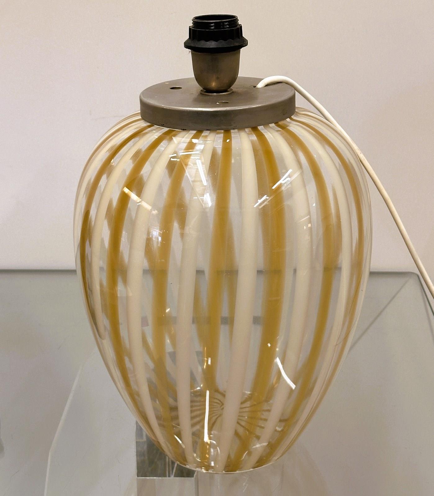 Elegant Vintage Murano Table Lamp With Swirled Gold & White Stripes, Italy 1980S