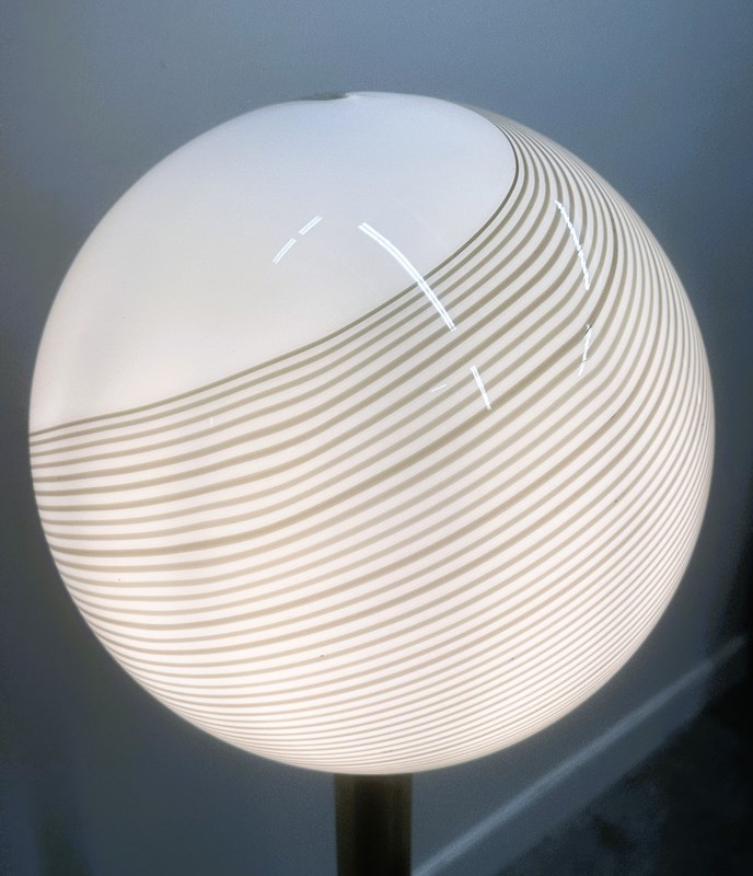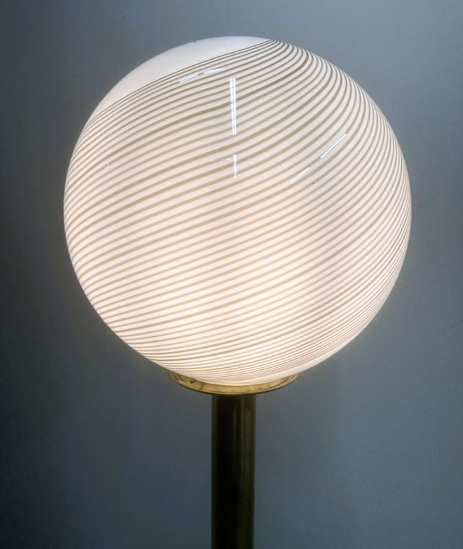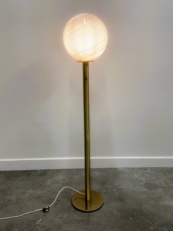 Large 1970S Italian Brass Floor Lamp With Swirled Murano Glass Globe