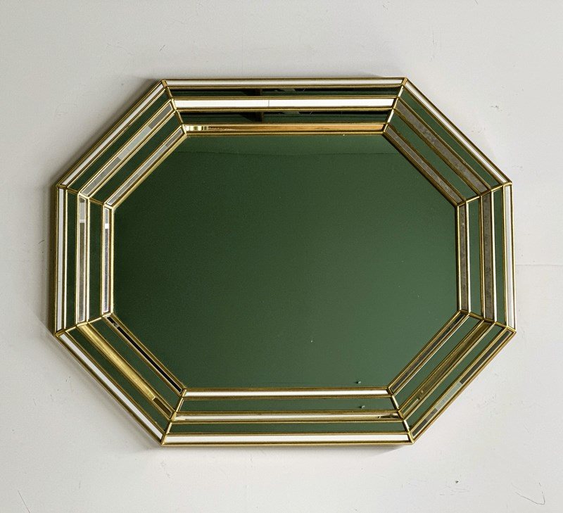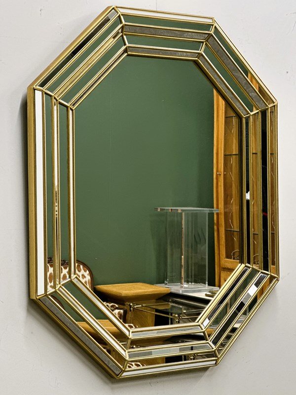 Large Octagonal Deknudt Wall Mirror In Layered Mirrored Glass And Gold Accents