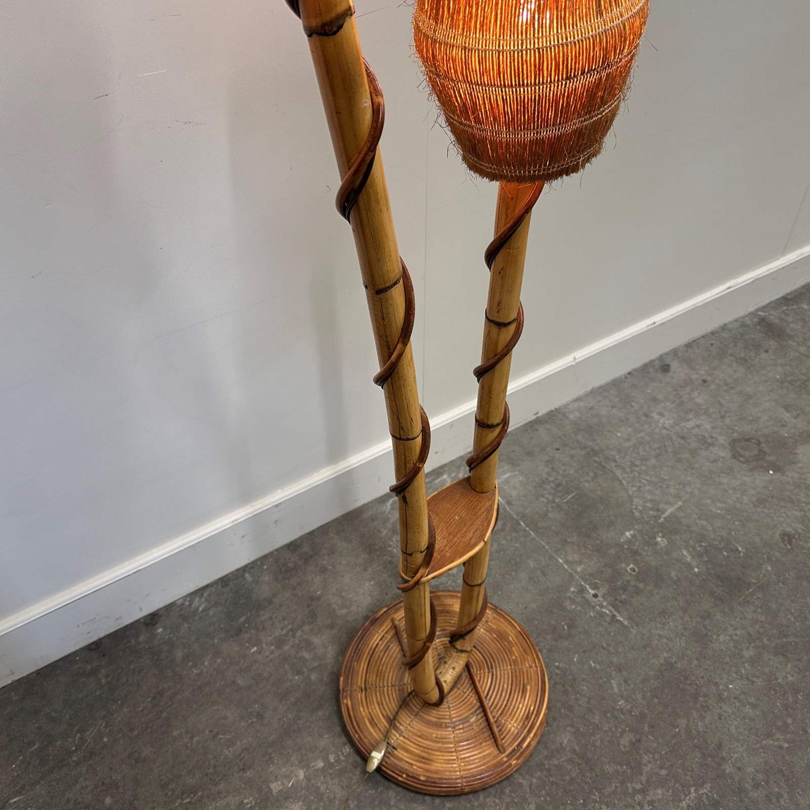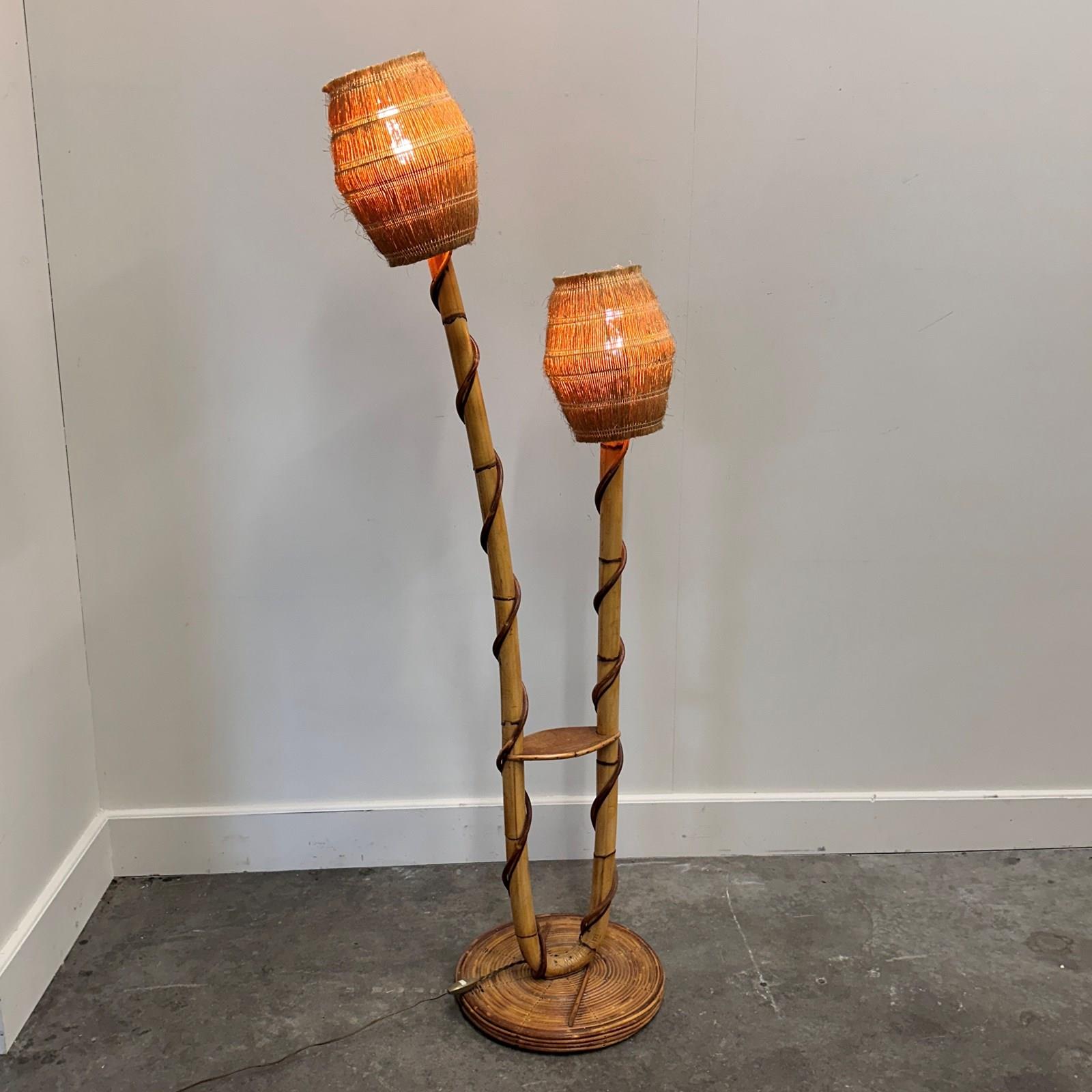 Louis Sognot Rattan And Wicker Floor Lamp, France, 1960S