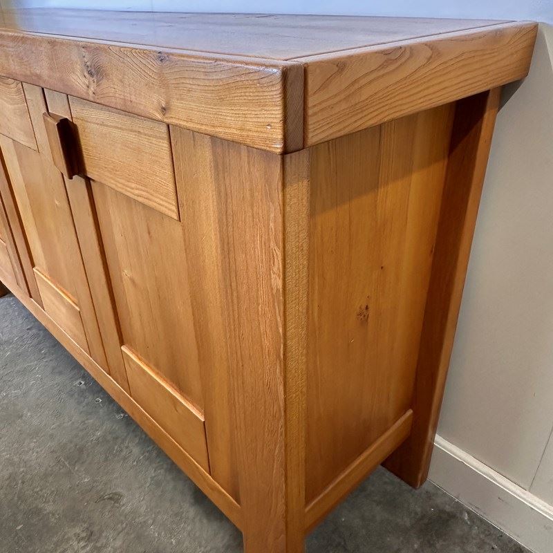 vintage elm sideboard, maison regain furniture, french brutalist sideboard, midcentury elm cabinet, solid wood credenza, elm wood sideboard, rustic french cabinet, 1970s french design, modernist elm sideboard, vintage french buffet, brutalist elm furniture, designer elm cabinet, retro french sideboard