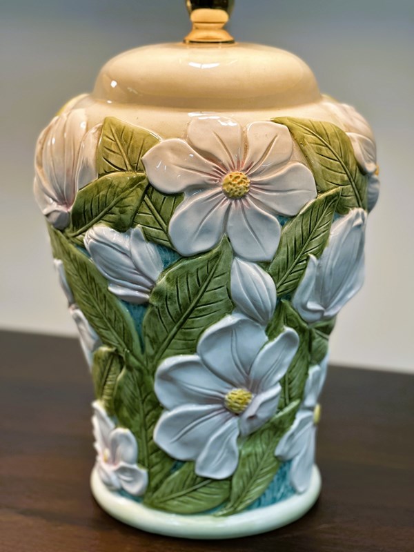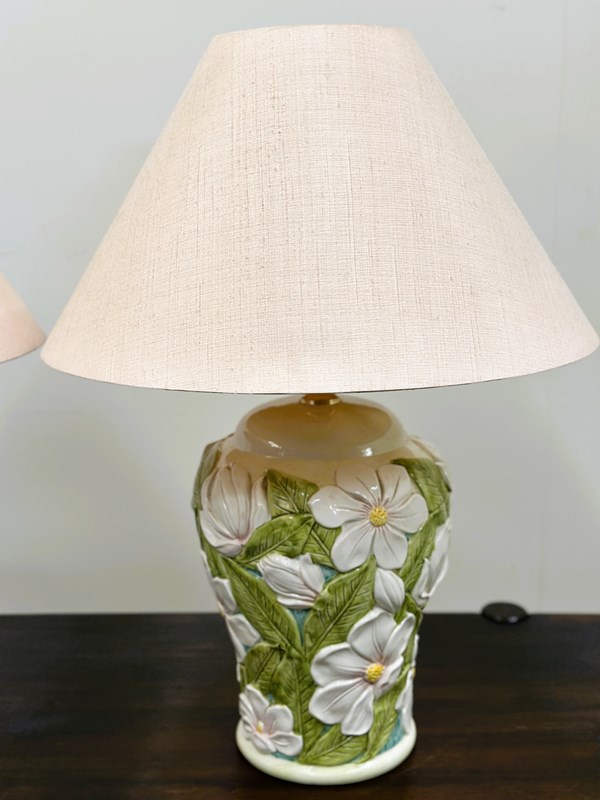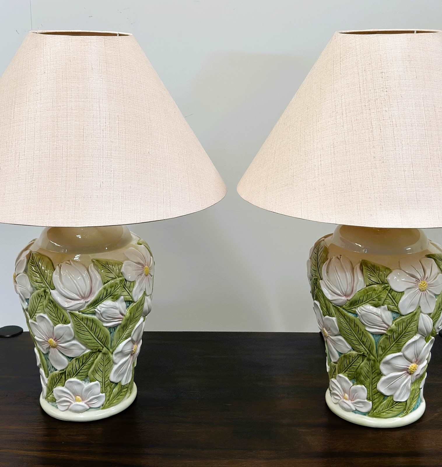 Pair Of Large Vintage Ceramic Table Lamps With 3D Floral Design, 1970S