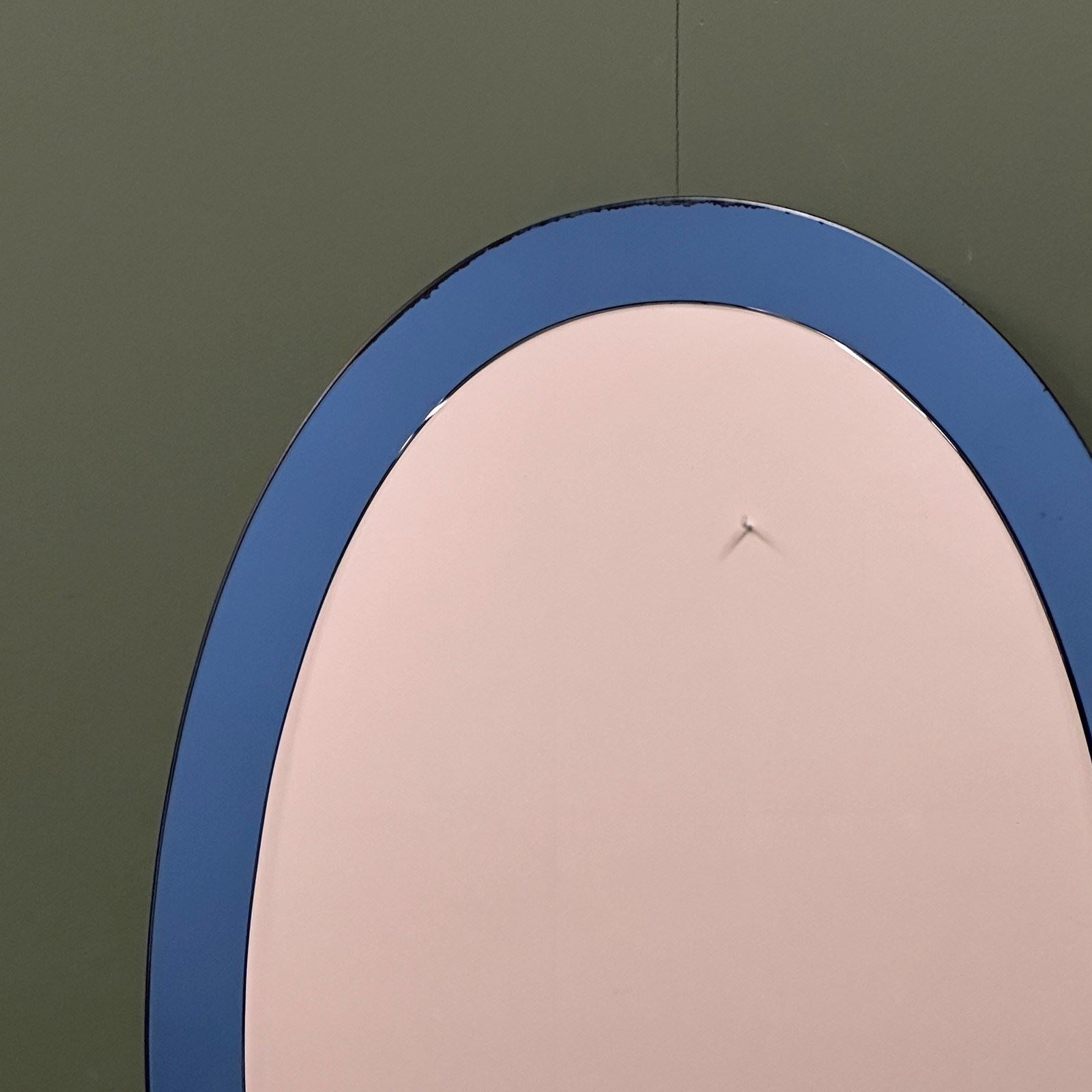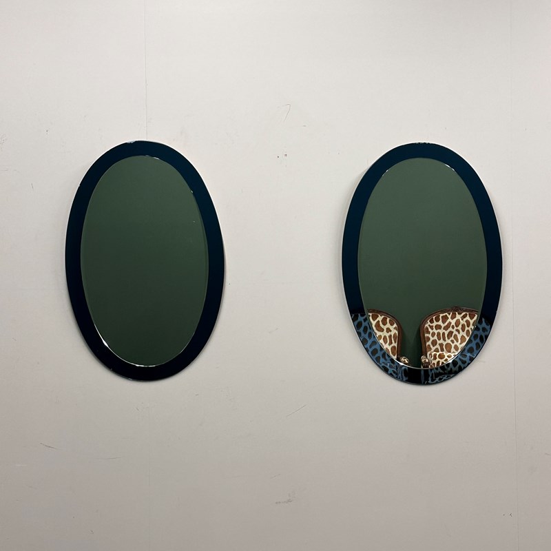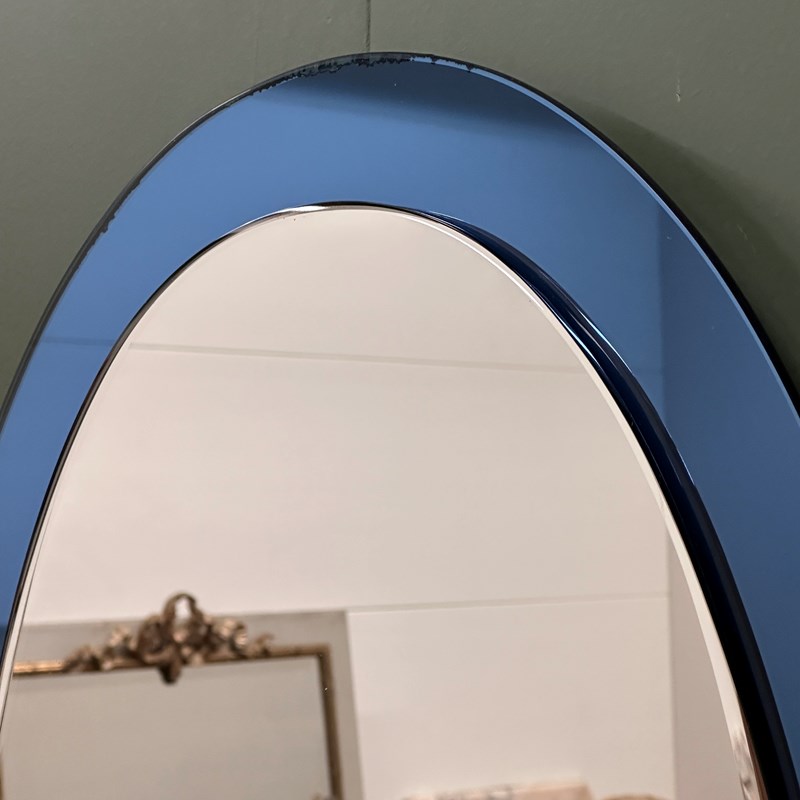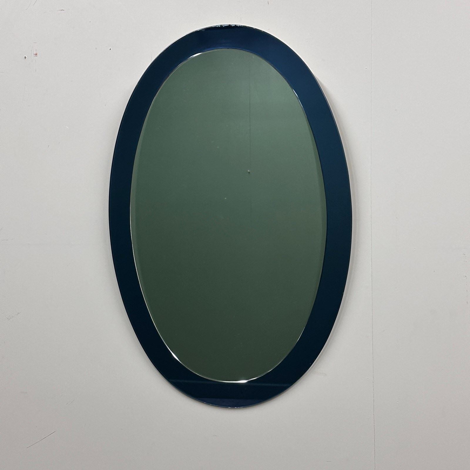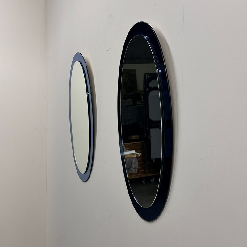 blue mirror, cristal arte, italian mirror, oval mirror, midcentury italy, cobalt mirror, vintage glass, 60s mirror, wall mirror pair, blue decor, designer mirror, glam interior, fontana arte style